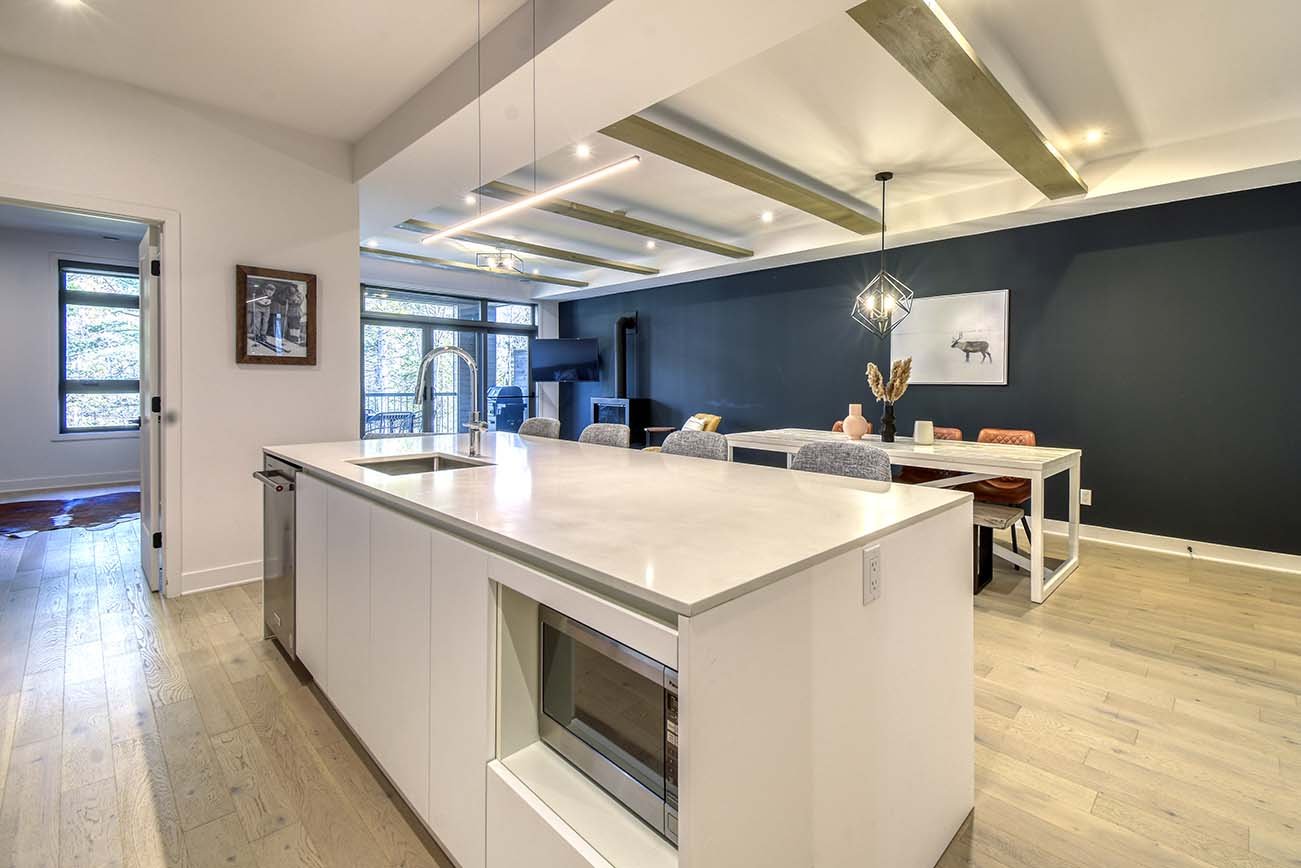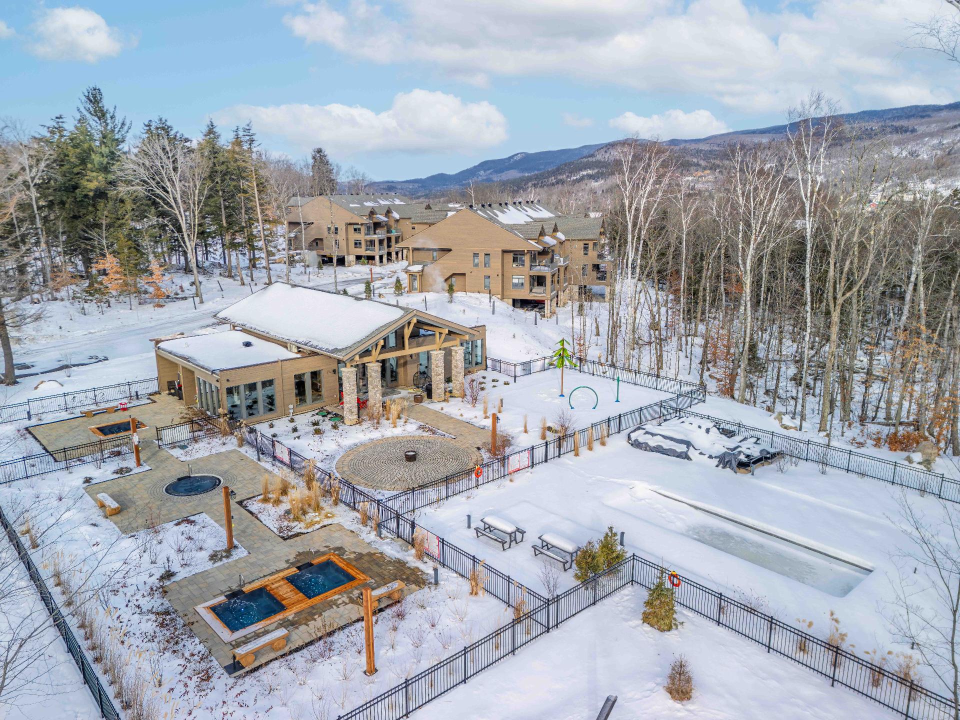 Become the owner of a condo in the prestigious Verbier Tremblant project, offering an excellent investment opportunity with short-term rentals permitted. Located in the second building, this 2-bedroom, 2-bathroom condo features European-inspired design. Open-concept living area with a gas fireplace, quartz countertops, and heated floors. Balcony with mountain views. Includes two indoor parking spaces as well as ski and bike storage. Enjoy access to the spa pavilion, pool, trails, shuttle service, playground, and Club des Montagnards, just minutes from the pedestrian village and ski slopes.