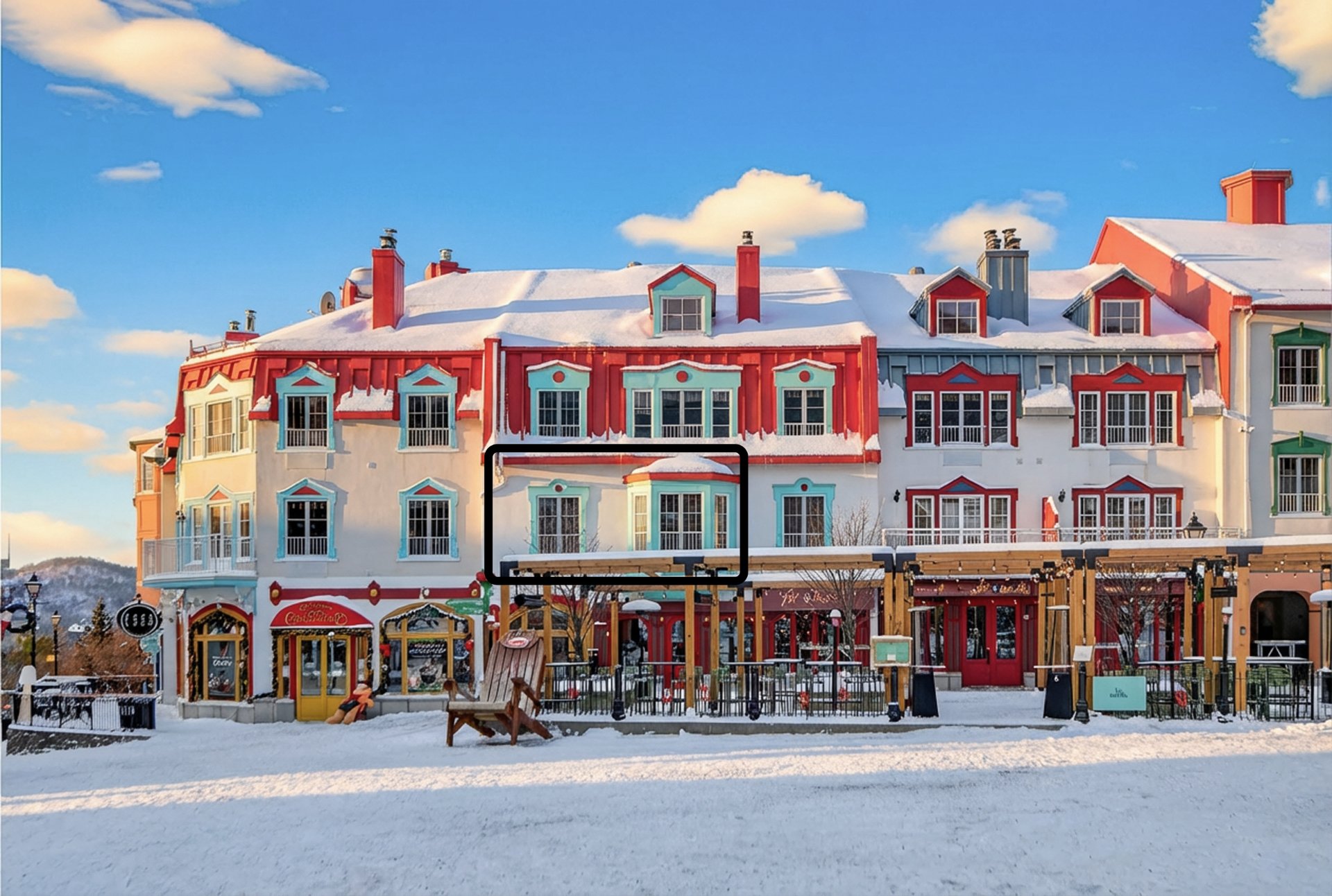 Homewood Suites by Hilton -- Charming one-bedroom condo with a closed bedroom featuring two double beds and a sofa bed, comfortably accommodating up to 6 guests. Enjoy a beautiful view of St-Bernard Square and the ski slopes, right in the heart of Tremblant's action. A turnkey pied-à-terre! Complimentary breakfast, outdoor pool, outdoor spa and indoor sauna, underground parking, and ski lockers. The condo is part of a hotel-managed rental program, offering the owner 36 days of personal use per year with shared rental revenues. Rentals by the owner is not permitted.