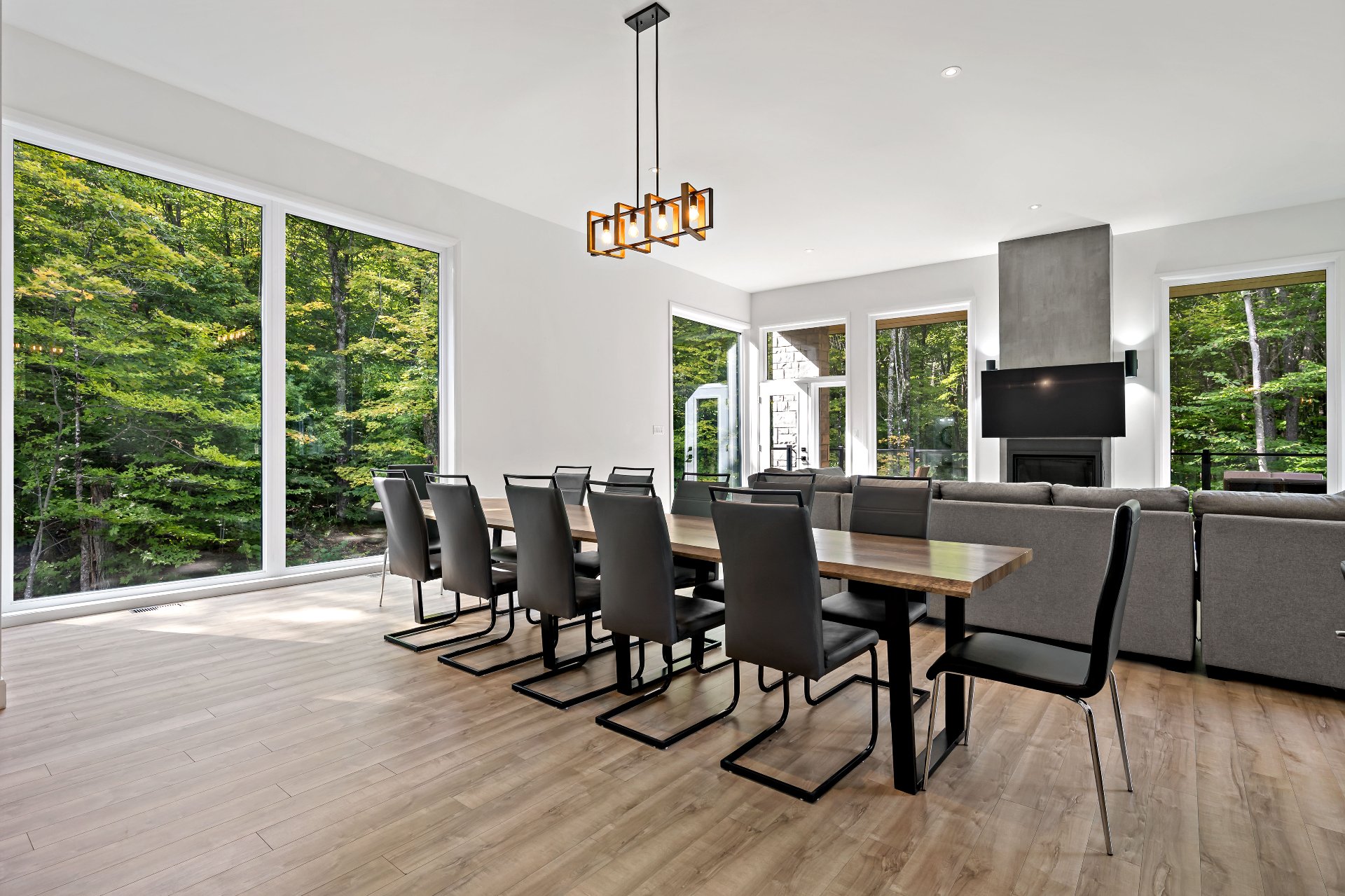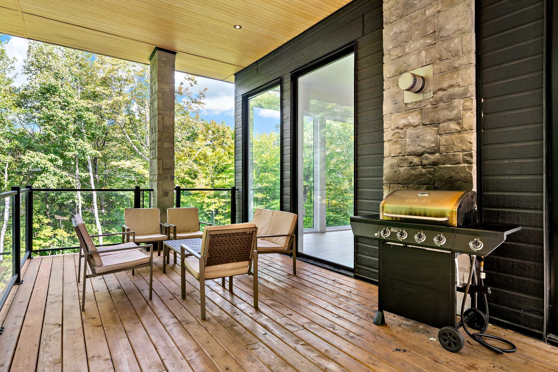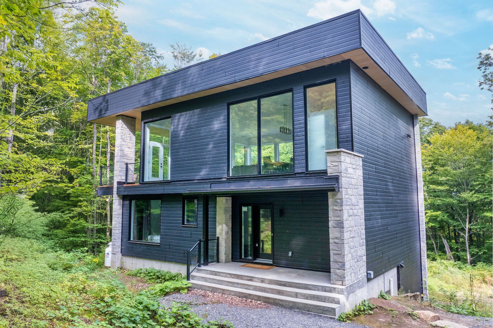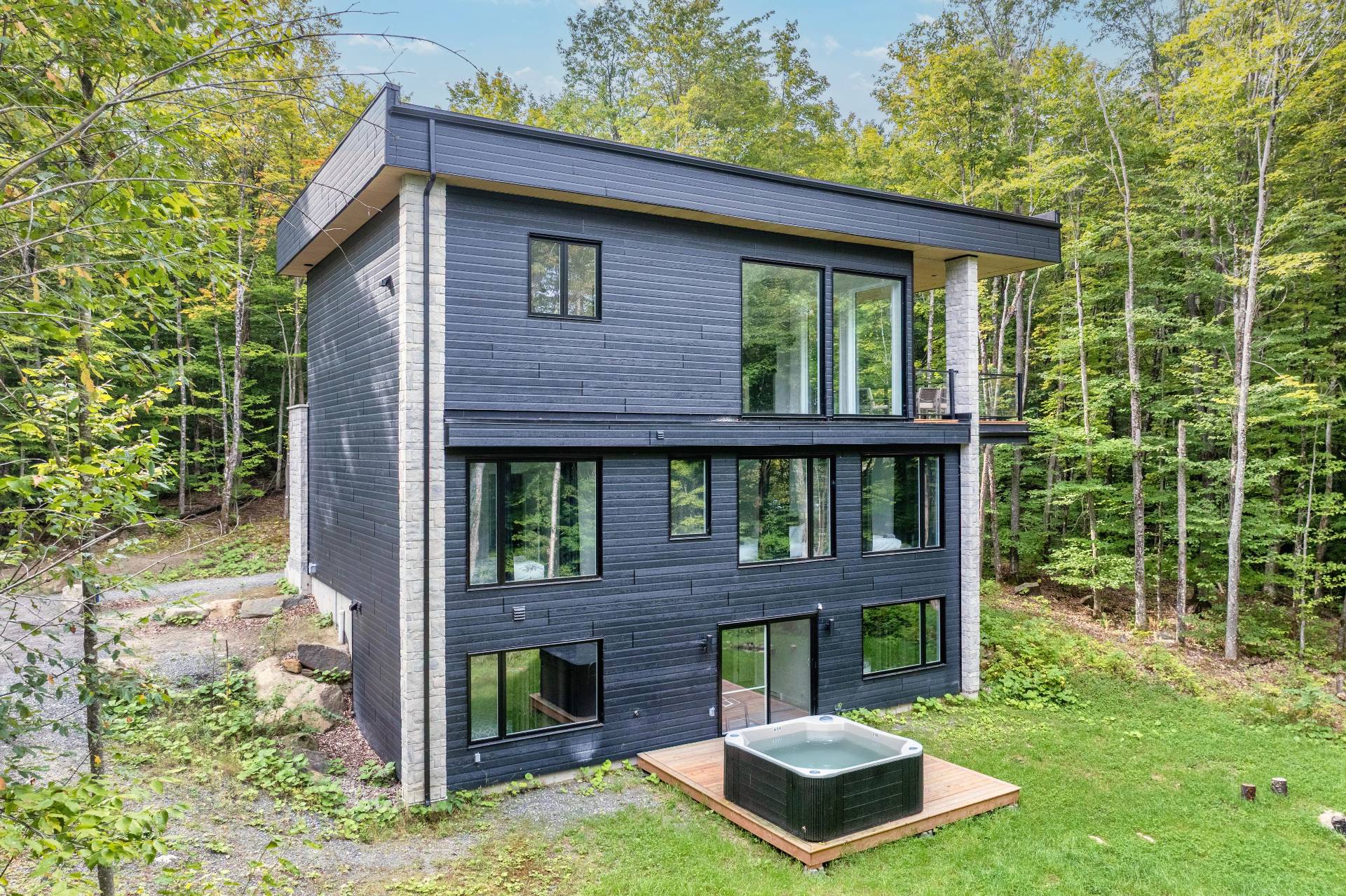 Short-term rentals allowed! This stunning 2023 contemporary home was thoughtfully designed to comfortably accommodate family and guests with its 7 spacious bedrooms. An impressive open-concept layout seamlessly connects the living room, kitchen, and dining area, perfect for entertaining. Floor-to-ceiling windows flood the space with natural light while showcasing the surrounding lush environment. Unwind in the inviting spa after a day of outdoor adventures. A true turnkey opportunity, sold fully furnished and located less than 20 minutes from the slopes of Mont-Tremblant.