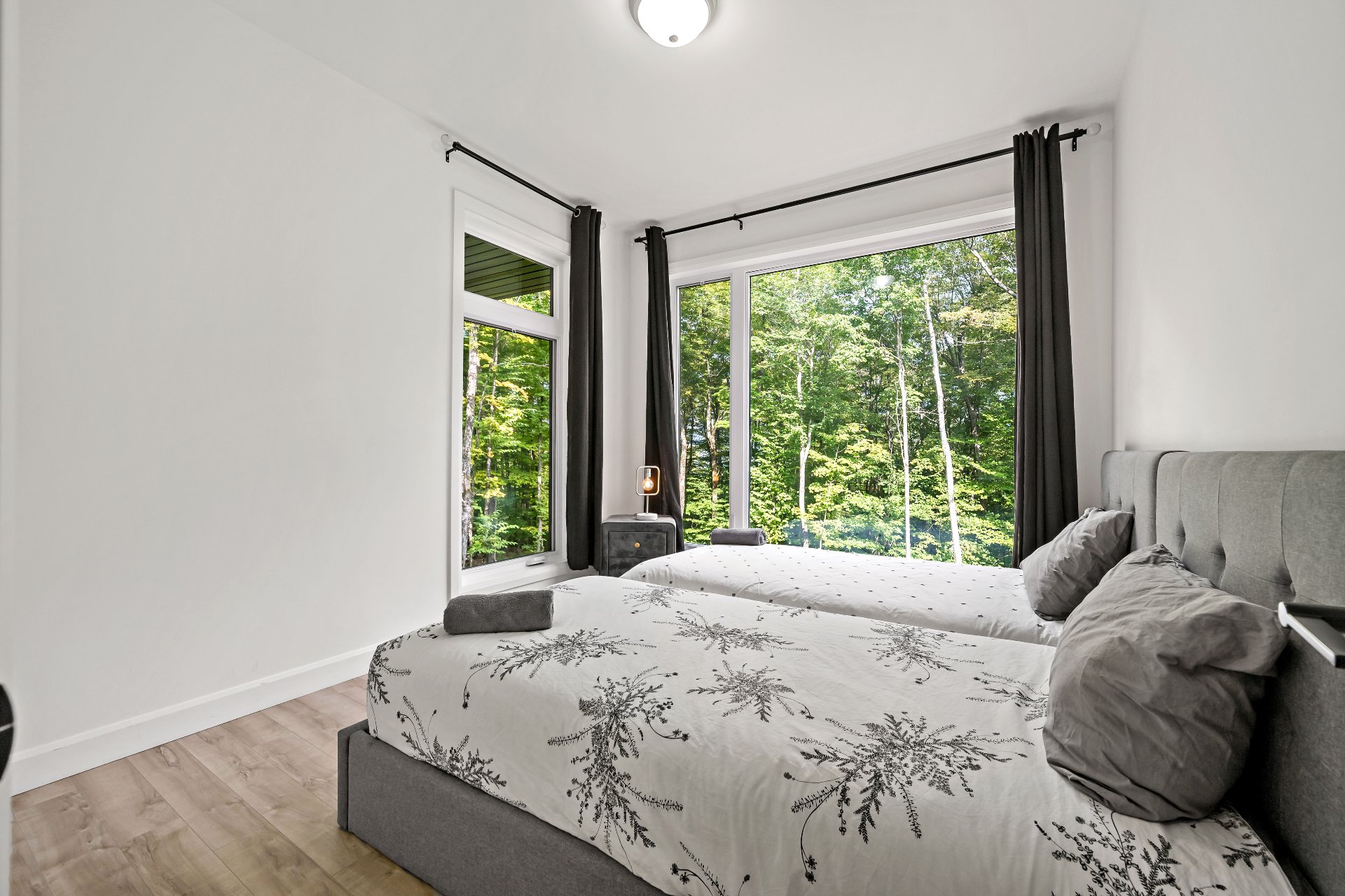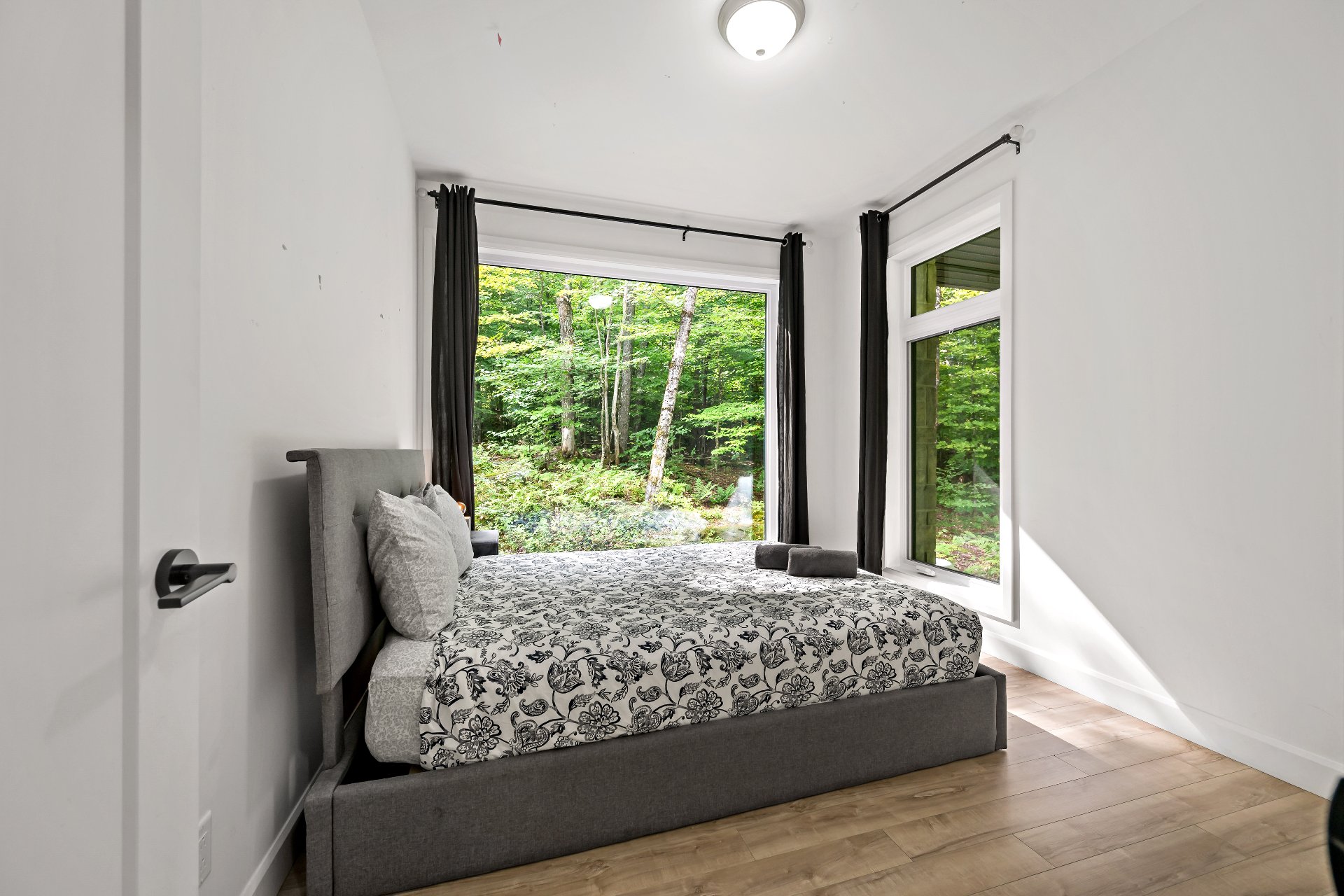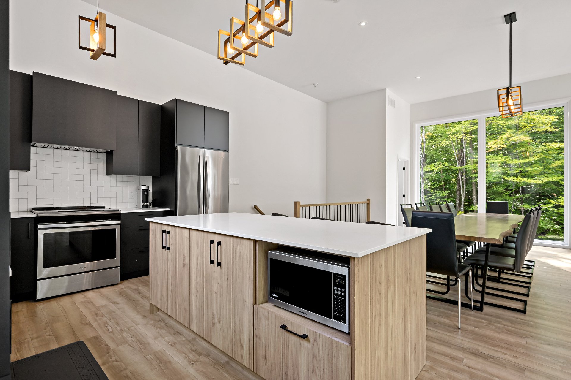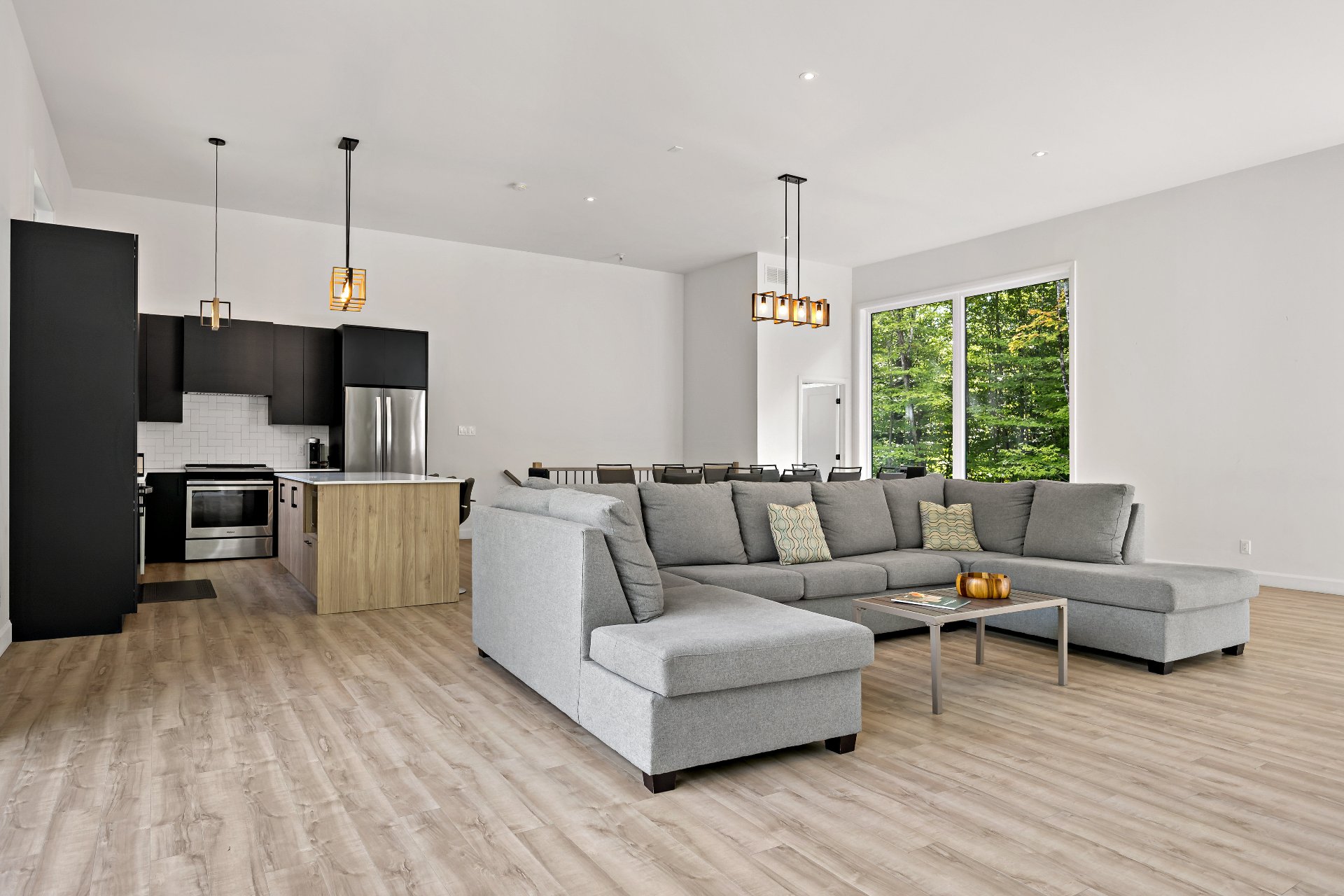 Short-term rentals allowed! This stunning 2023 contemporary home was thoughtfully designed to comfortably accommodate family and guests with its 7 spacious bedrooms. An impressive open-concept layout seamlessly connects the living room, kitchen, and dining area, perfect for entertaining. Floor-to-ceiling windows flood the space with natural light while showcasing the surrounding lush environment. Unwind in the inviting spa after a day of outdoor adventures. A true turnkey opportunity, sold fully furnished and located less than 20 minutes from the slopes of Mont-Tremblant.