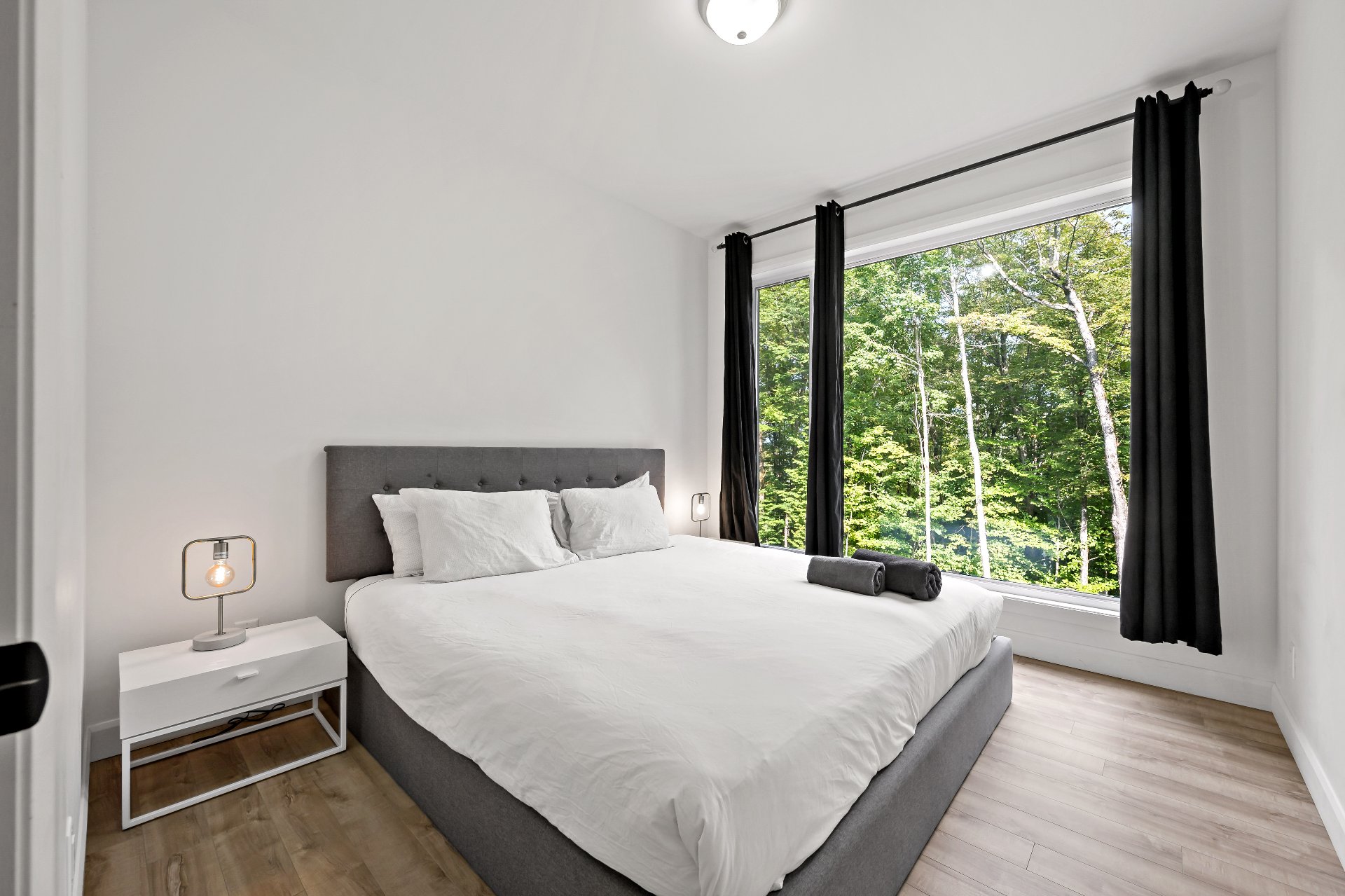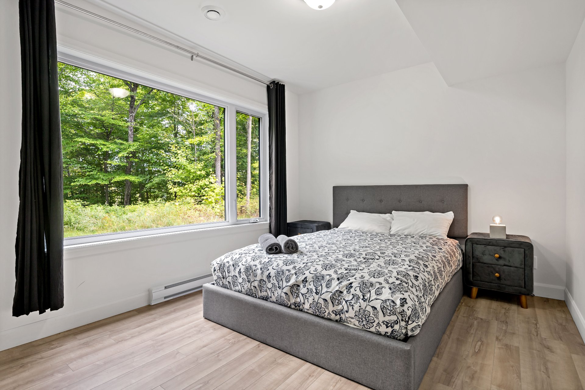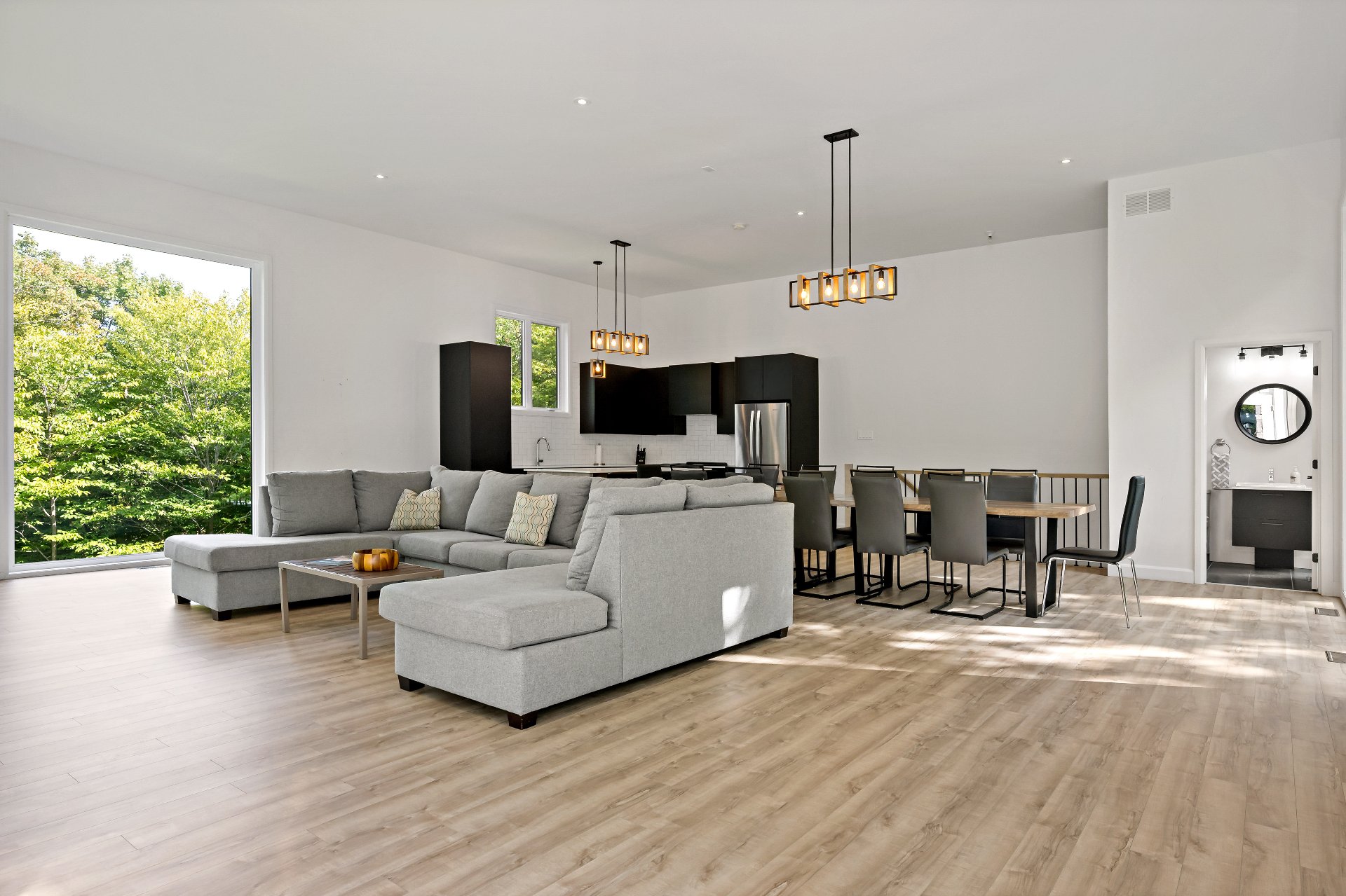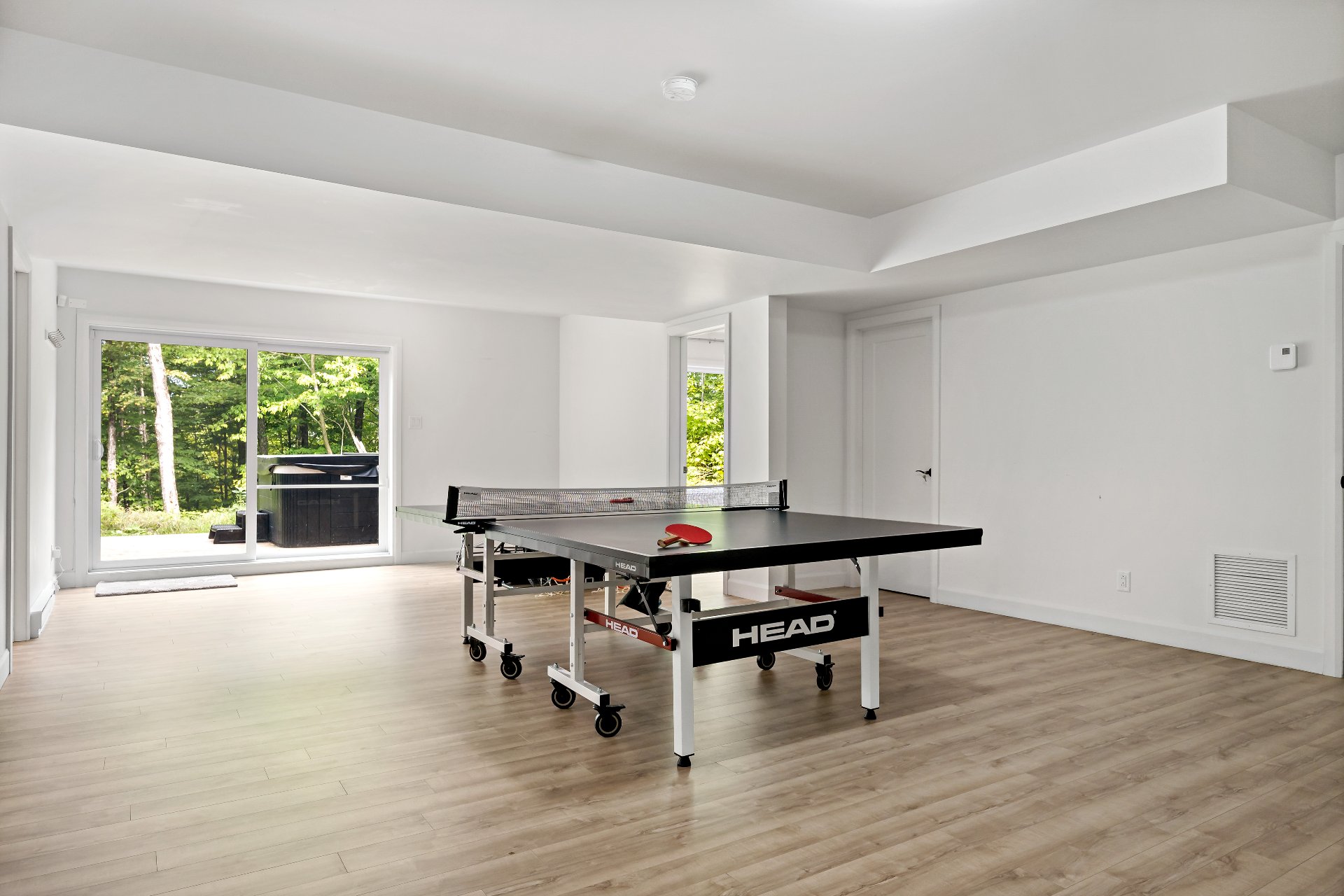 Short-term rentals allowed! This stunning 2023 contemporary home was thoughtfully designed to comfortably accommodate family and guests with its 7 spacious bedrooms. An impressive open-concept layout seamlessly connects the living room, kitchen, and dining area, perfect for entertaining. Floor-to-ceiling windows flood the space with natural light while showcasing the surrounding lush environment. Unwind in the inviting spa after a day of outdoor adventures. A true turnkey opportunity, sold fully furnished and located less than 20 minutes from the slopes of Mont-Tremblant.