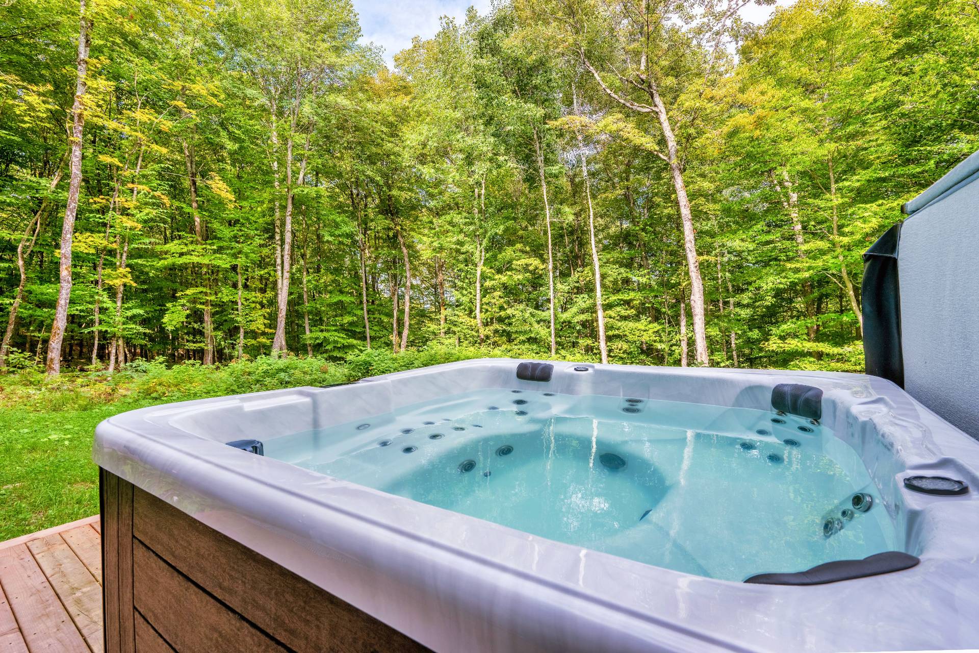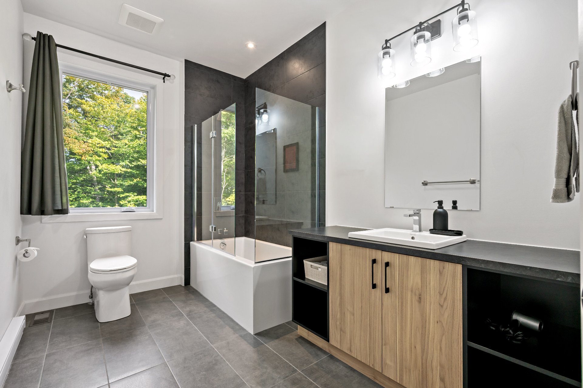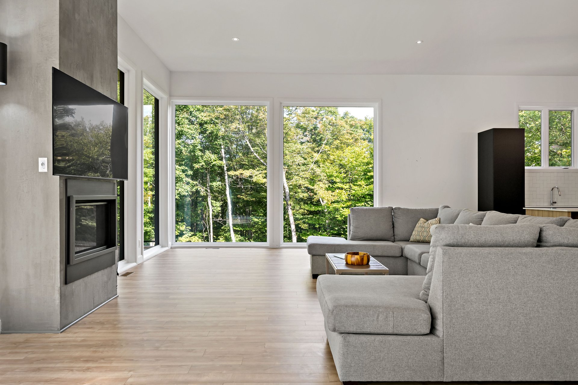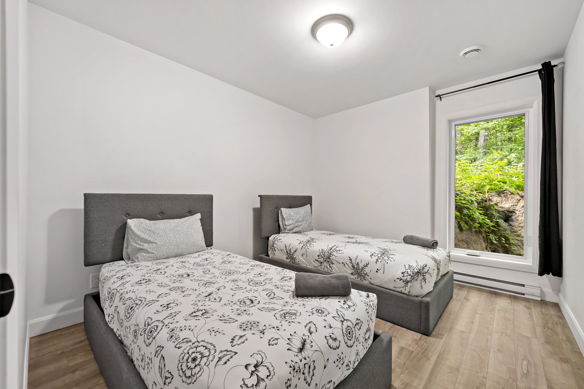 Short-term rentals allowed! This stunning 2023 contemporary home was thoughtfully designed to comfortably accommodate family and guests with its 7 spacious bedrooms. An impressive open-concept layout seamlessly connects the living room, kitchen, and dining area, perfect for entertaining. Floor-to-ceiling windows flood the space with natural light while showcasing the surrounding lush environment. Unwind in the inviting spa after a day of outdoor adventures. A true turnkey opportunity, sold fully furnished and located less than 20 minutes from the slopes of Mont-Tremblant.