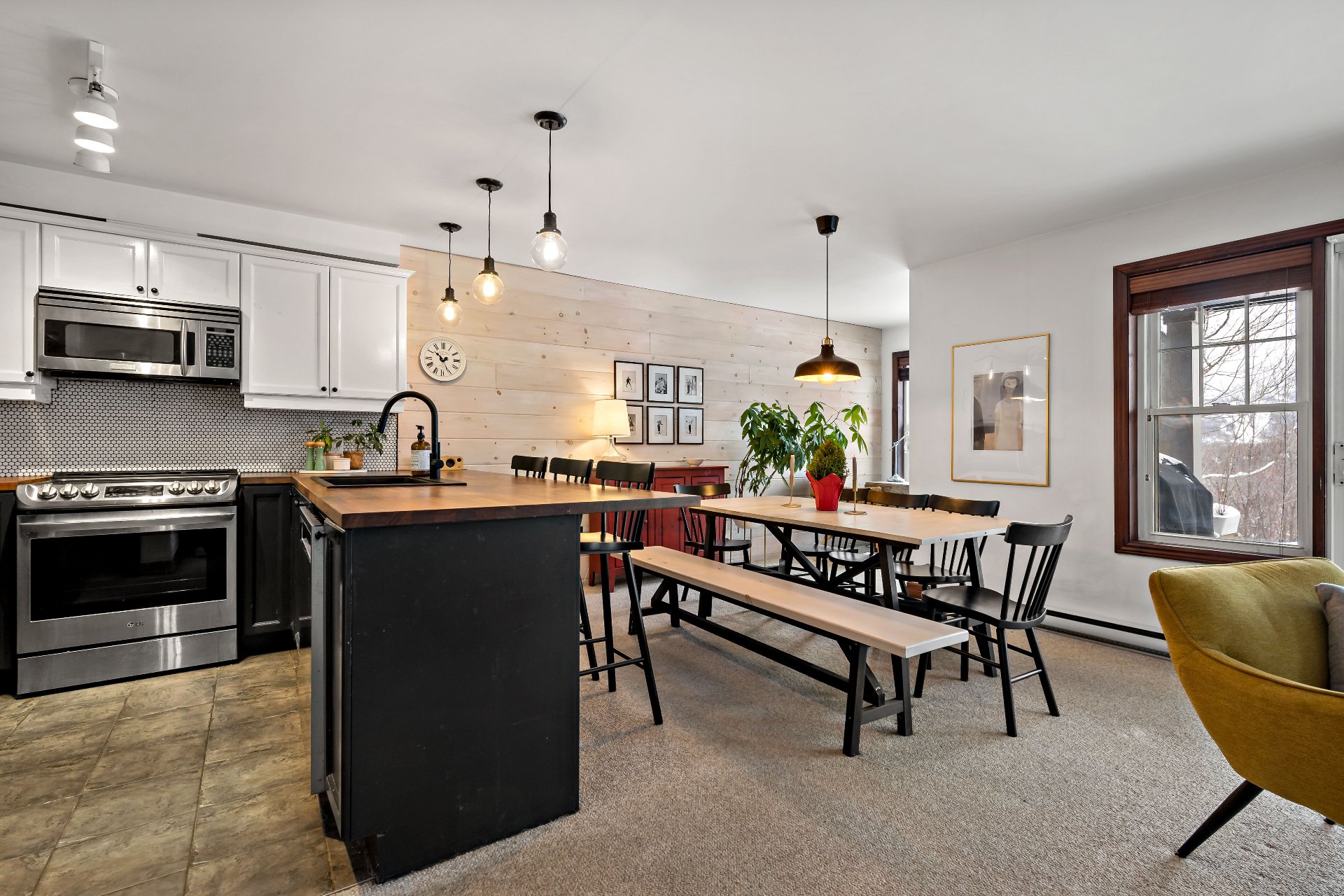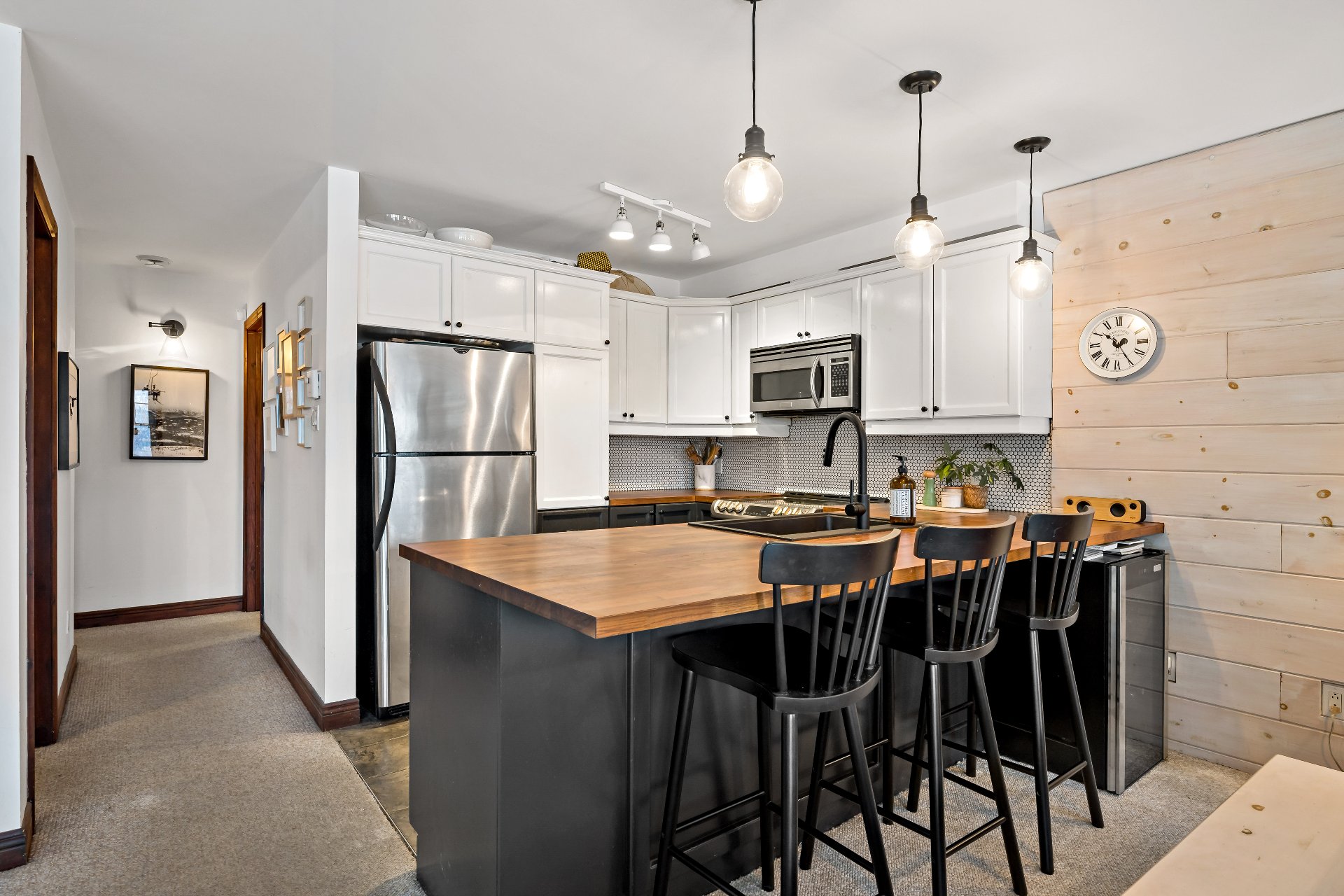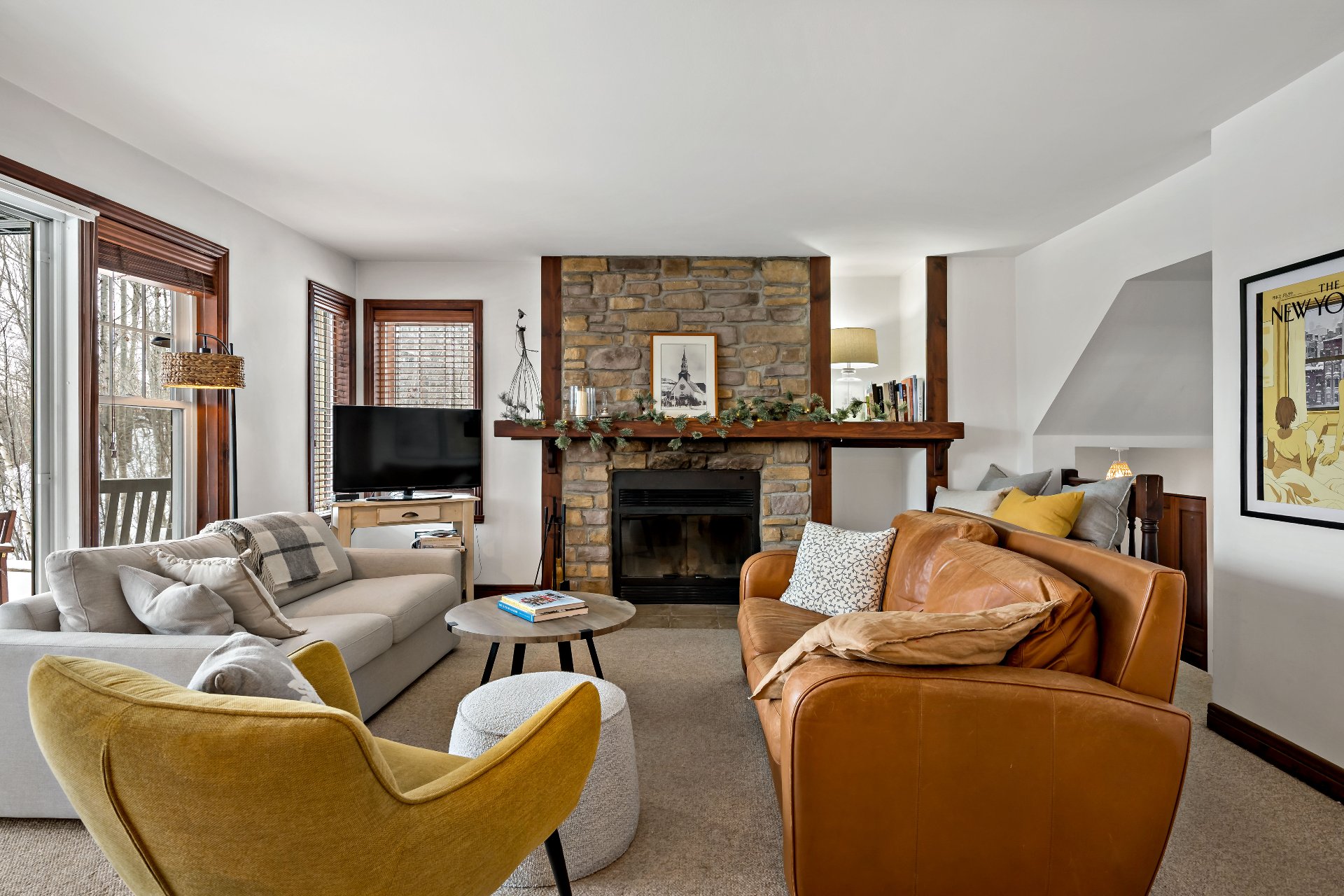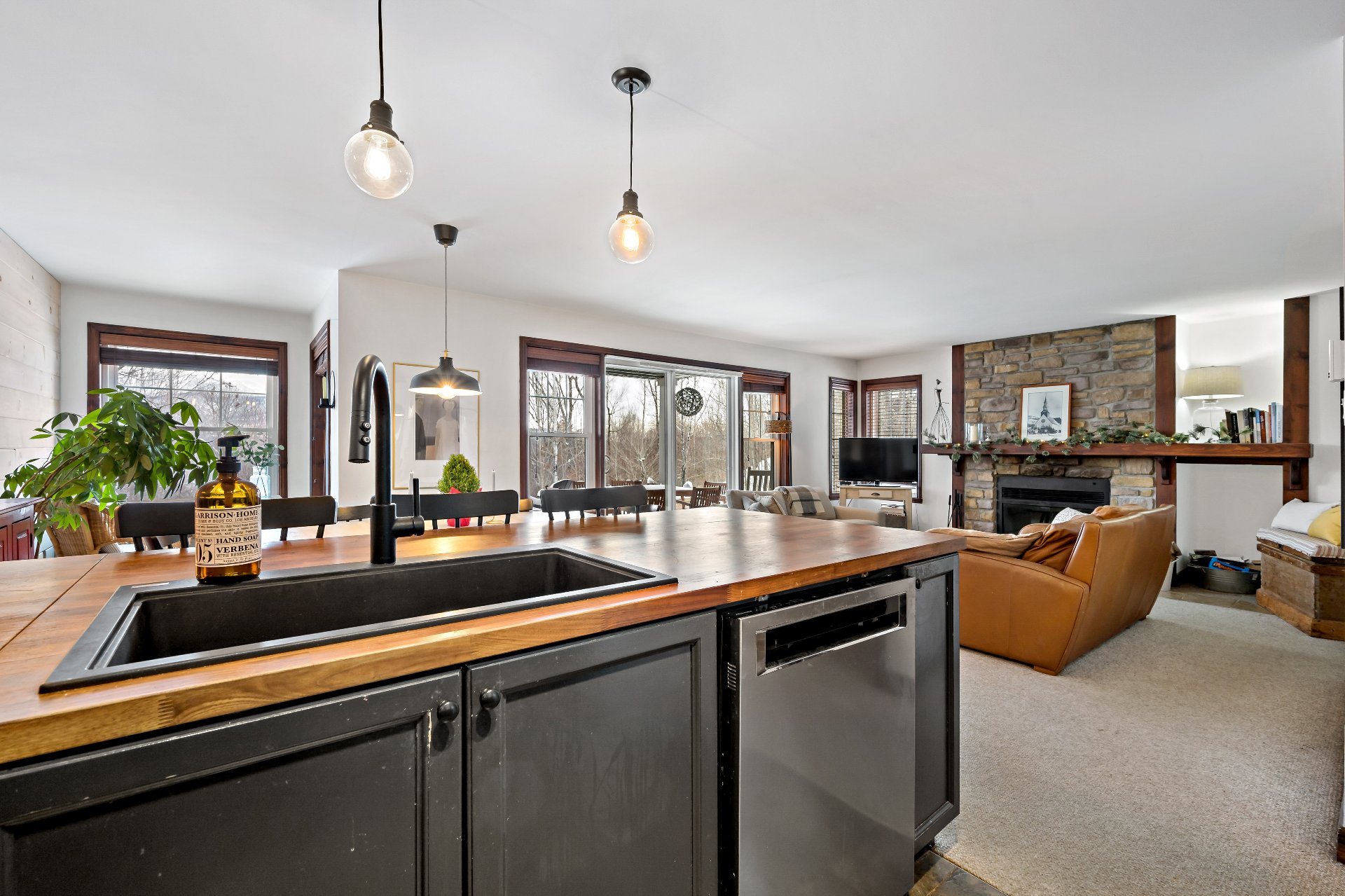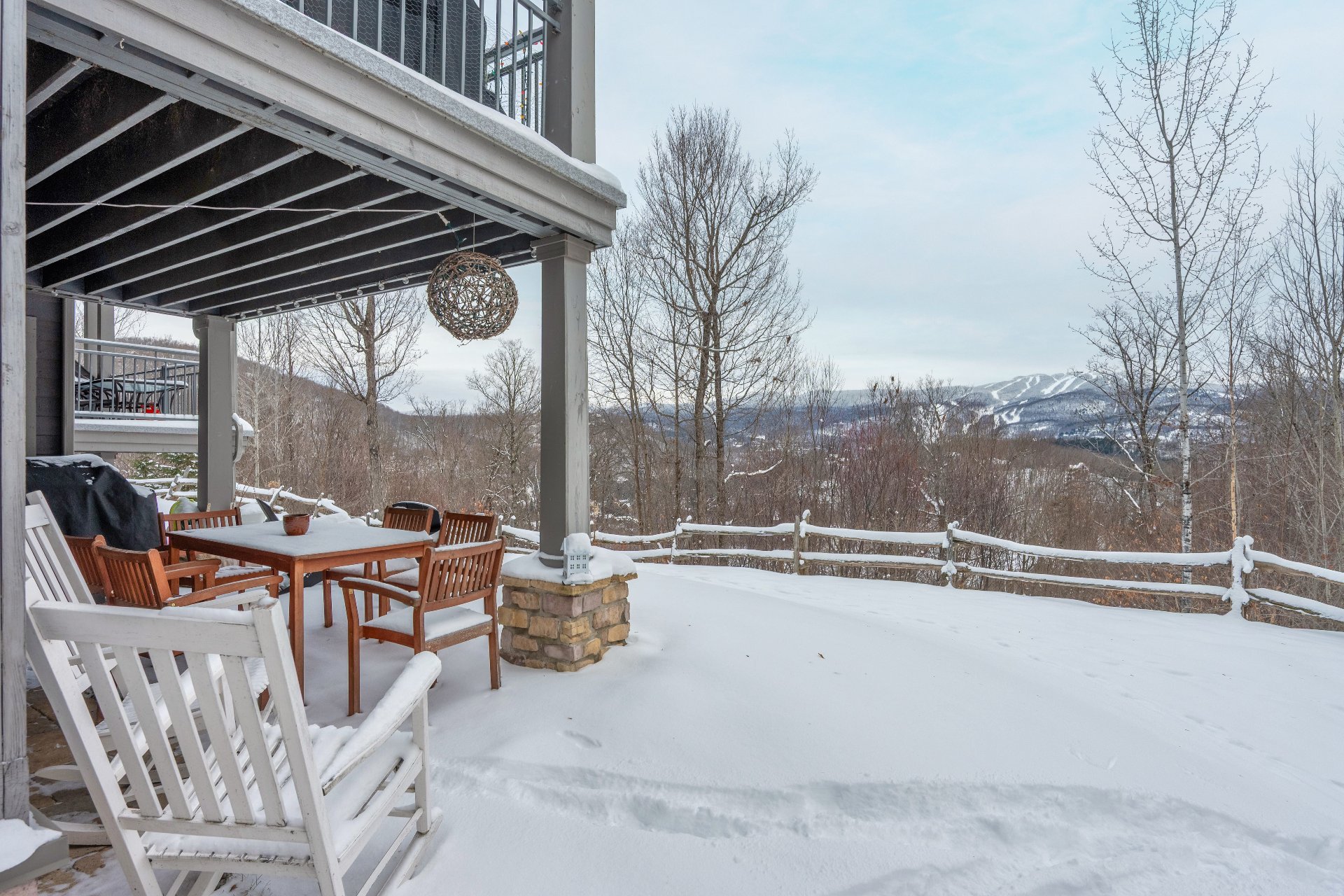 Cap Tremblant | Stunning condo offering an unparalleled view of the mountain! This fully renovated corner unit features a neat, elegant, and rustic style. Updated kitchen, modern bathroom with separate shower and bathtub, two bedrooms, and a large terrace to enjoy the panorama. The Valsorey Manoir offers a peaceful environment and neighborhood, ideal for unwinding while embracing the active lifestyle nearby. Less than 10 minutes from the Ski Resort and within walking distance of many cafés, beaches, shops, and outdoor skating rink! Access to a shared pool and spa. Tremblant awaits you!