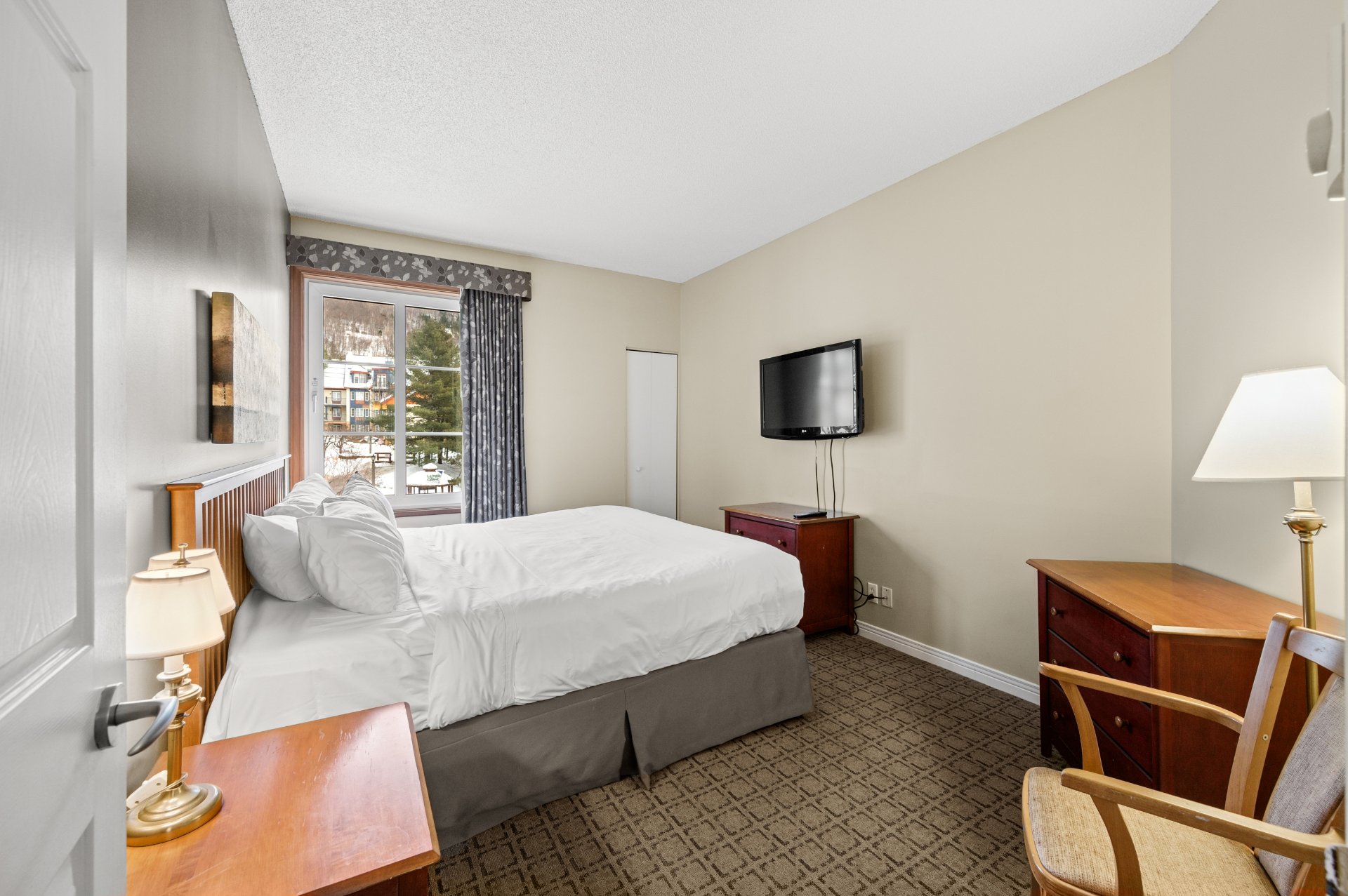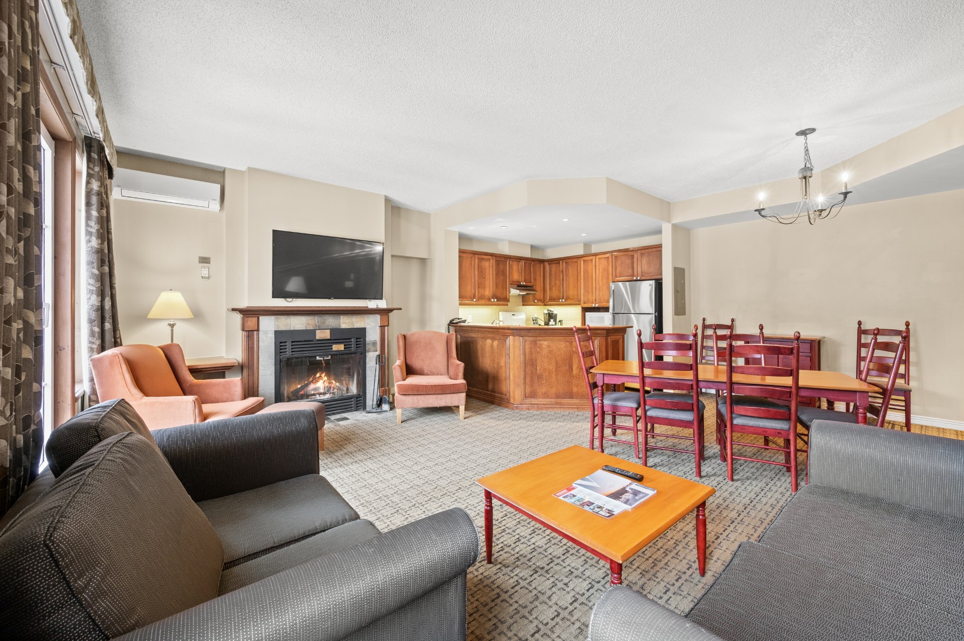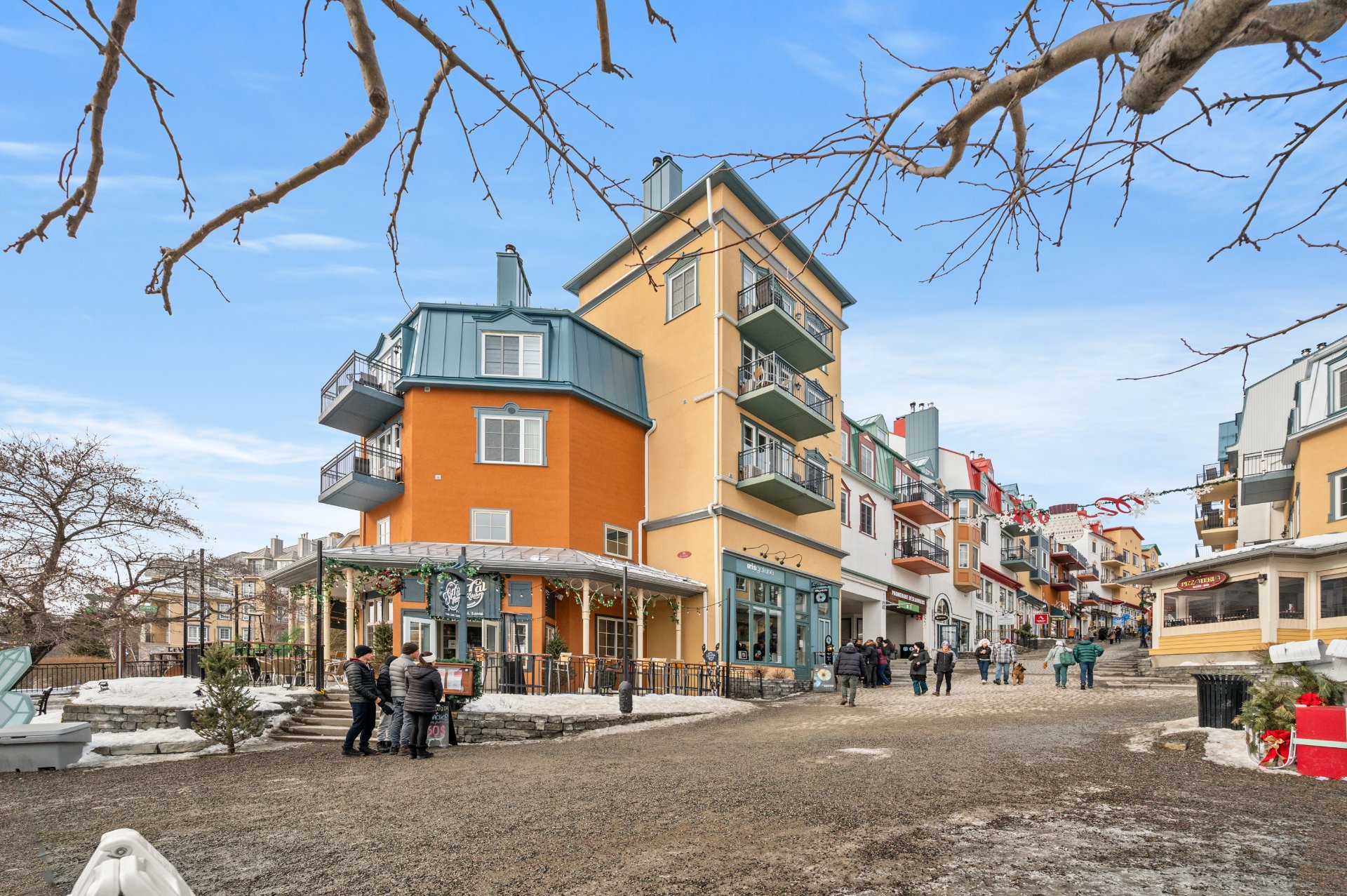 DESLAURIERS - Spacious one-level, 2 bedroom, 2 bathroom condo at the base of the slopes of Tremblant Resort. This amazing property offers the resort experience at its best and can sleep 8. It features a full kitchen, a warm wood-burning fireplace, and a private balcony overlooking the vibrant pedestrian village. With underground parking and direct access to skiing, hiking, dining and year-round activities, it's a prime rental opportunity. Currently generating income, it offers strong short-term rental potential while allowing flexible personal use throughout the seasons.