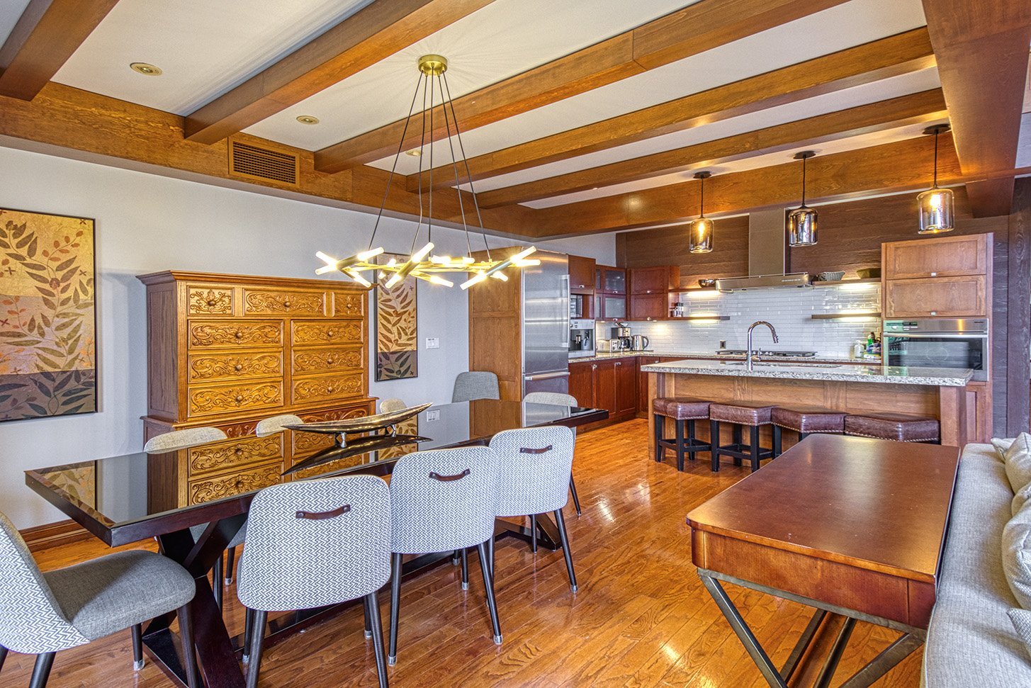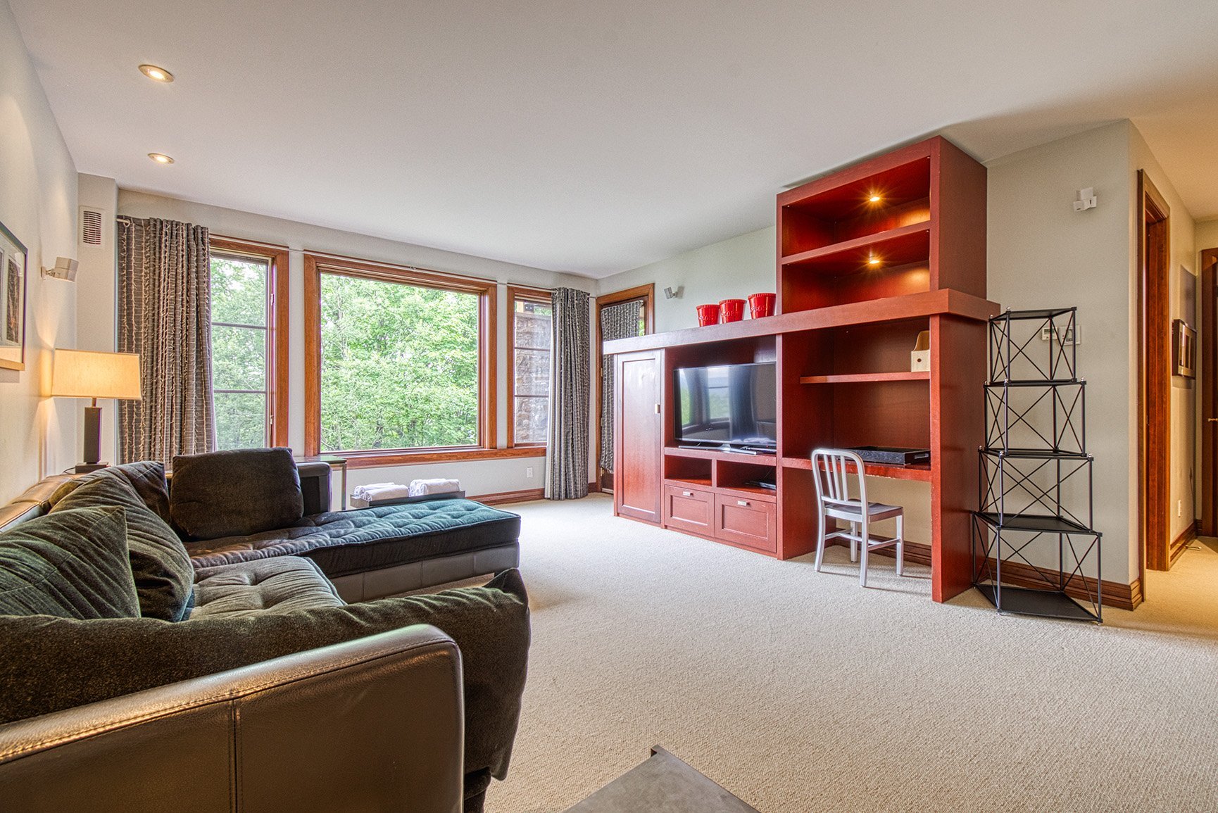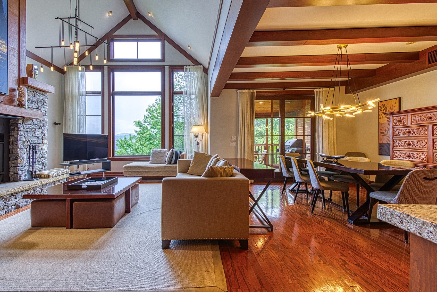 **Domaine Nansen - Légendes - Storied Places** Luxurious fully equipped townhouse on 3 floors offering a magnificent view of Lac-Tremblant and the surrounding mountains. Nestled in a private domain, this spacious residence has heated floors throughout, 4 beds + 3.5 baths. The house is equipped with high-end appliances, a state-of-the-art audio system, and a wood-burning fireplace. This ski-in/ski-out property has all these unparalleled amenities: infinity pool, private spa and shared spa, owners' lounge, indoor and outdoor parking, and shuttle to the resort and village. Fractional condo 1/10. Used by owner 5 weeks/year plus space available.