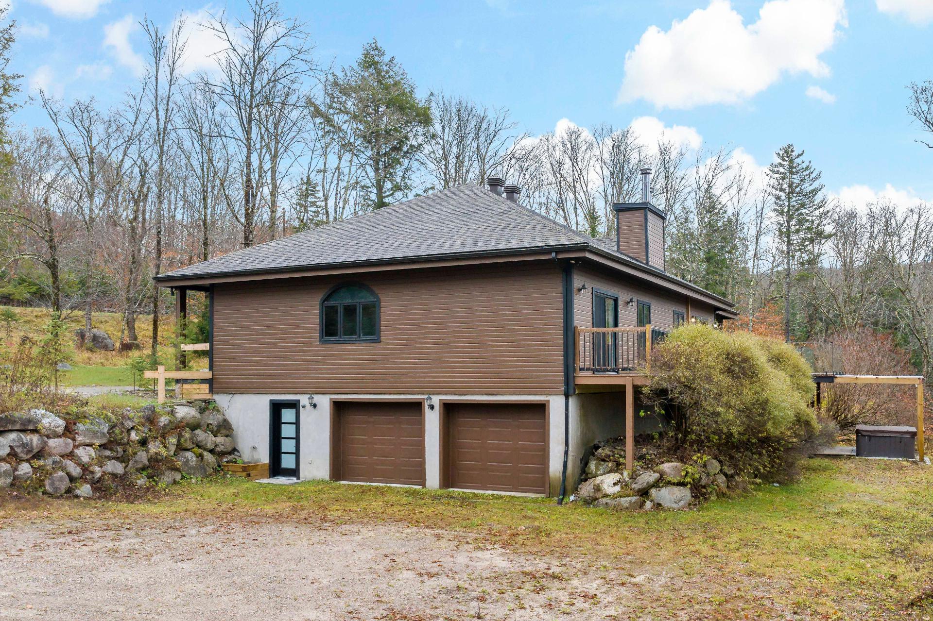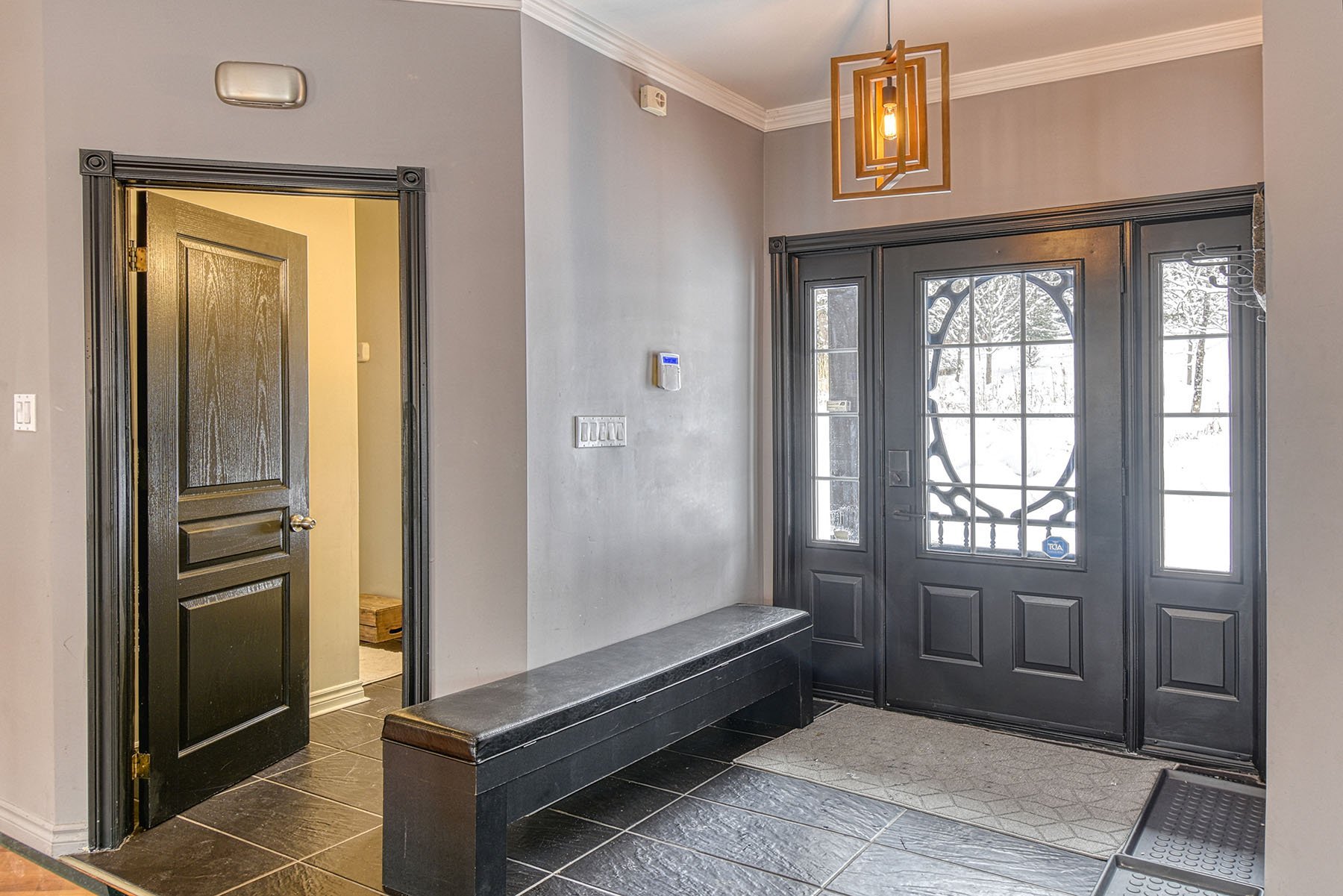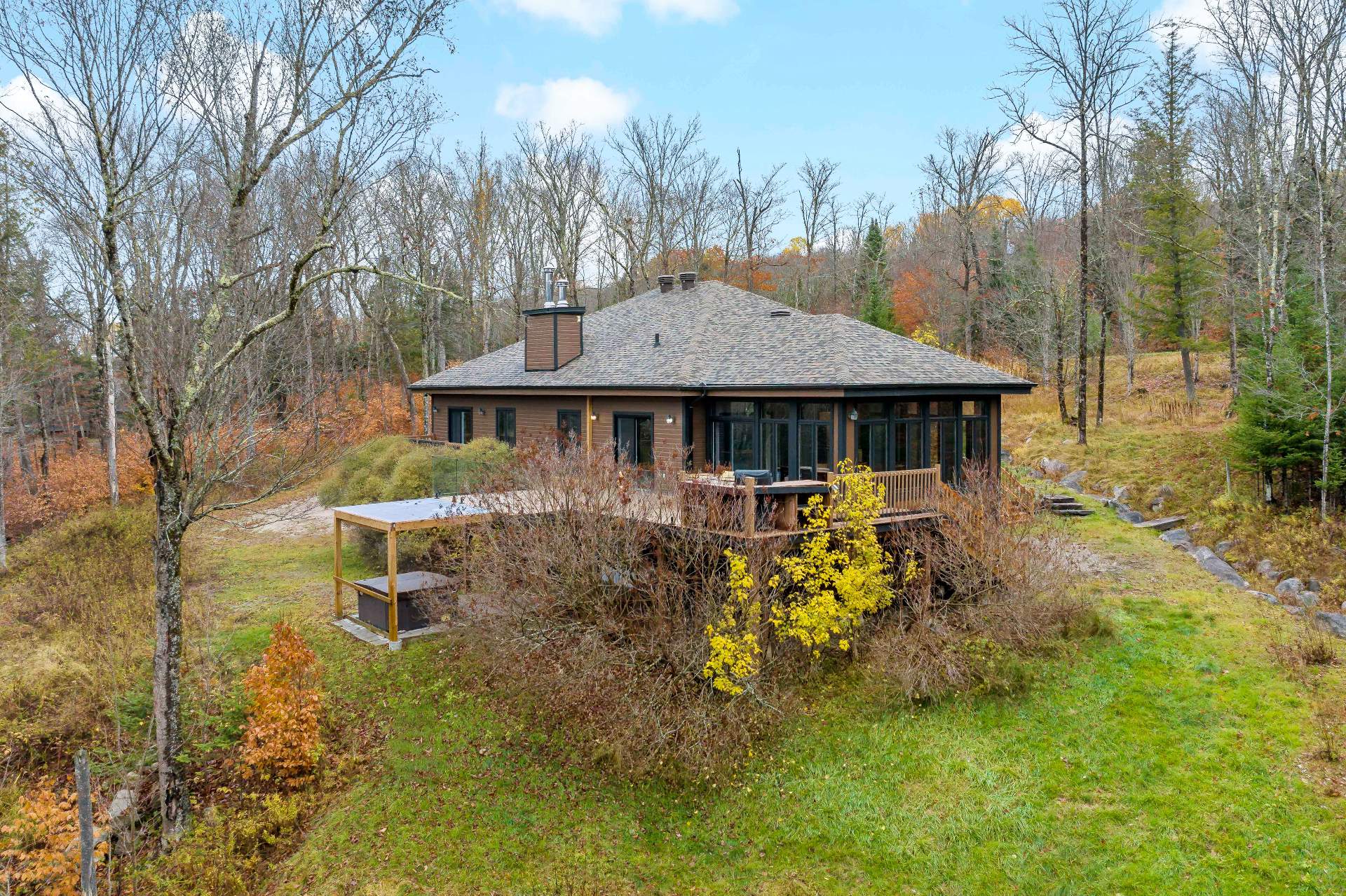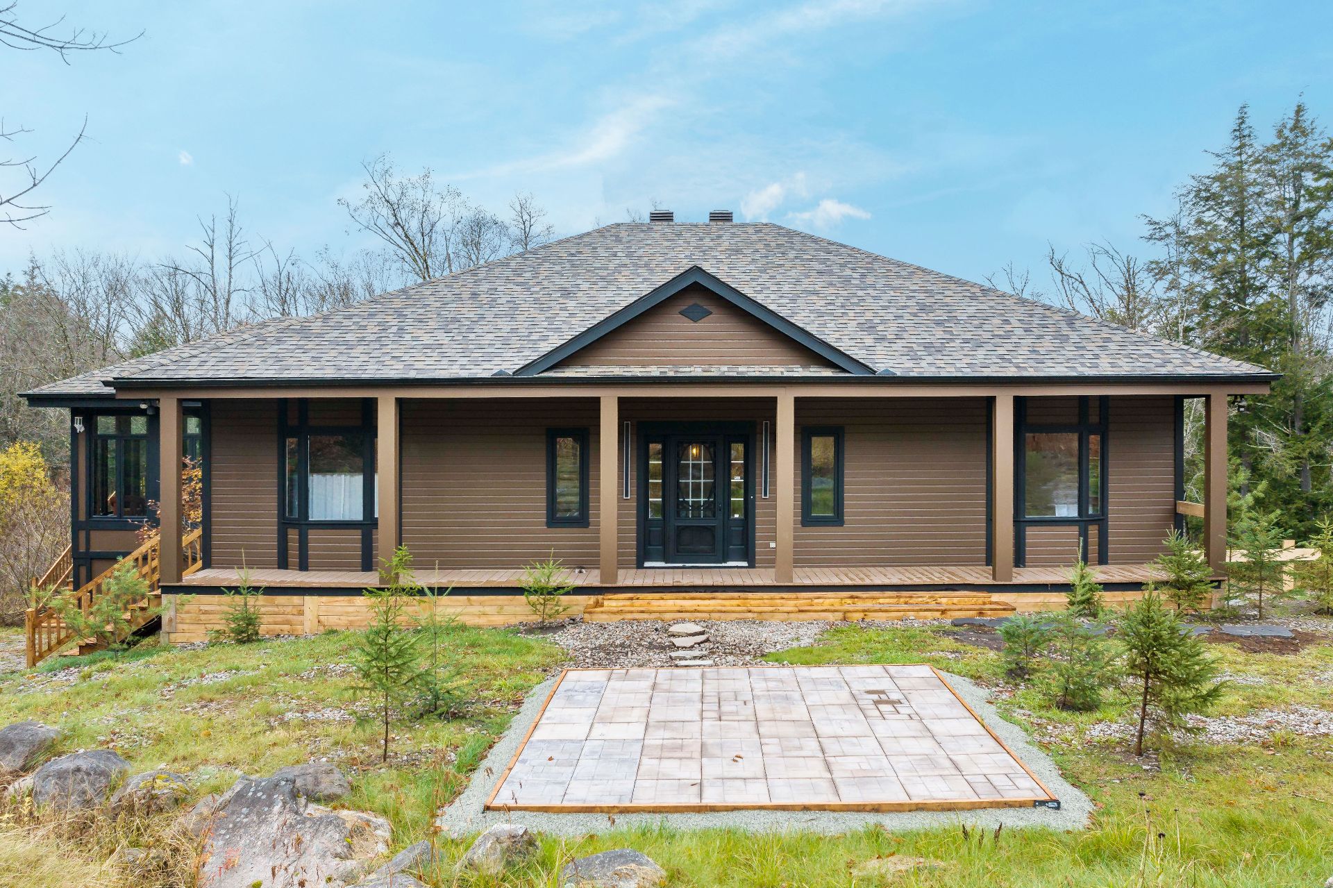 Magnificent freshly renovated property on a wooded lot of over 160,000 sq. ft. offering 5 bedrooms and 4 bathrooms. Every corner of this residence has been designed with unparalleled attention to detail, providing a luxurious and harmonious lifestyle. You will discover, among other features, a spacious open concept with generous windows, a stunning fireplace, and a huge terrace. The kitchen will charm you with its panoramic view of nature, floor-to-ceiling cabinets, and large central island. In the basement, there is a steam sauna, a 2nd fireplace, 2 bedrooms, 2 bathrooms, an outside spa, and much more, see addendum.