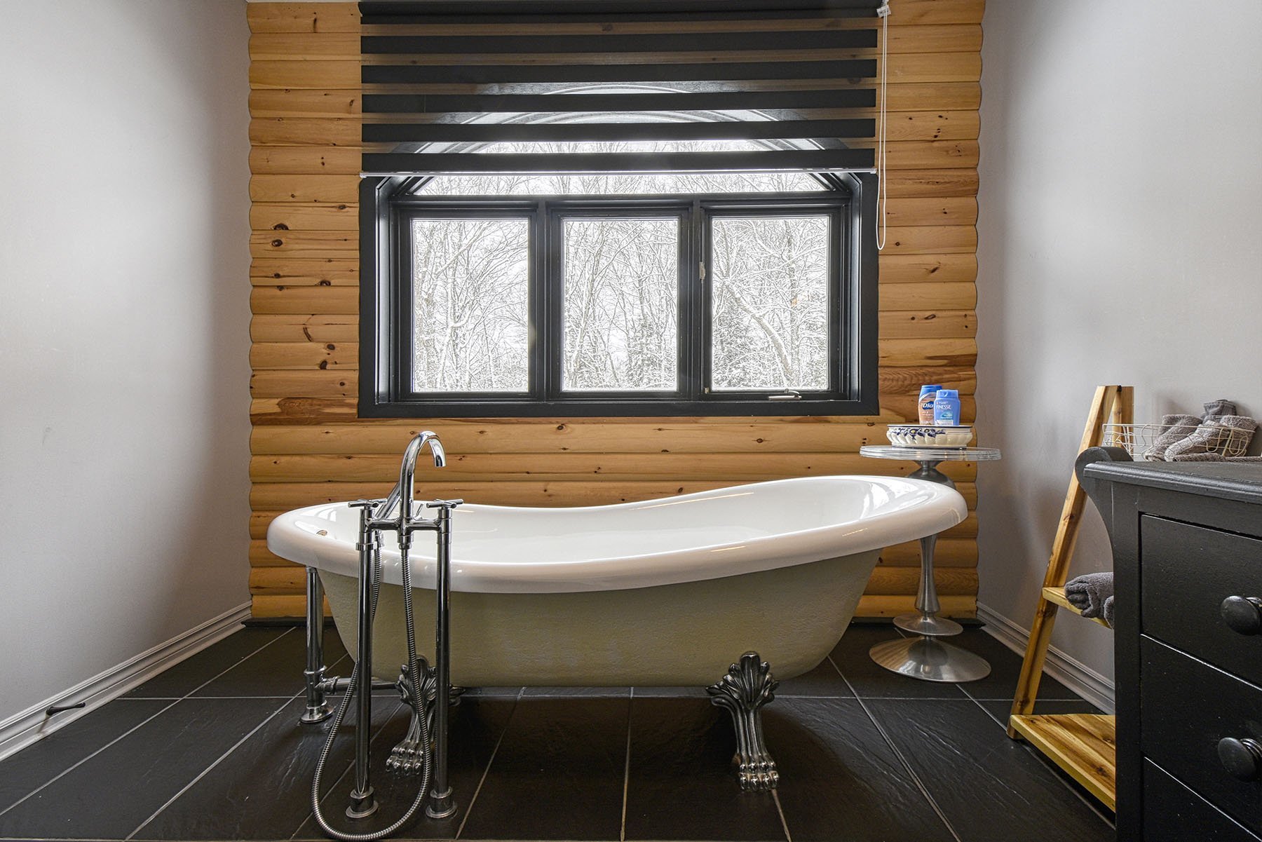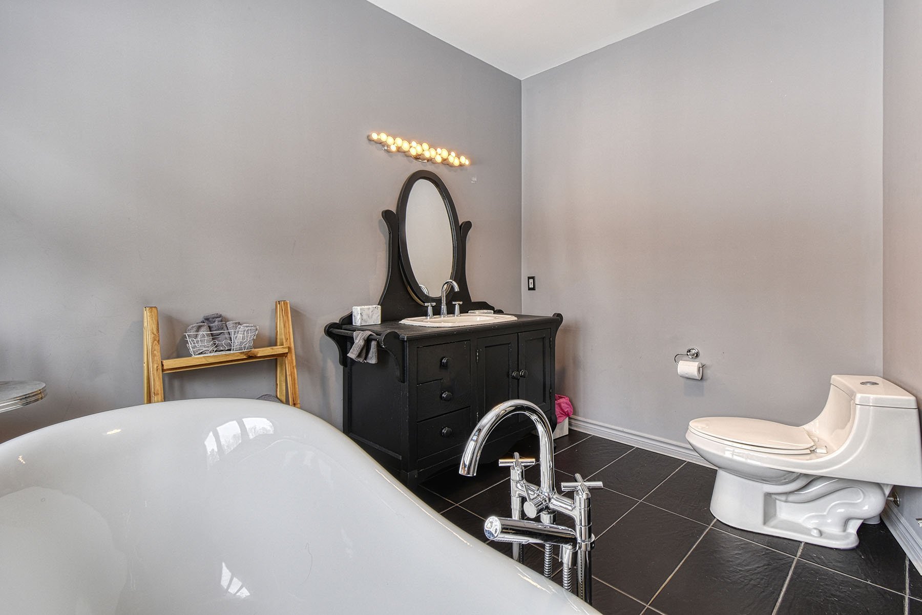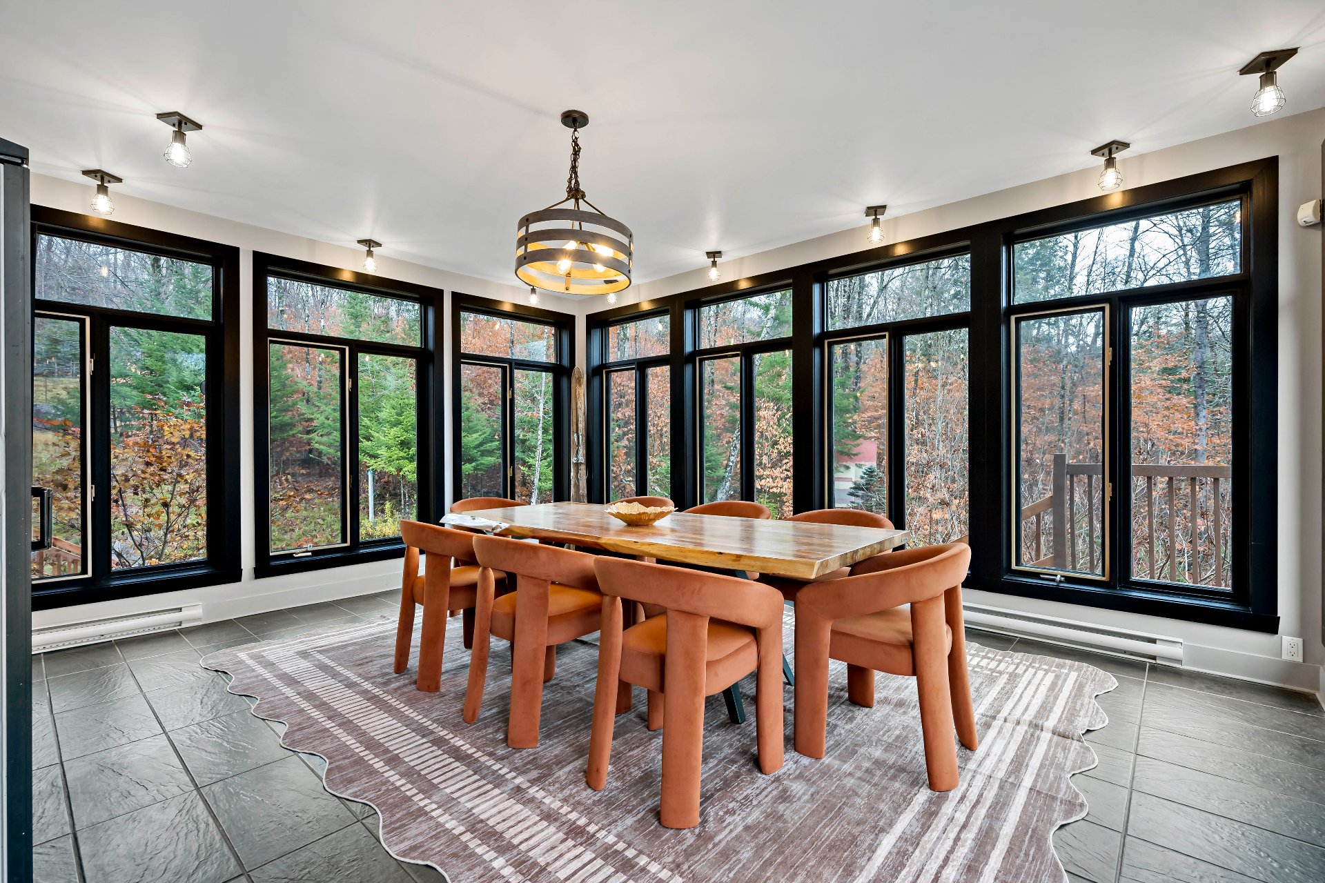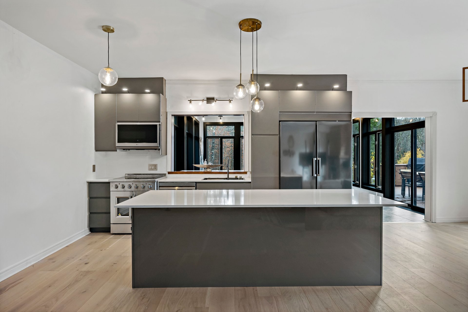 Magnificent freshly renovated property on a wooded lot of over 160,000 sq. ft. offering 5 bedrooms and 4 bathrooms. Every corner of this residence has been designed with unparalleled attention to detail, providing a luxurious and harmonious lifestyle. You will discover, among other features, a spacious open concept with generous windows, a stunning fireplace, and a huge terrace. The kitchen will charm you with its panoramic view of nature, floor-to-ceiling cabinets, and large central island. In the basement, there is a steam sauna, a 2nd fireplace, 2 bedrooms, 2 bathrooms, an outside spa, and much more, see addendum.