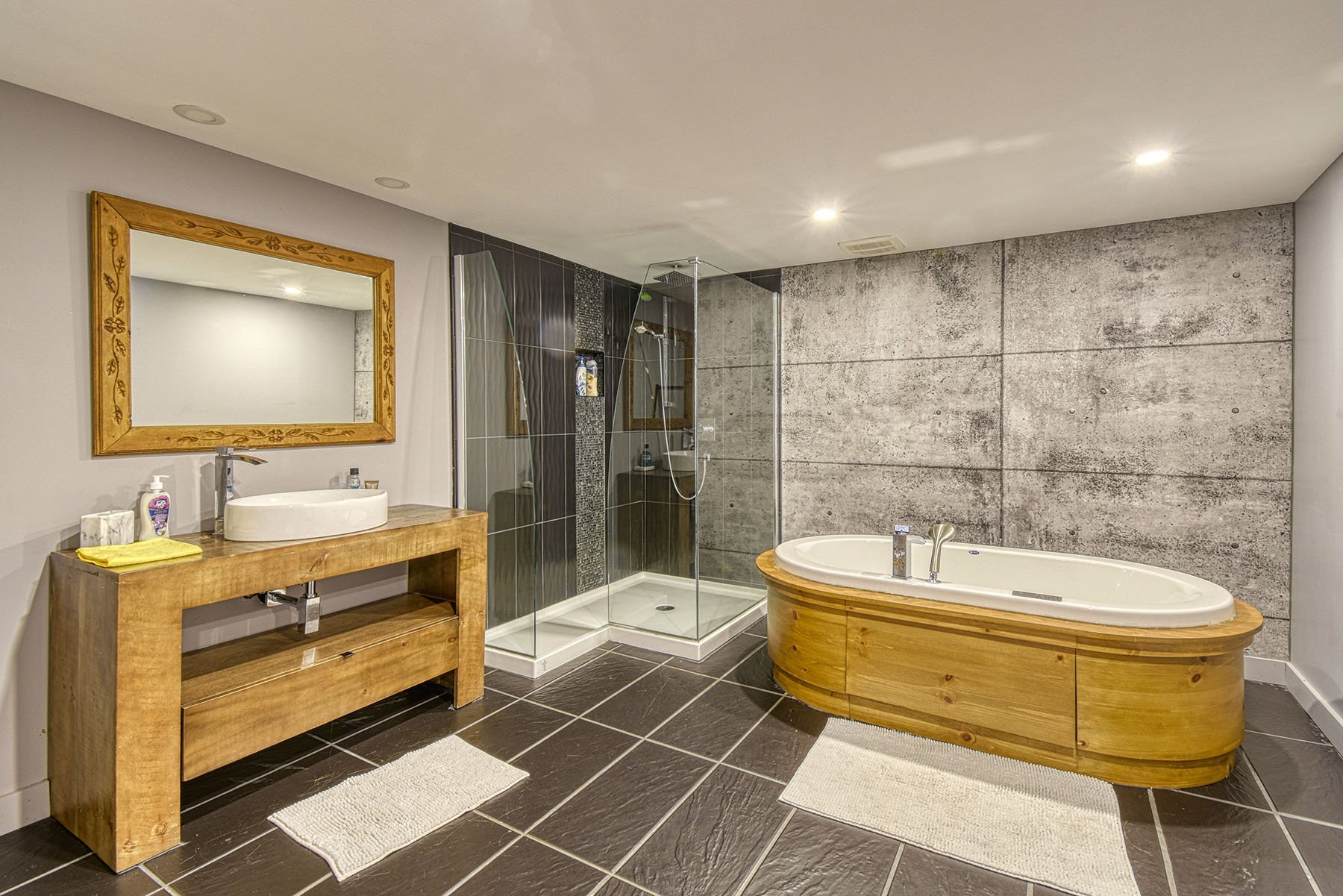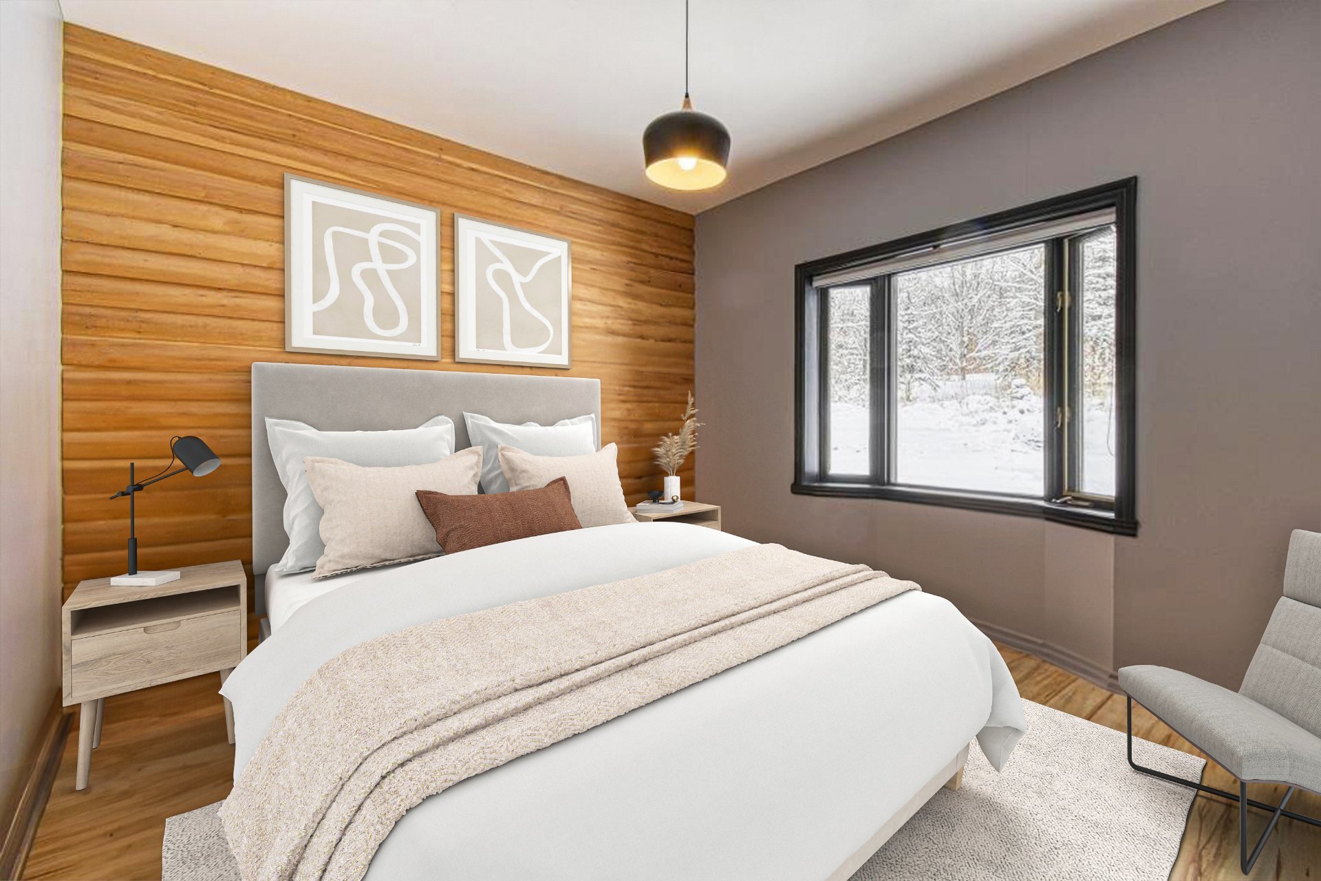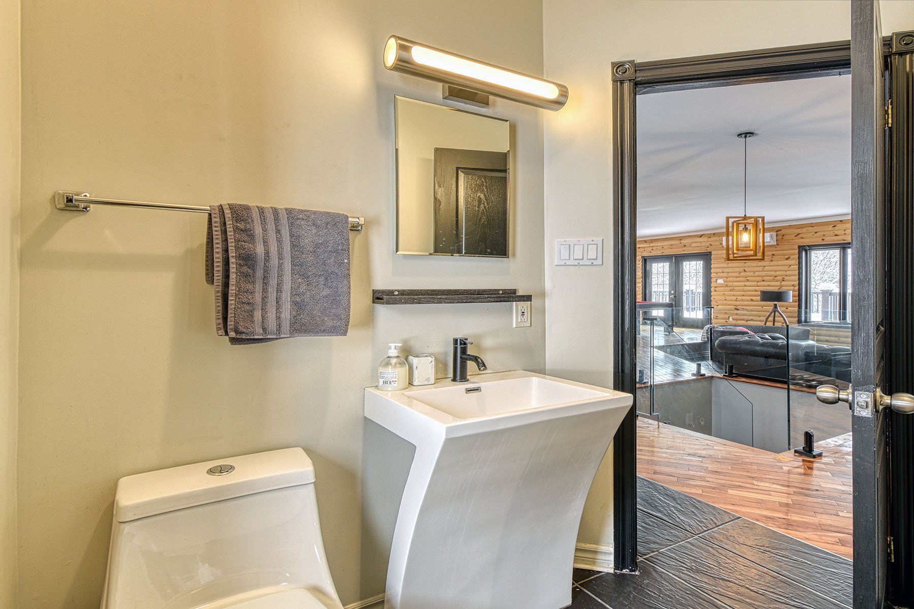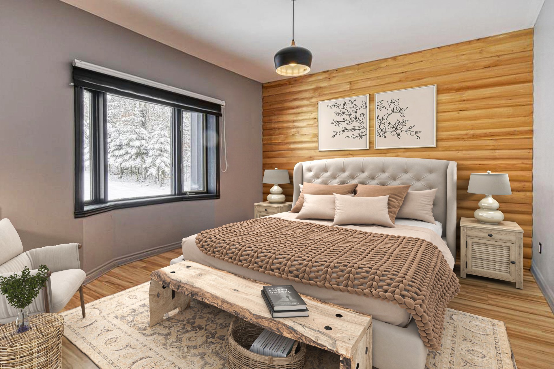 Magnificent freshly renovated property on a wooded lot of over 160,000 sq. ft. offering 5 bedrooms and 4 bathrooms. Every corner of this residence has been designed with unparalleled attention to detail, providing a luxurious and harmonious lifestyle. You will discover, among other features, a spacious open concept with generous windows, a stunning fireplace, and a huge terrace. The kitchen will charm you with its panoramic view of nature, floor-to-ceiling cabinets, and large central island. In the basement, there is a steam sauna, a 2nd fireplace, 2 bedrooms, 2 bathrooms, an outside spa, and much more, see addendum.