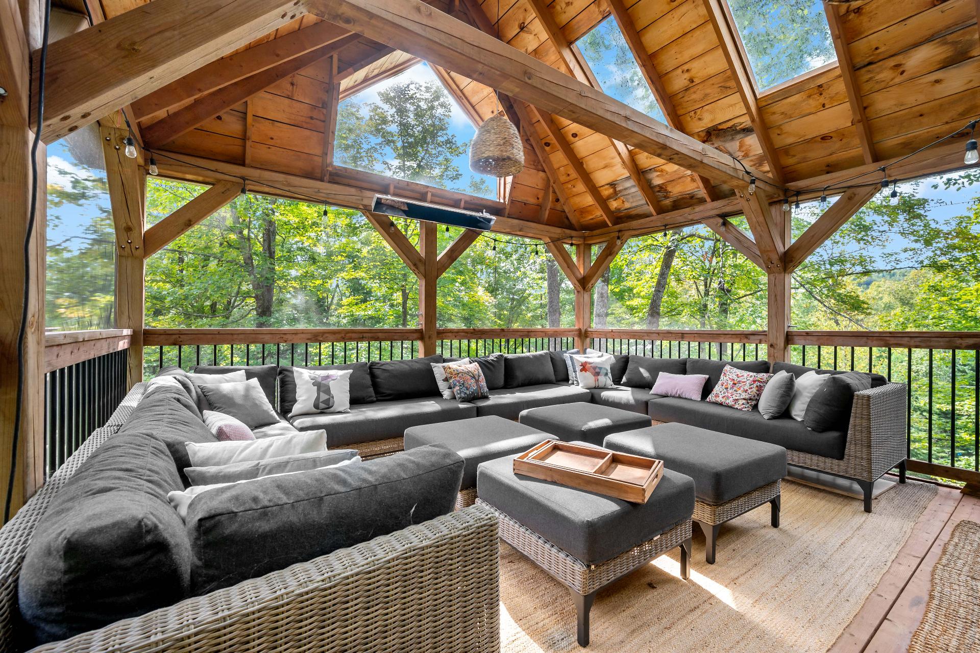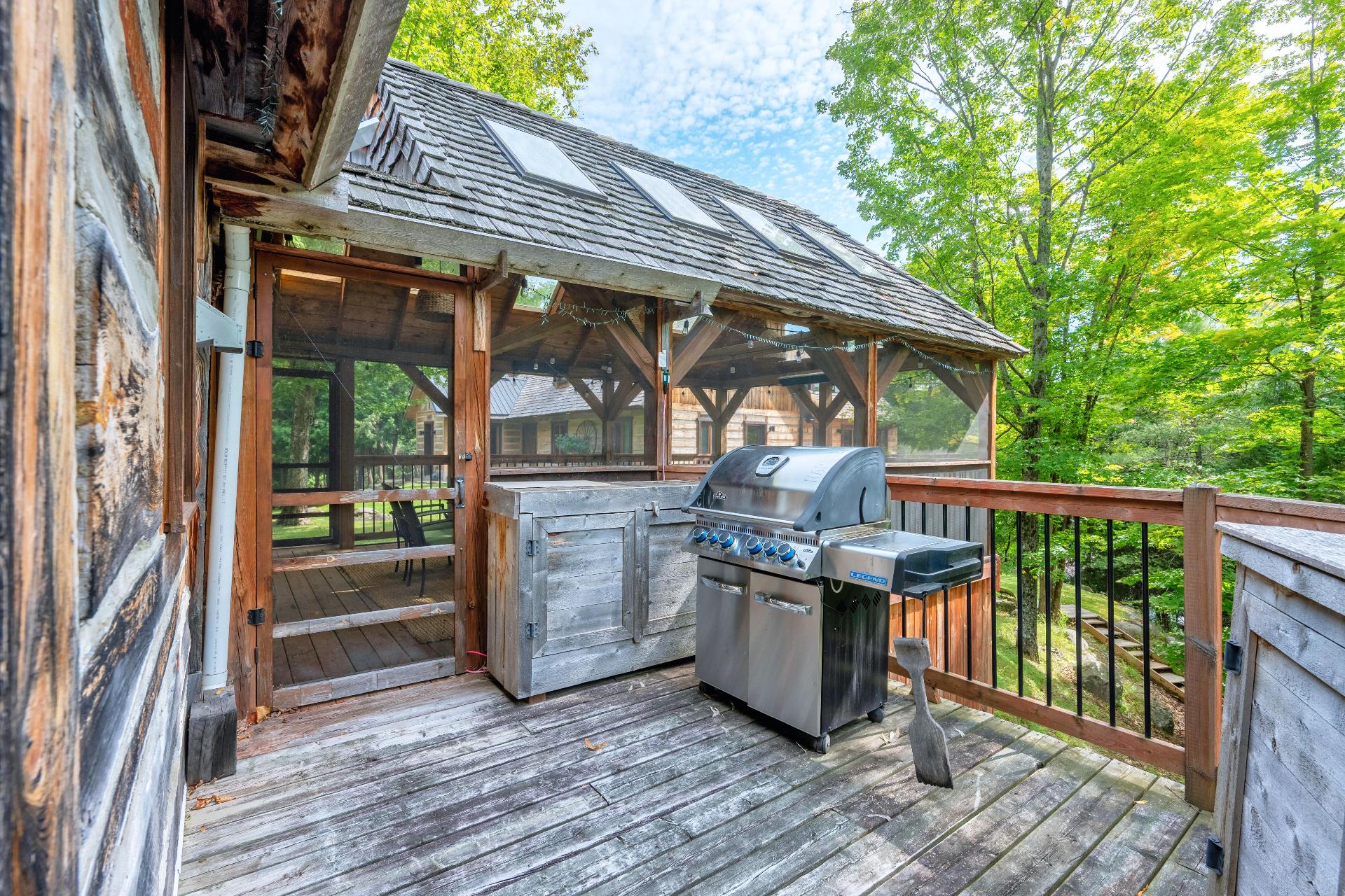 Discover this magnificent three-story home located in the heart of Mont-Tremblant's Old Village. Featuring a warm and charming rustic design, highlighted by spacious living areas, two wood-burning fireplaces and a wood stove. The large three-season veranda and multiple wraparound balconies overlook the surrounding nature. Recent upgrades to the garden level include new heated floors and renovated bathrooms. Within walking distance to Lake Moore, the beach and boat launch of Lake Mercier, a covered outdoor rink, a shuttle stop bringing you straight to the ski hill, and so much more, this property offers the perfect lifestyle!