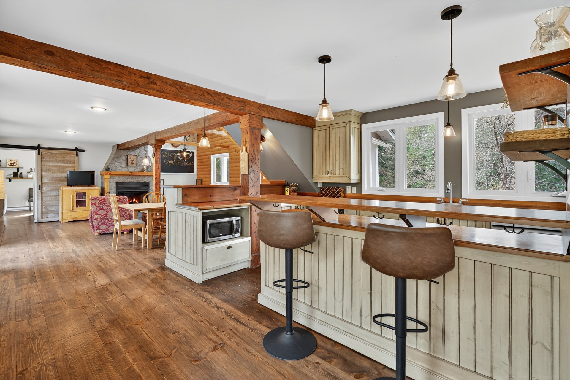 Beautiful turnkey chalet, fully furnished and equipped, located directly on the river leading to Lac de la Sucrerie. CITQ permit for short-term rentals. Flat waterfront lot with easy access to ATV and snowmobile trails, just 5 min from Papineau-Labelle Park, 40 min from Tremblant, and 1h30 from Ottawa. Perfect for investors or nature lovers -- ready to rent or enjoy right away!