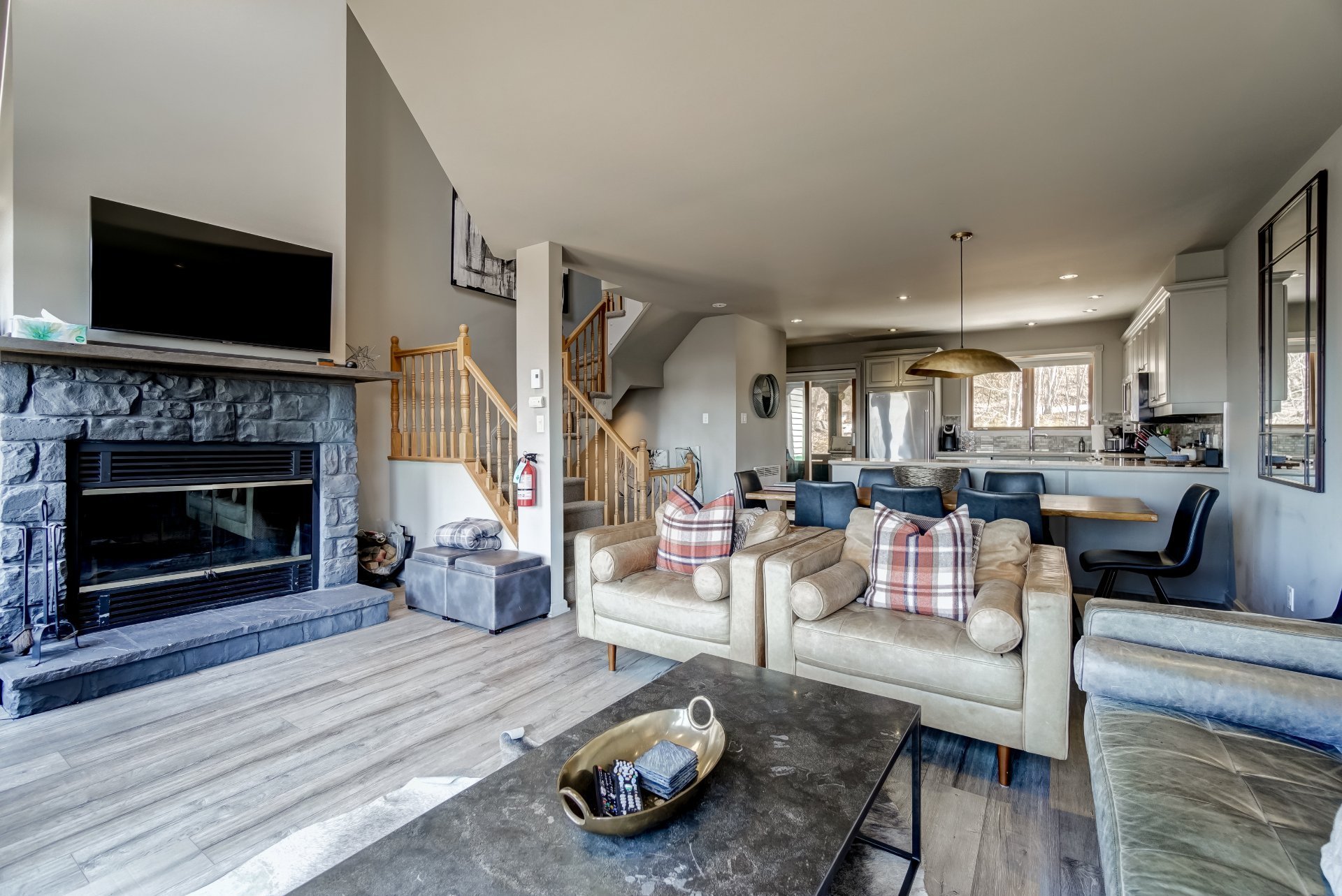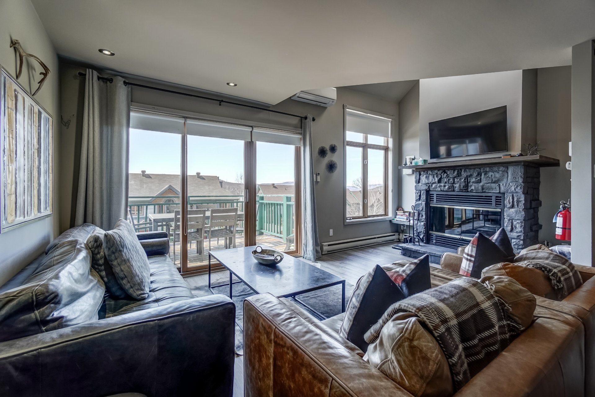 La Clairière | Ski-in, ski-out! Spacious townhouse with breathtaking views of Lac Tremblant and the surrounding mountains. This is a stunning 4-bedroom, 4-story home with 3 balconies, including a screened-in one off the kitchen, 3.5 bathrooms, and 2 parking spaces. Its interior is beautifully furnished and decorated with impeccable taste. Recent renovations throughout the house ensure that every room is fresh and modern. And when it's time to gather with family or friends, the large family room provides the perfect setting. Don't miss the opportunity to make this exceptional home your home away from home!