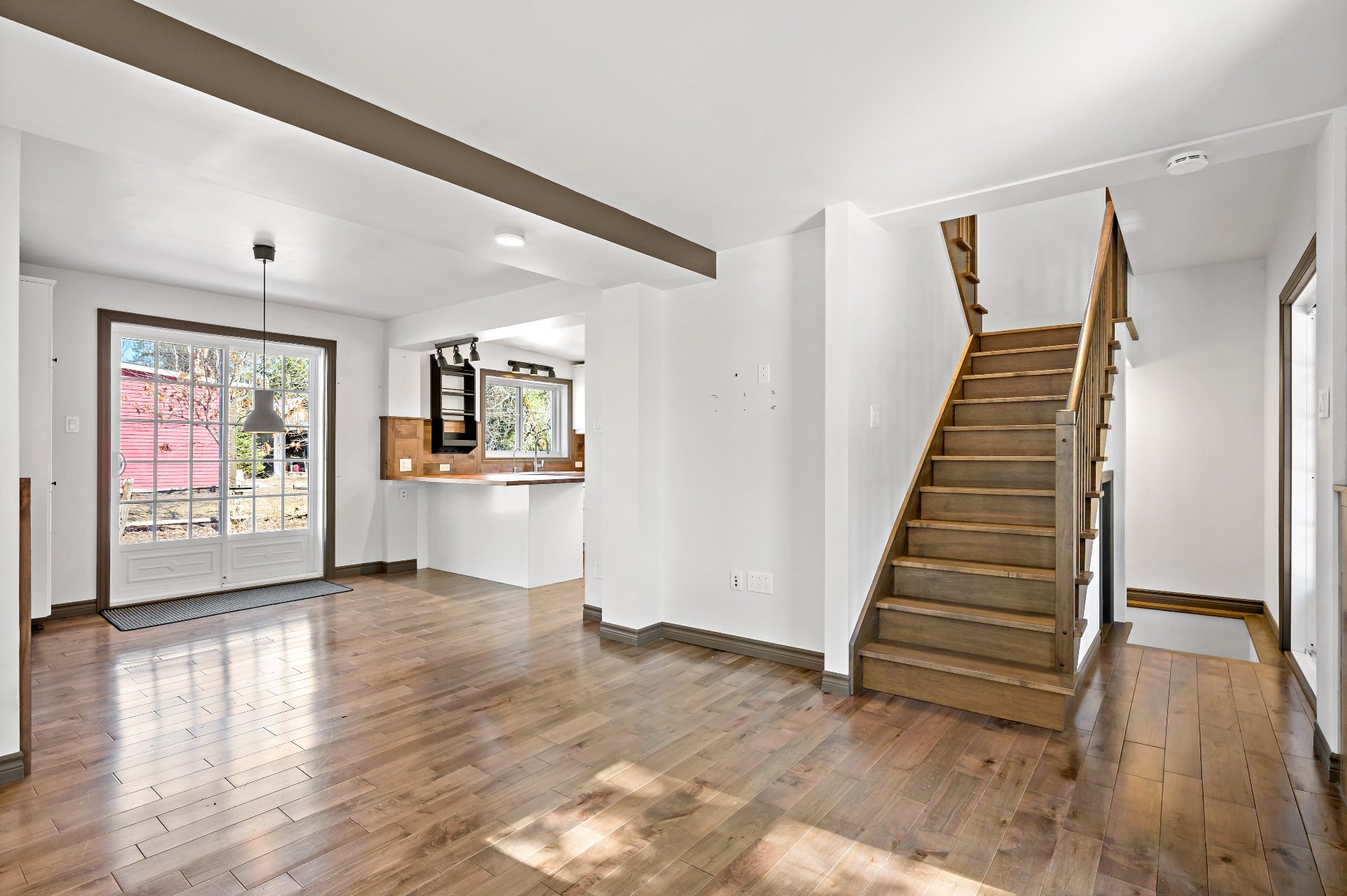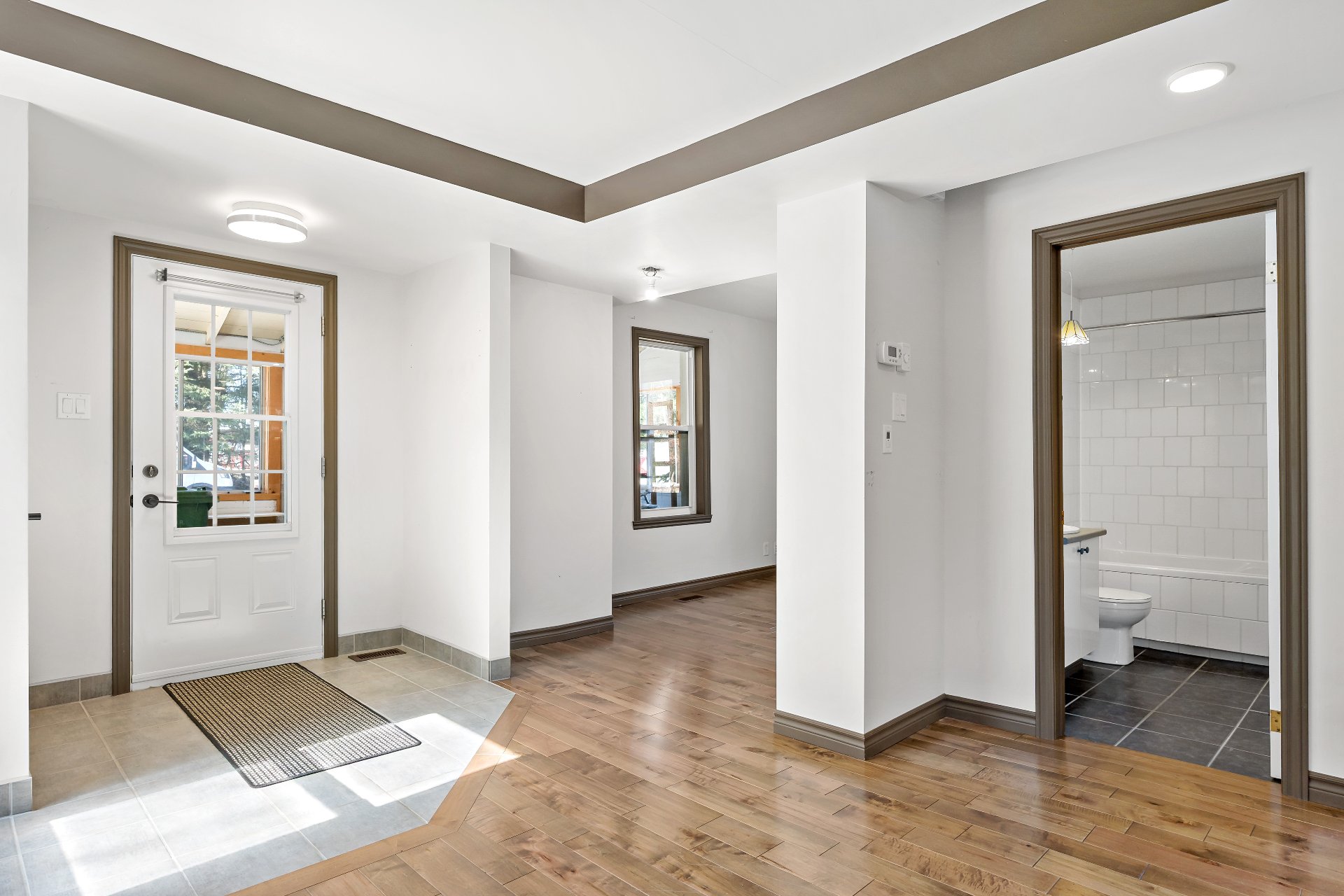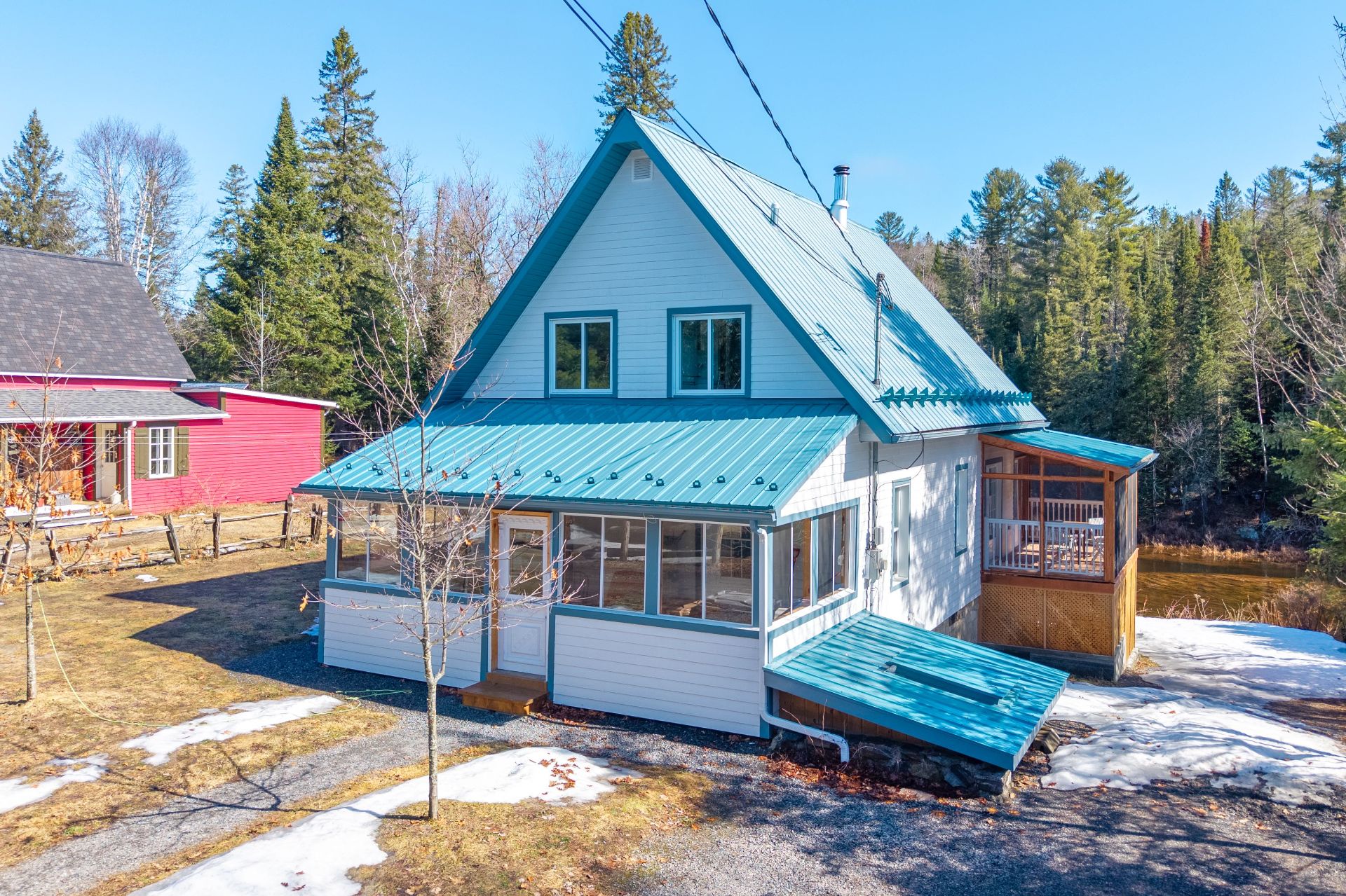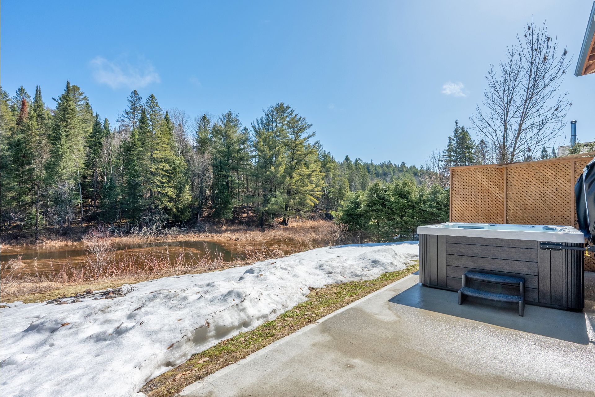 Enchanting 2-bedroom village house with office + 2 bathrooms nestled on the picturesque Petit Train du Nord. This charming home features hardwood floors on 2 levels, an inviting open concept layout, and a delightful creek in the backyard. Just a leisurely 2-minute stroll to the village, 5 minutes to Montagne verte, and a mere 15-minute drive to the renowned Tremblant.