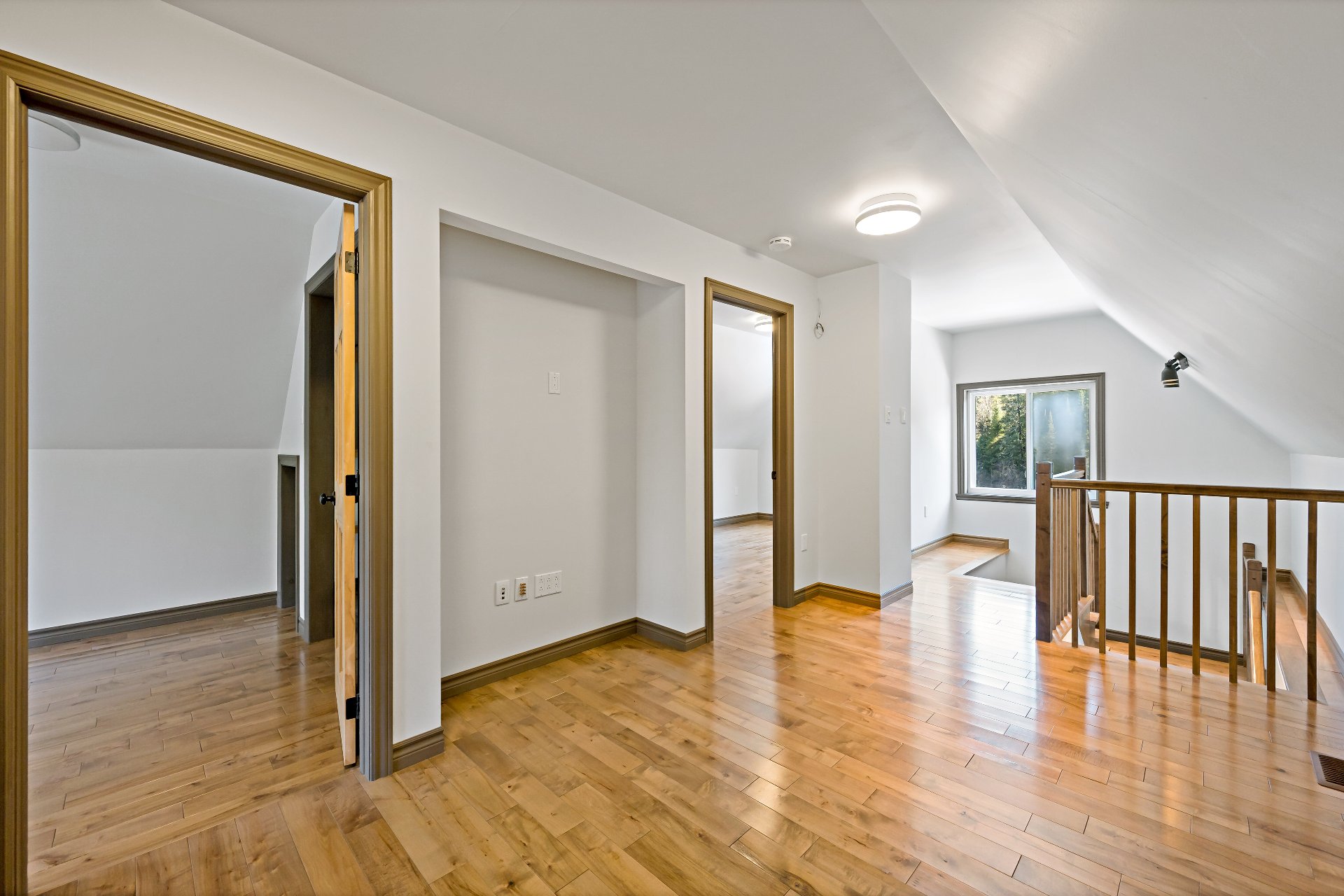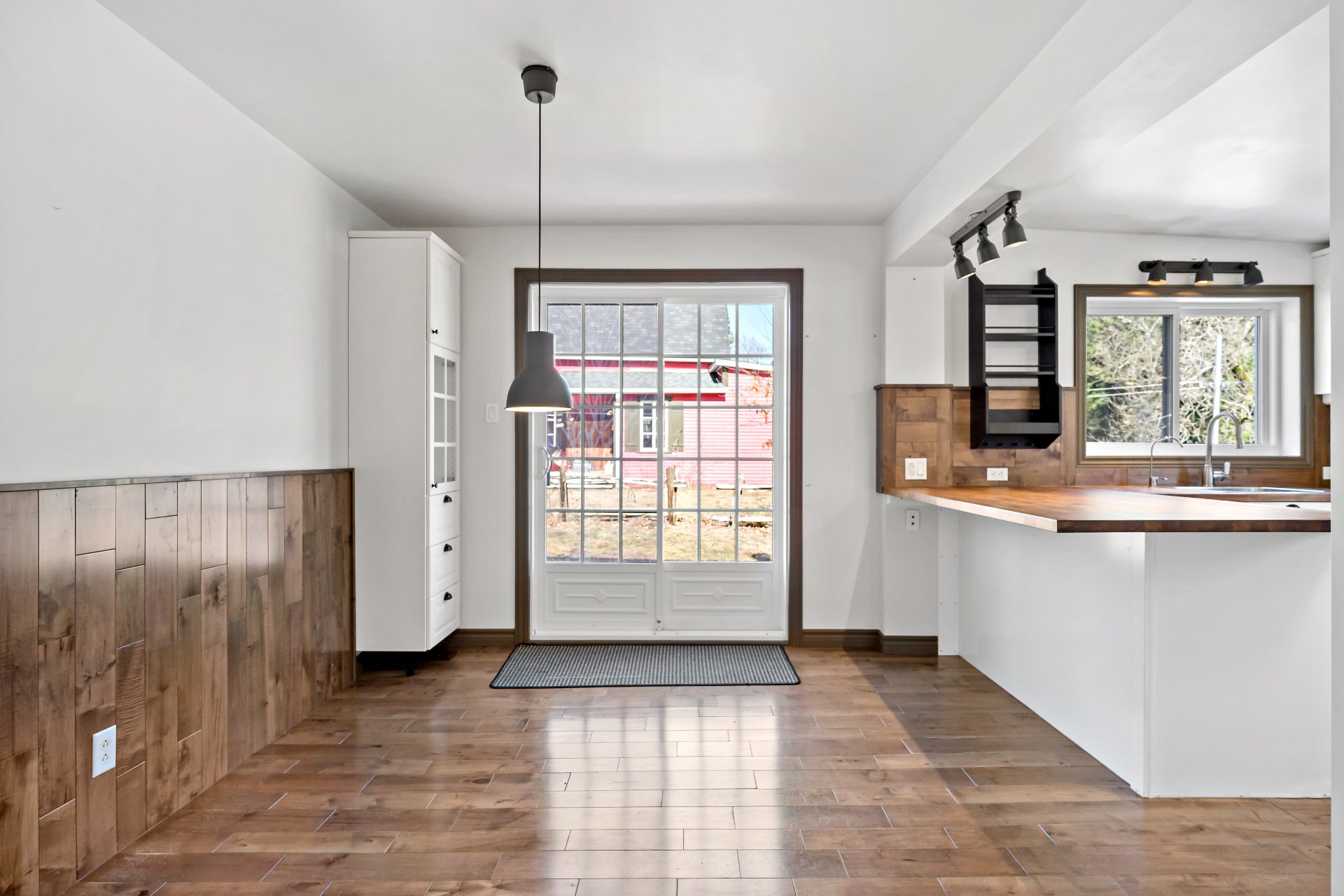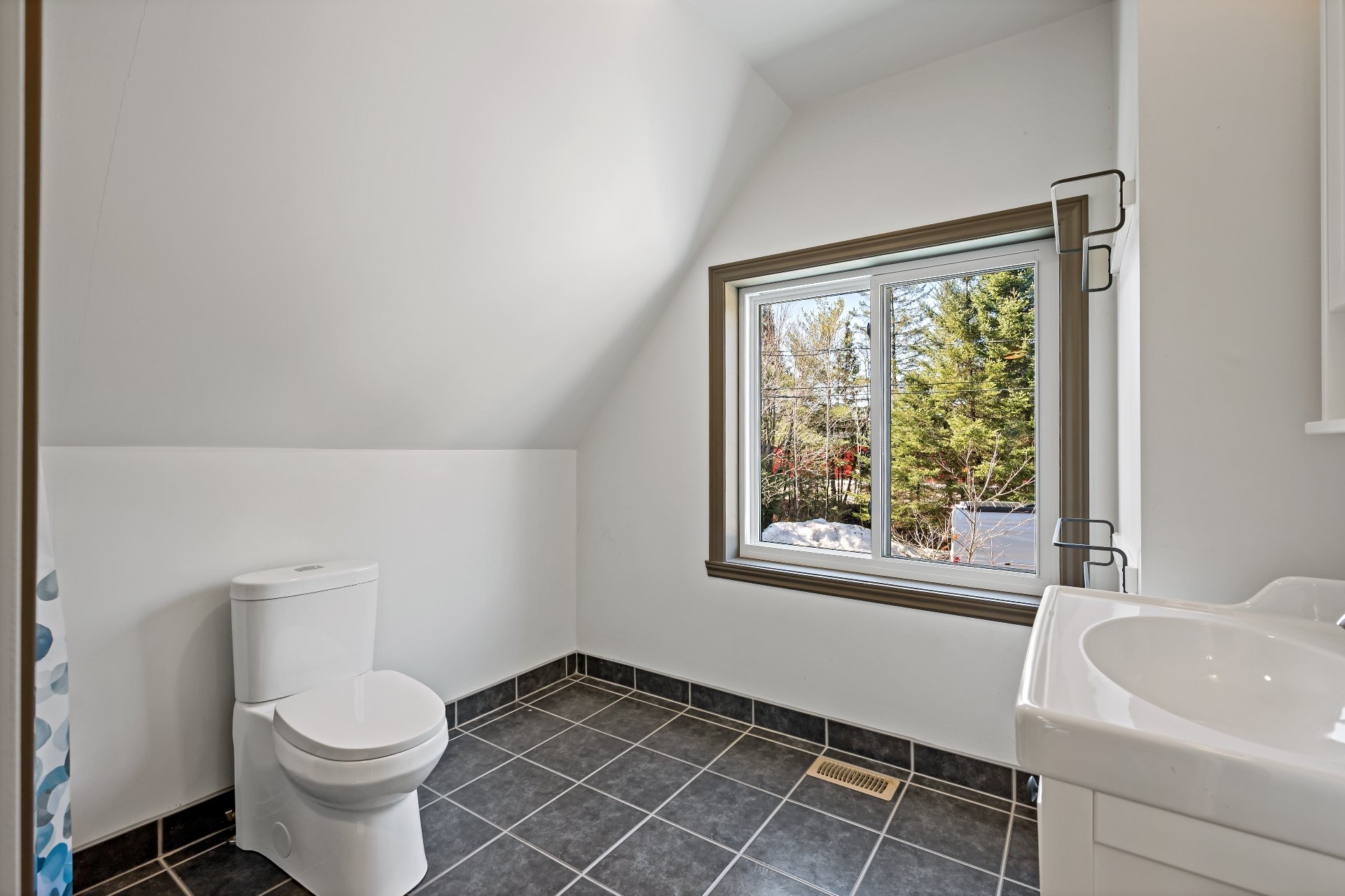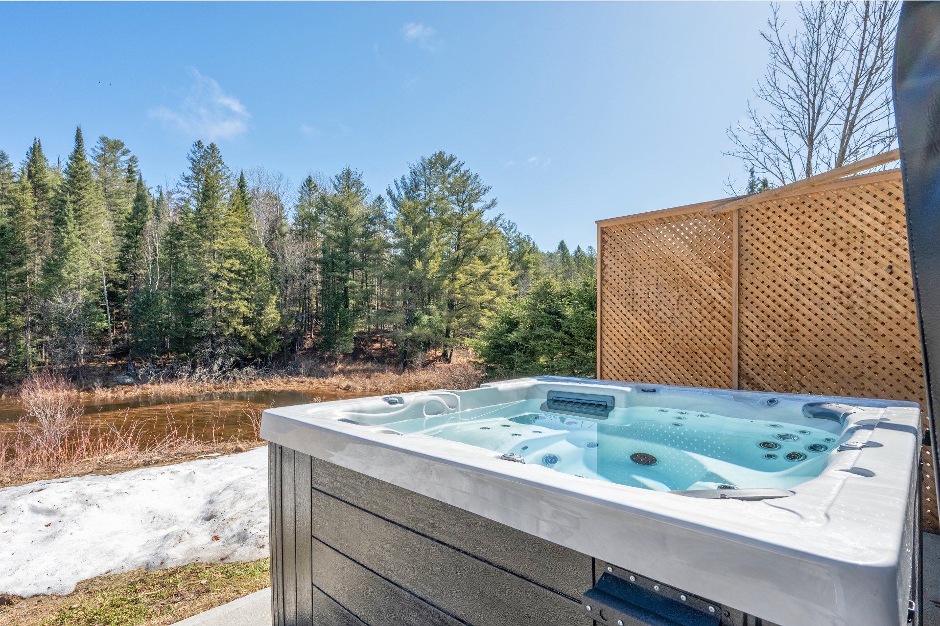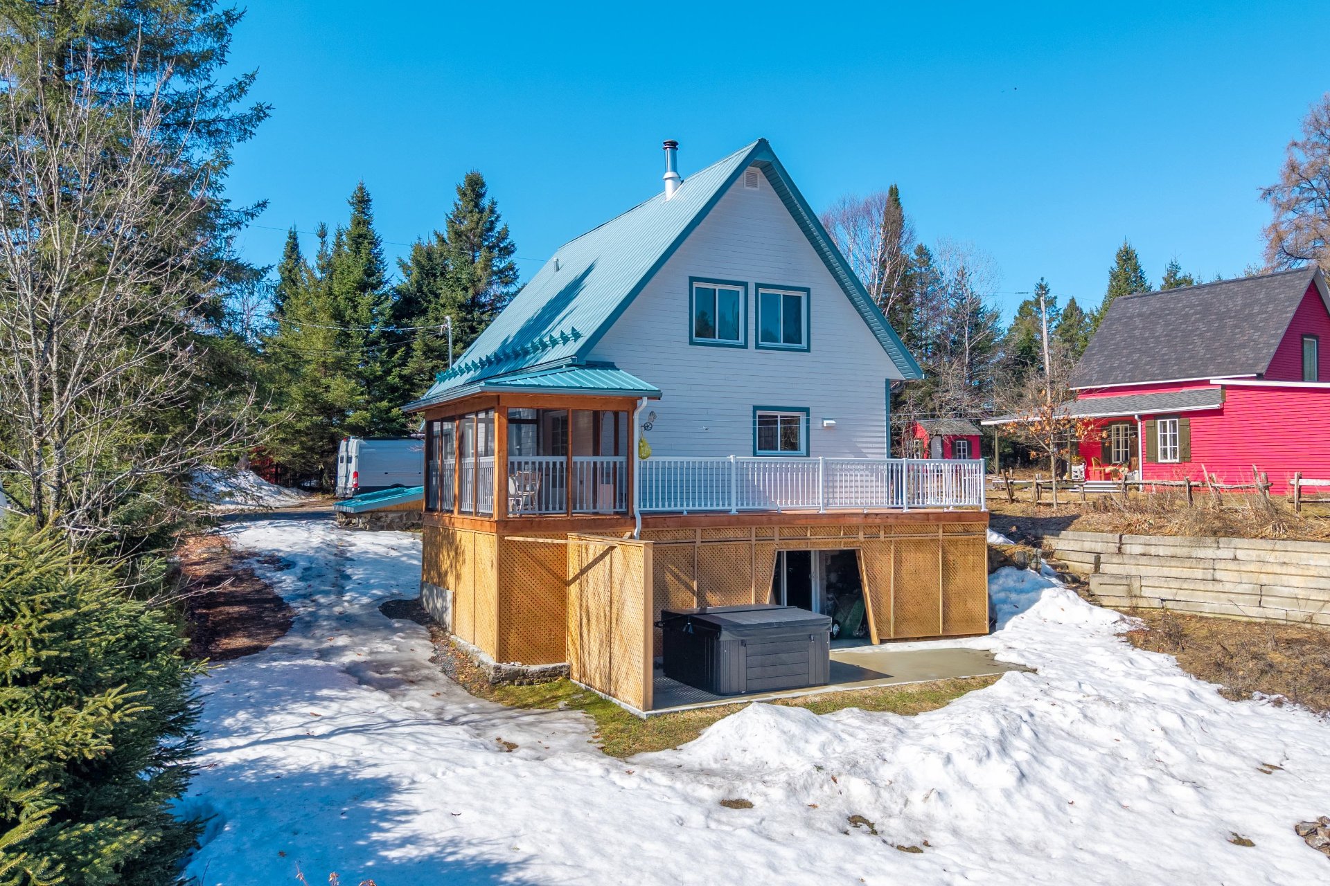 Enchanting 2-bedroom village house with office + 2 bathrooms nestled on the picturesque Petit Train du Nord. This charming home features hardwood floors on 2 levels, an inviting open concept layout, and a delightful creek in the backyard. Just a leisurely 2-minute stroll to the village, 5 minutes to Montagne verte, and a mere 15-minute drive to the renowned Tremblant.
