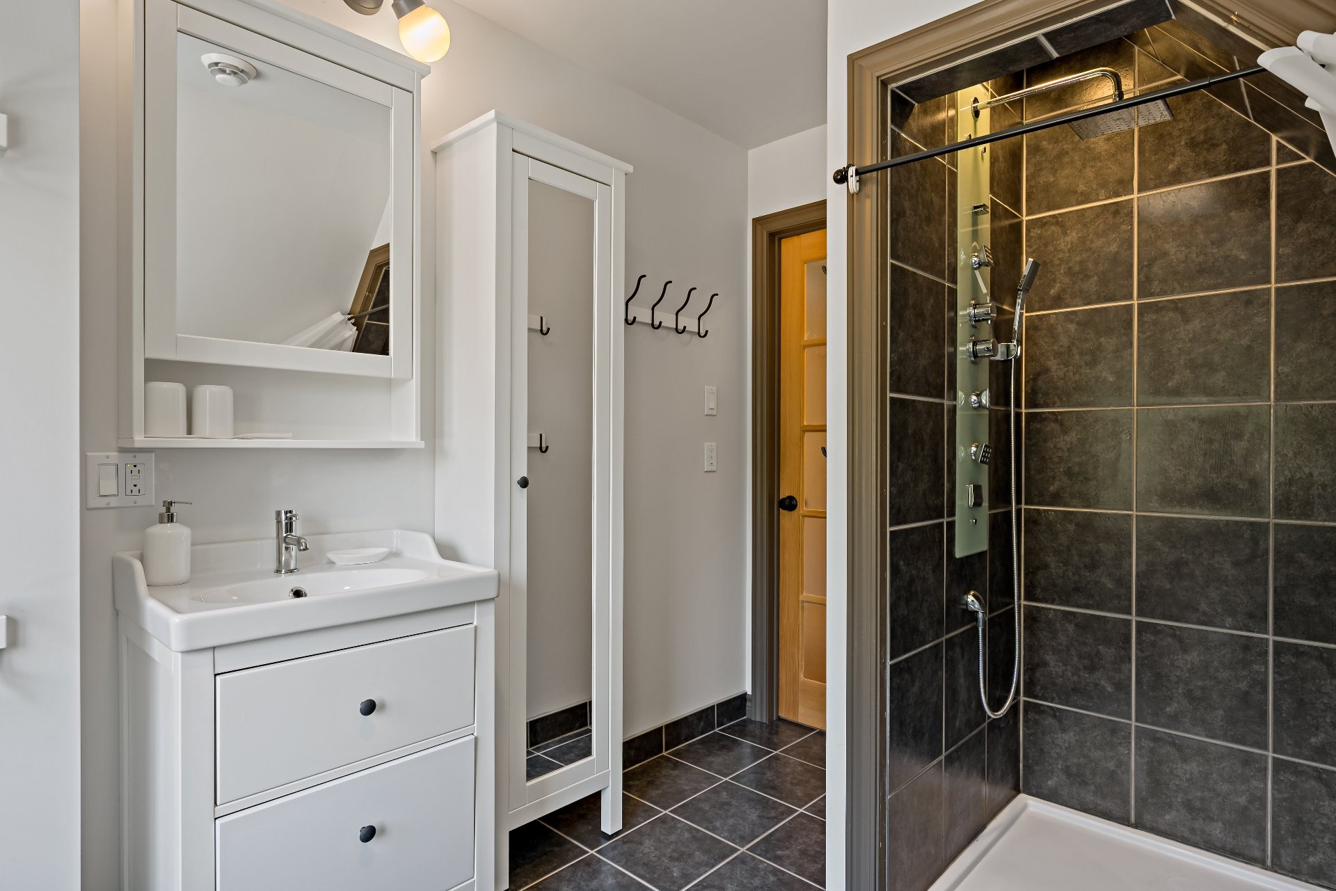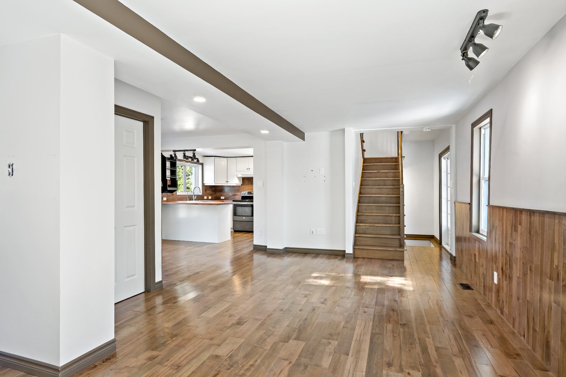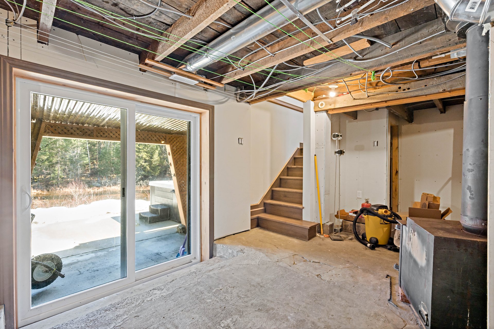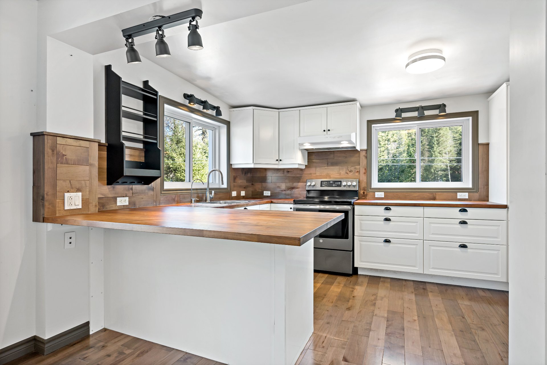 Enchanting 2-bedroom village house with office + 2 bathrooms nestled on the picturesque Petit Train du Nord. This charming home features hardwood floors on 2 levels, an inviting open concept layout, and a delightful creek in the backyard. Just a leisurely 2-minute stroll to the village, 5 minutes to Montagne verte, and a mere 15-minute drive to the renowned Tremblant.
