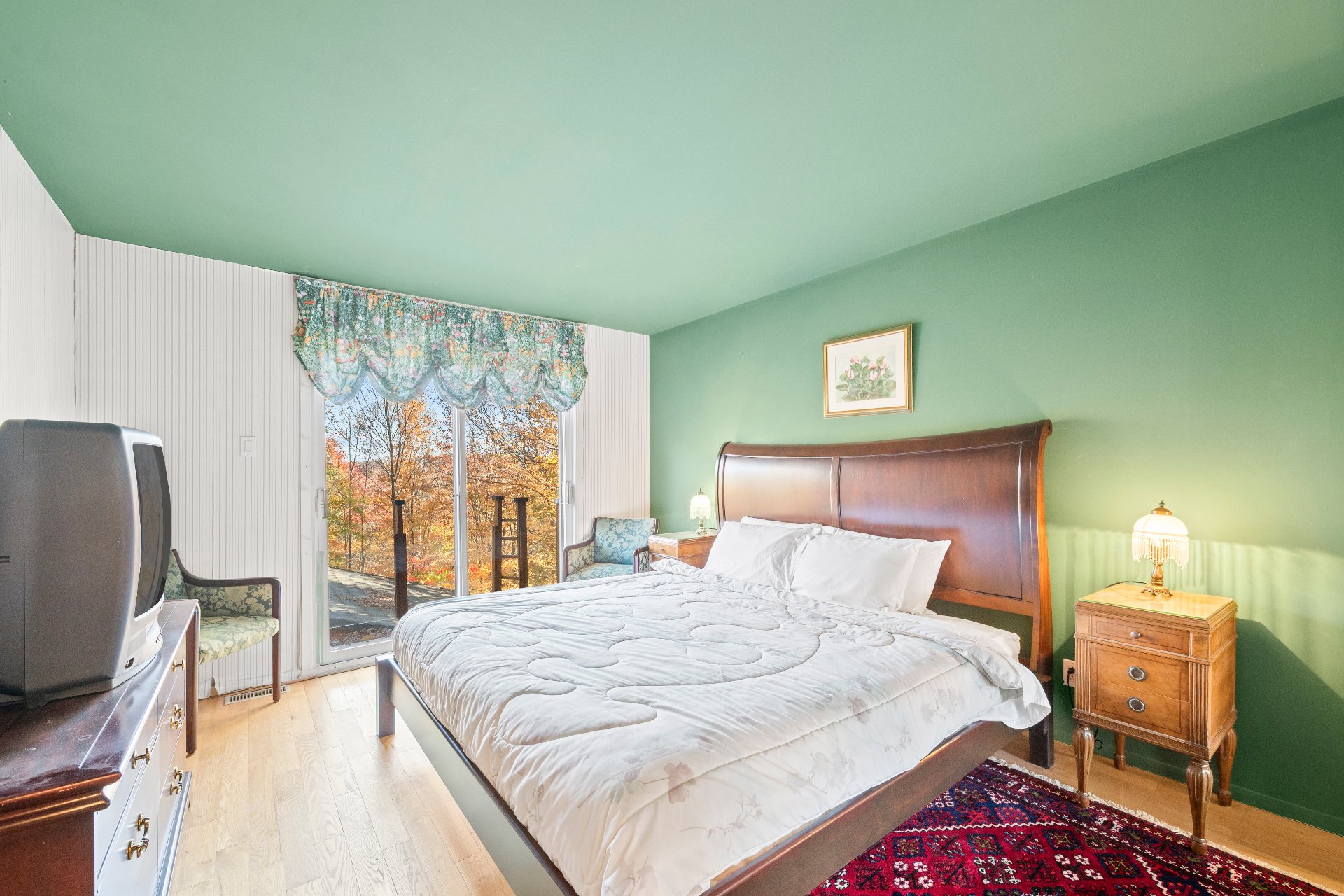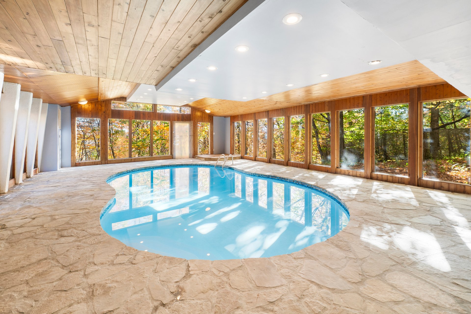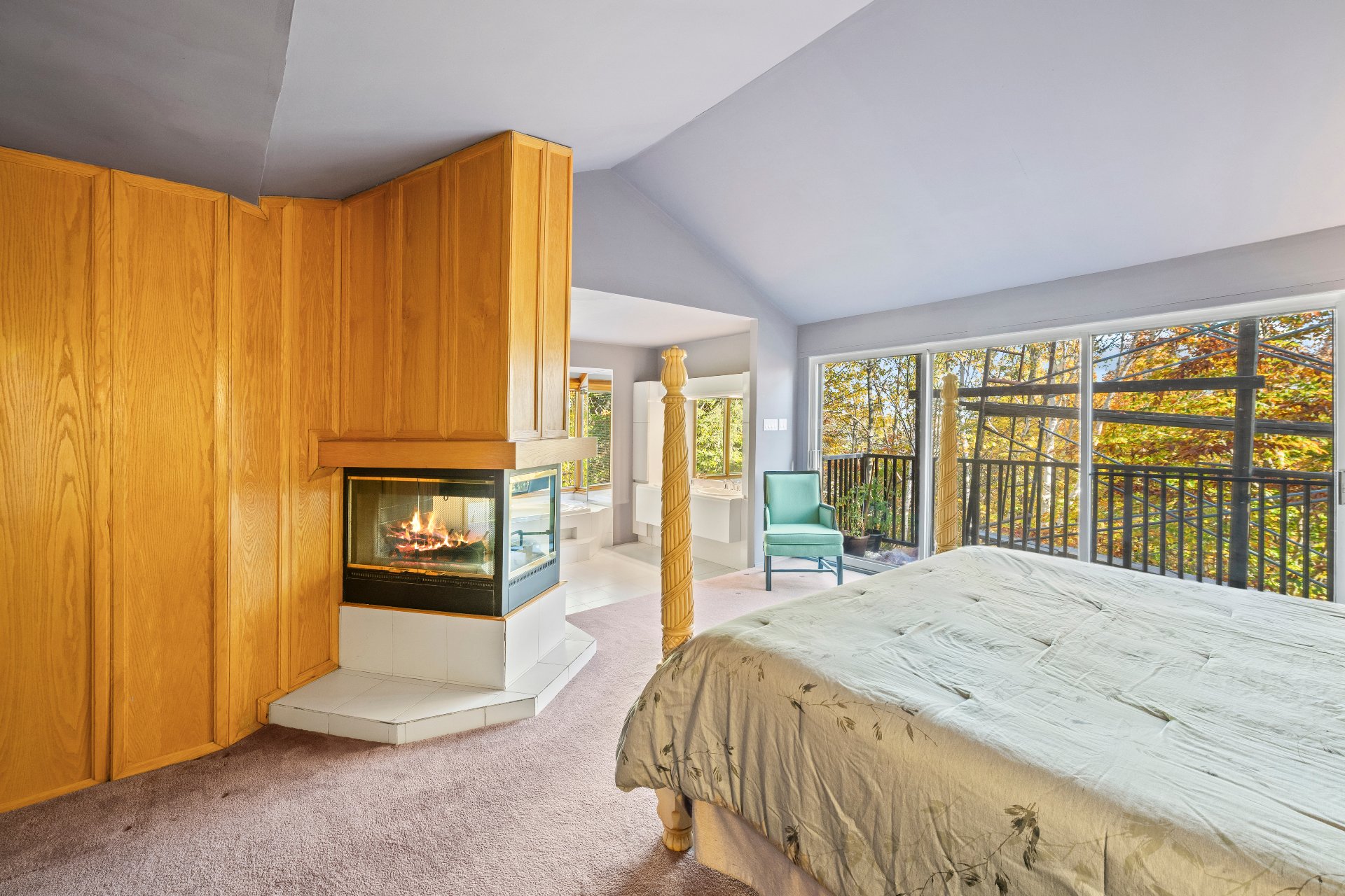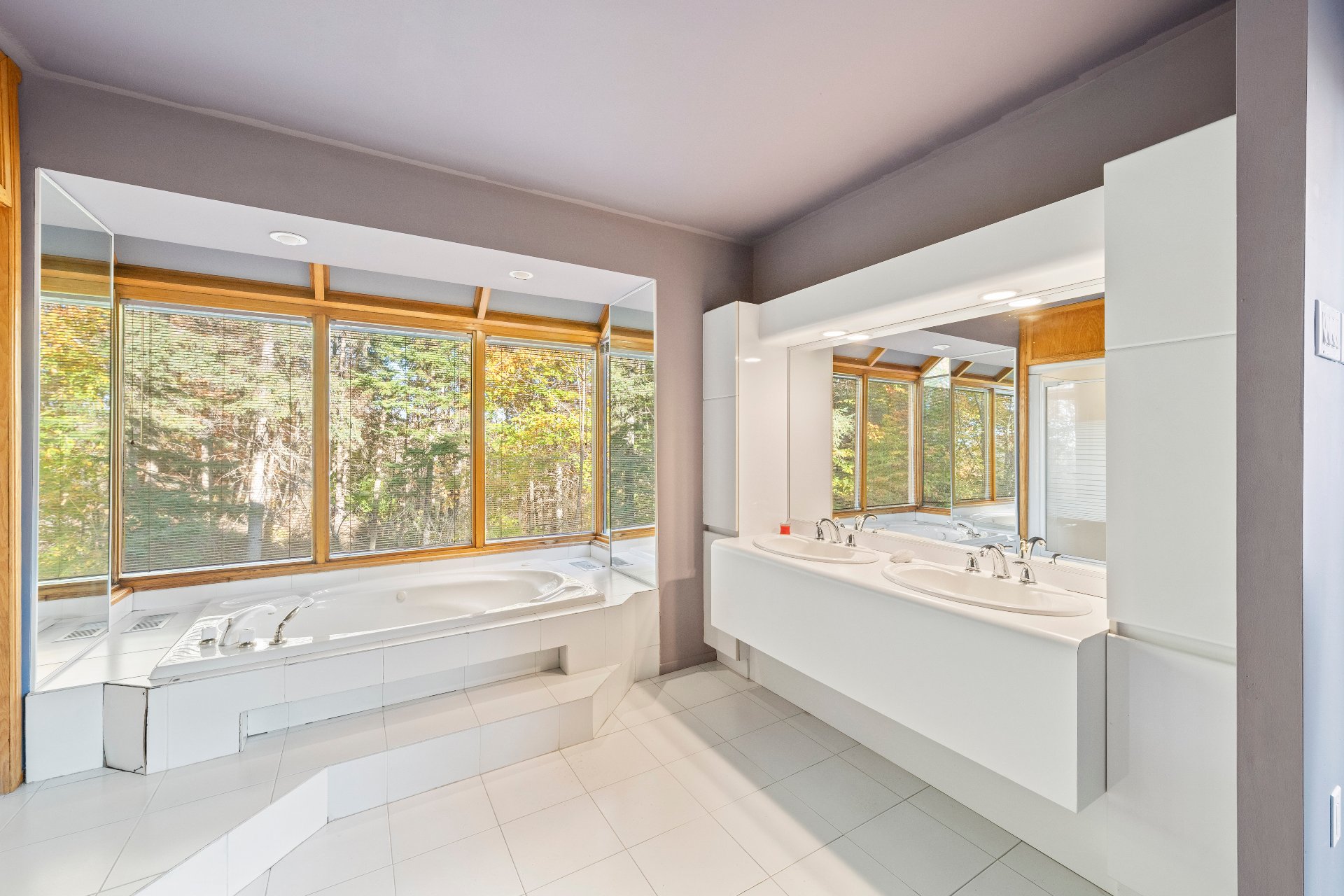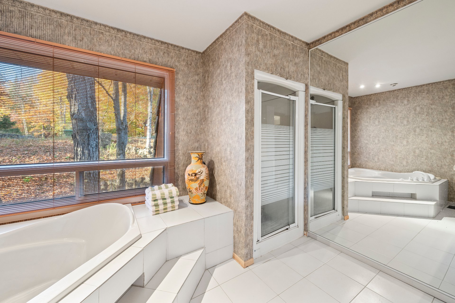 Summit of Mont-Maribou -- one of the most spectacular views in St-Sauveur. Large residence with over 5,000 sq. ft. of living space, featuring an indoor concrete pool, gym, billiard room, TV room, family room, 3 wood-burning fireplaces, 5 bedrooms, 4 bathrooms, and a double garage. A rare opportunity for a renovation project or simply an upgrade that will yield exceptional results and create value far exceeding the investment. Currently peaceful and comfortable with all systems in perfect working order. Direct access to the Portageur hiking trail, connected to the extensive Laurentian network.