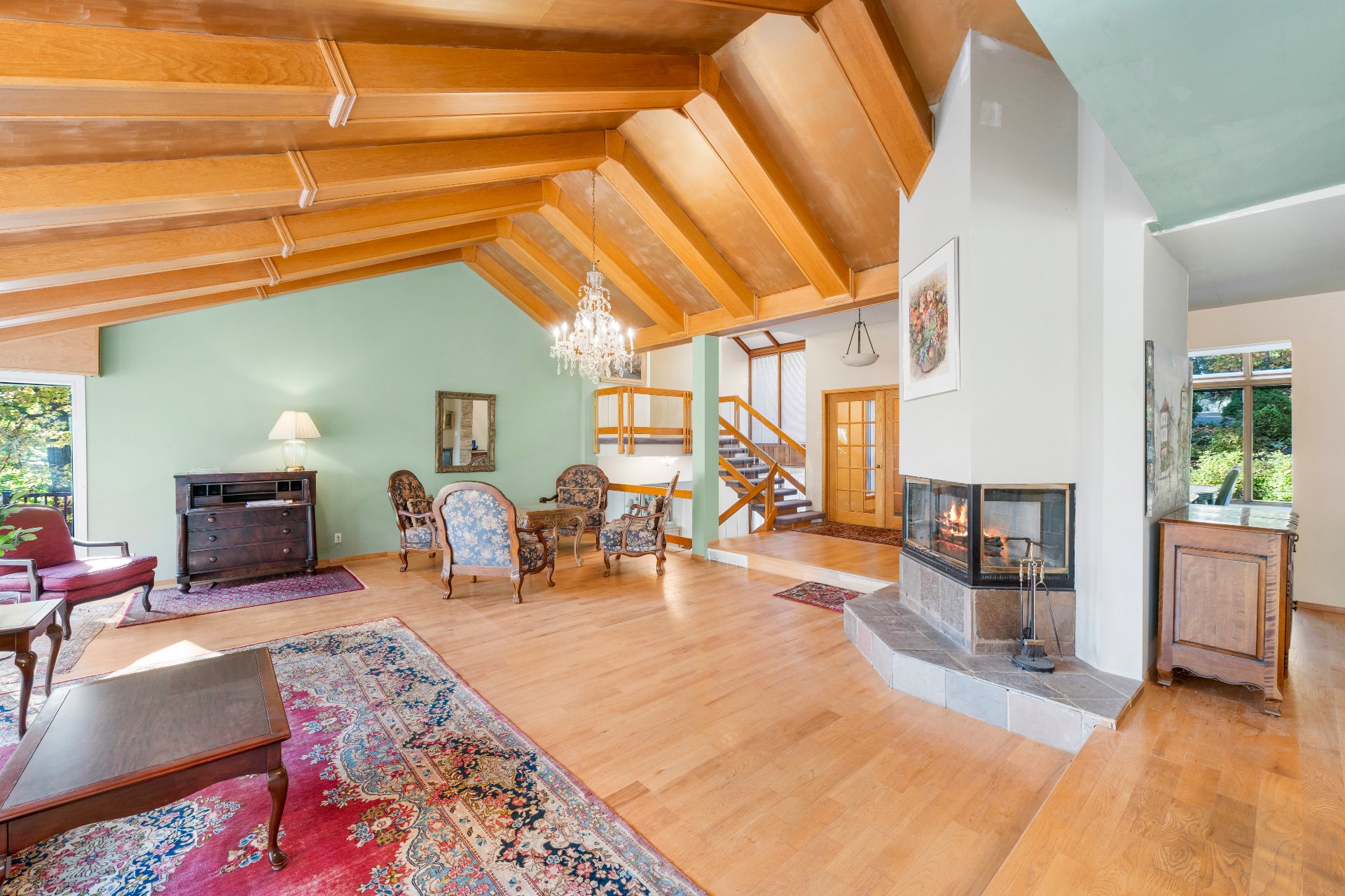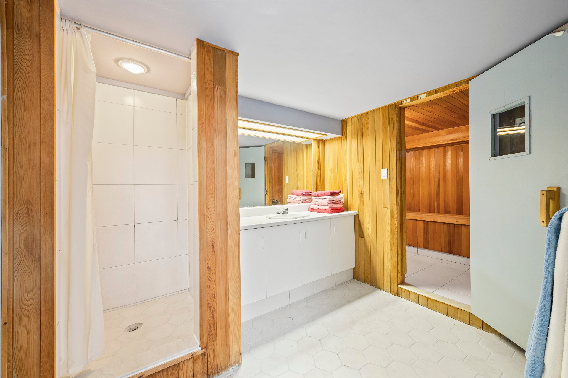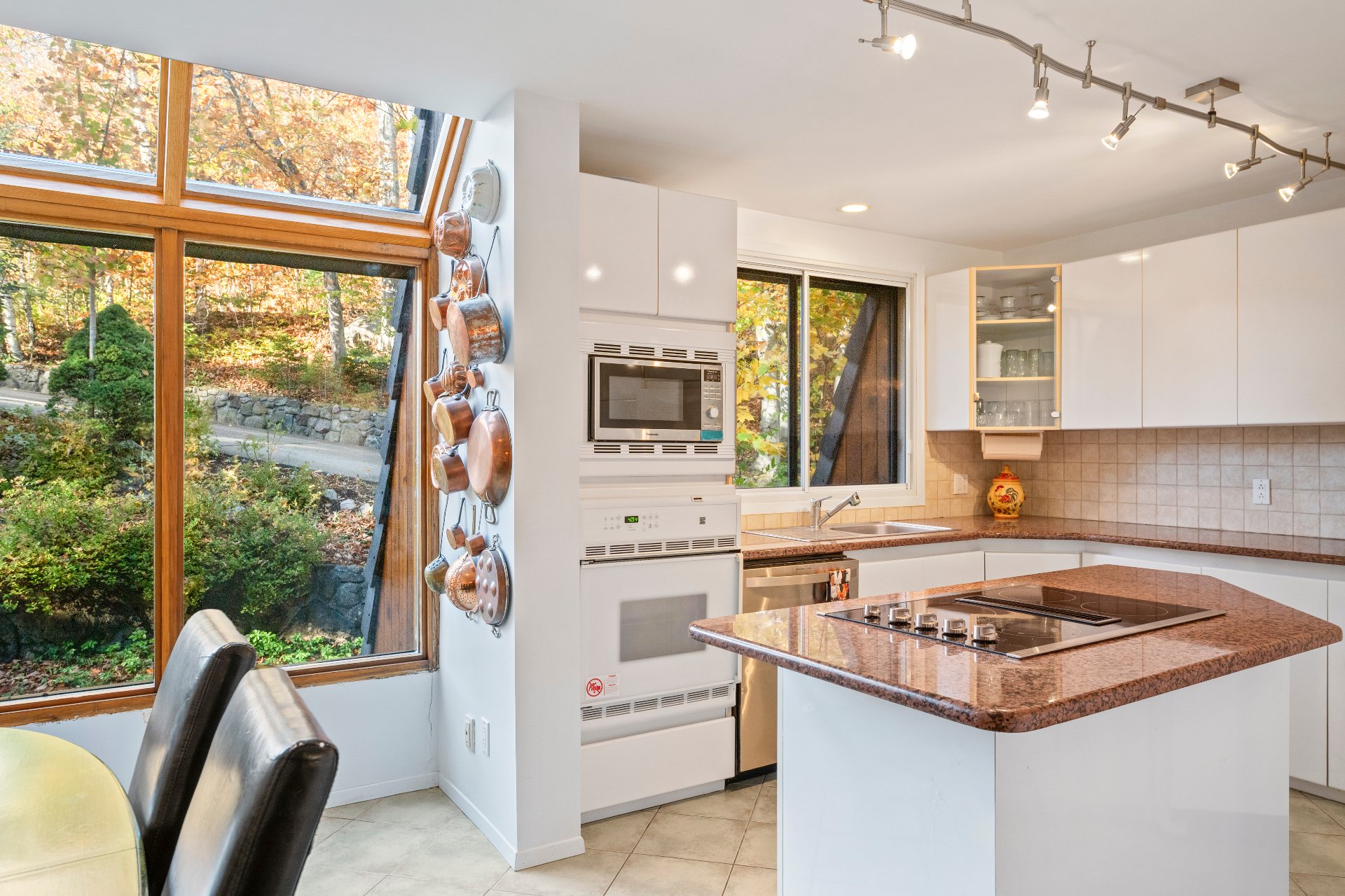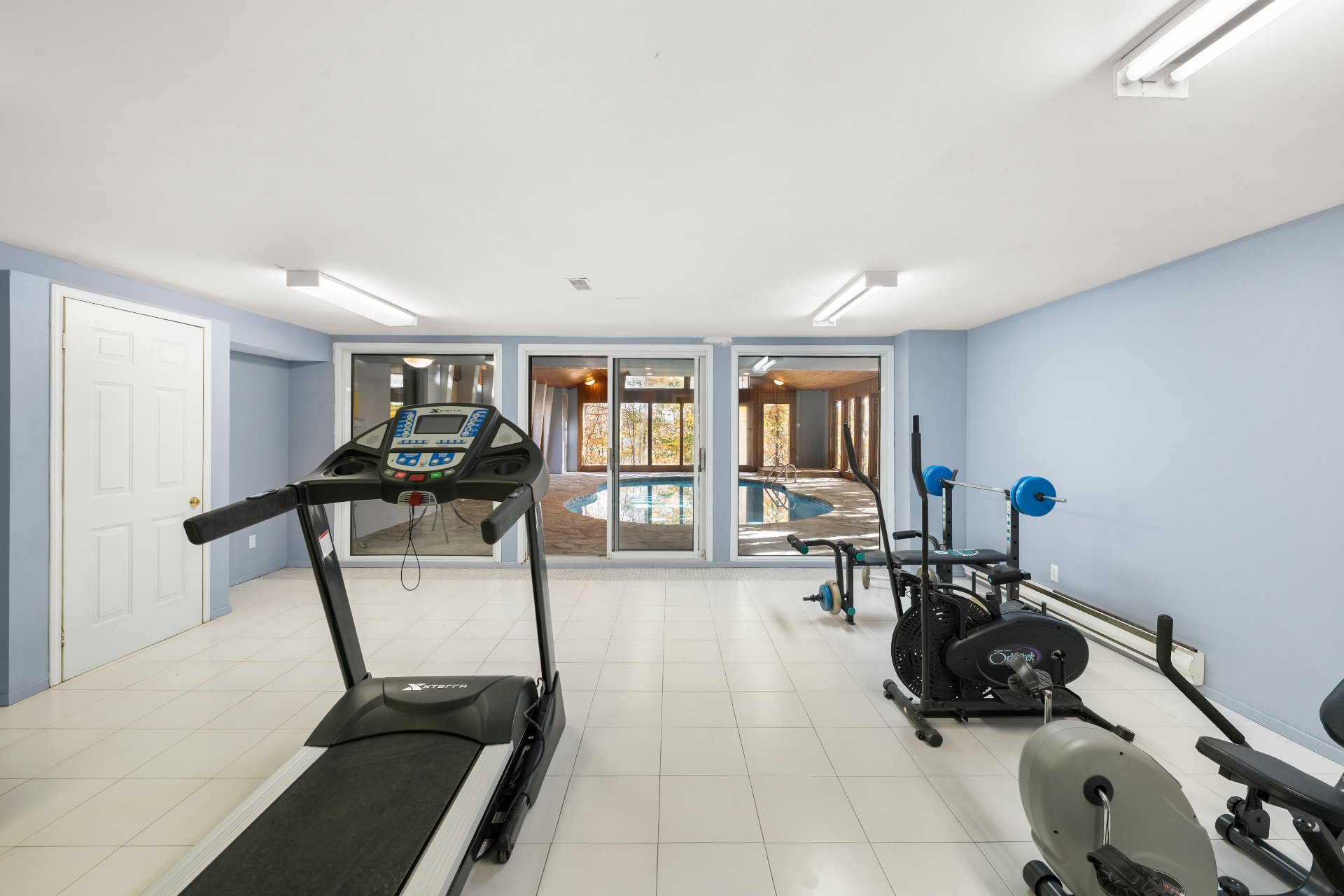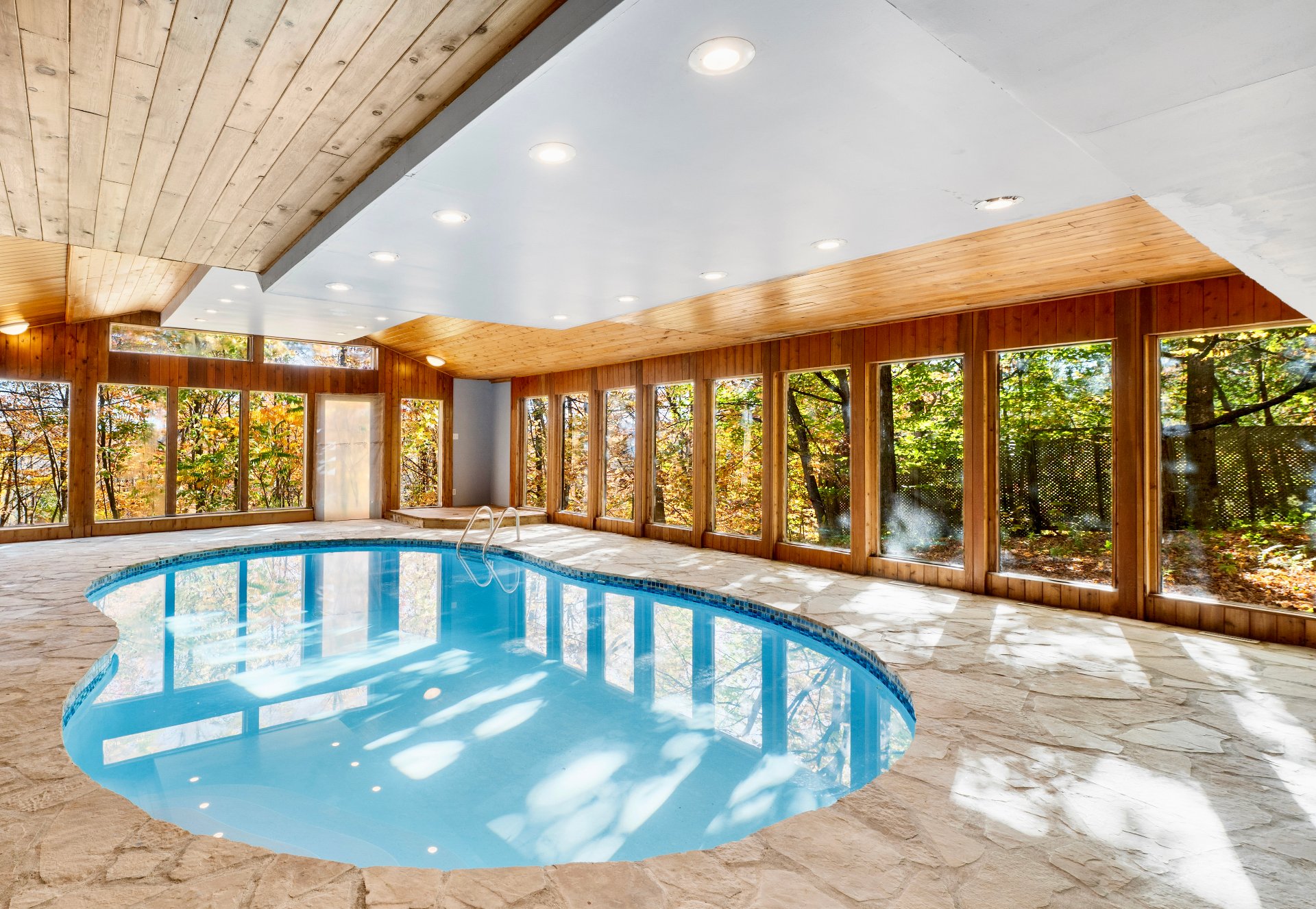 Summit of Mont-Maribou -- one of the most spectacular views in St-Sauveur. Large residence with over 5,000 sq. ft. of living space, featuring an indoor concrete pool, gym, billiard room, TV room, family room, 3 wood-burning fireplaces, 5 bedrooms, 4 bathrooms, and a double garage. A rare opportunity for a renovation project or simply an upgrade that will yield exceptional results and create value far exceeding the investment. Currently peaceful and comfortable with all systems in perfect working order. Direct access to the Portageur hiking trail, connected to the extensive Laurentian network.