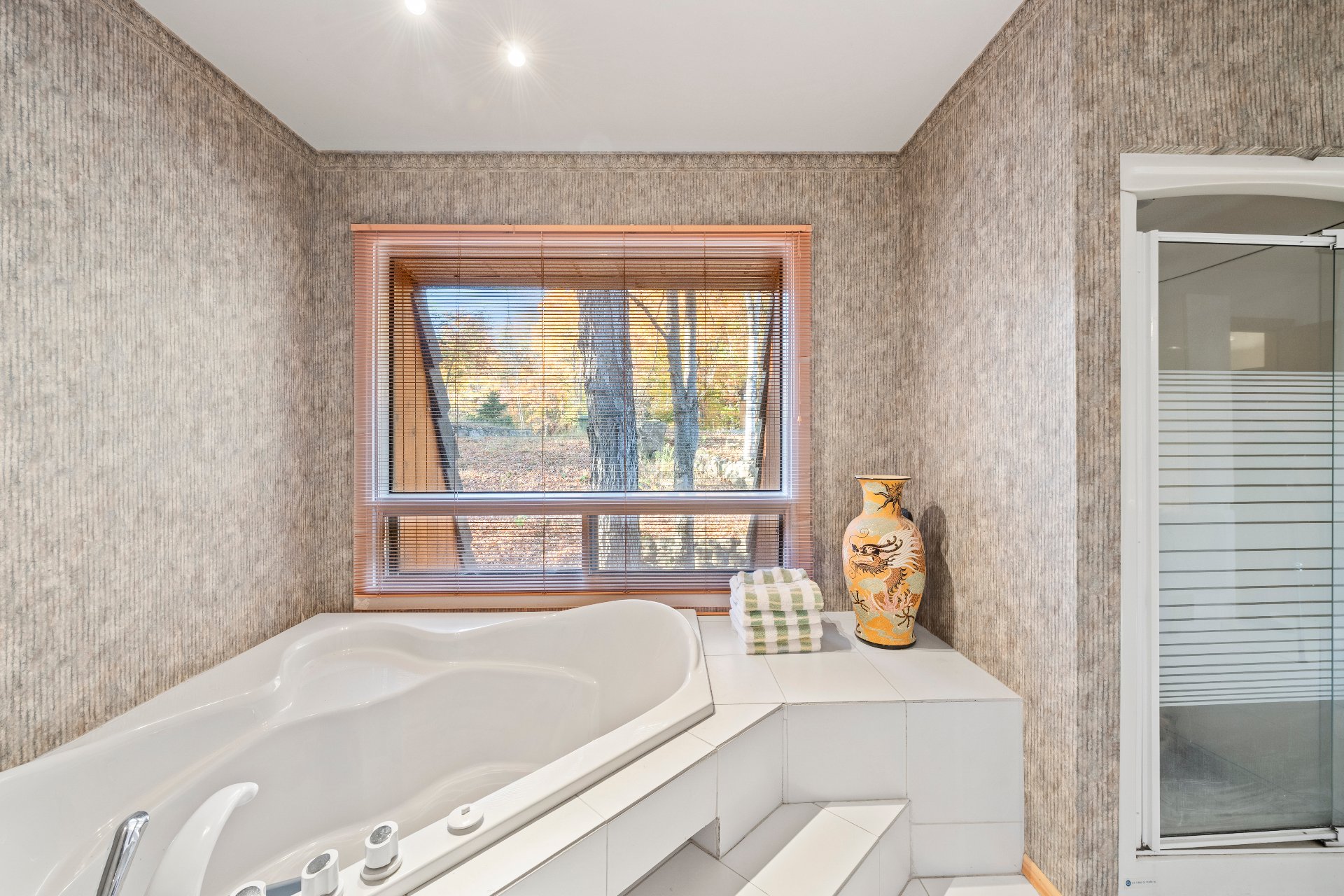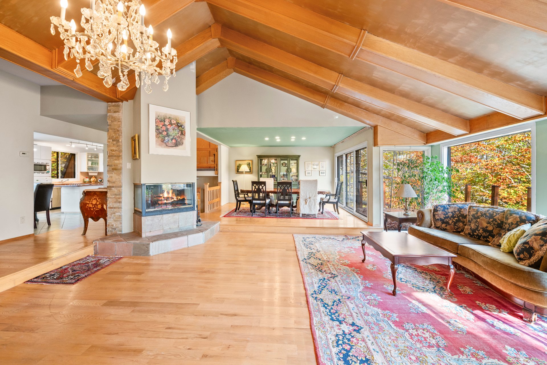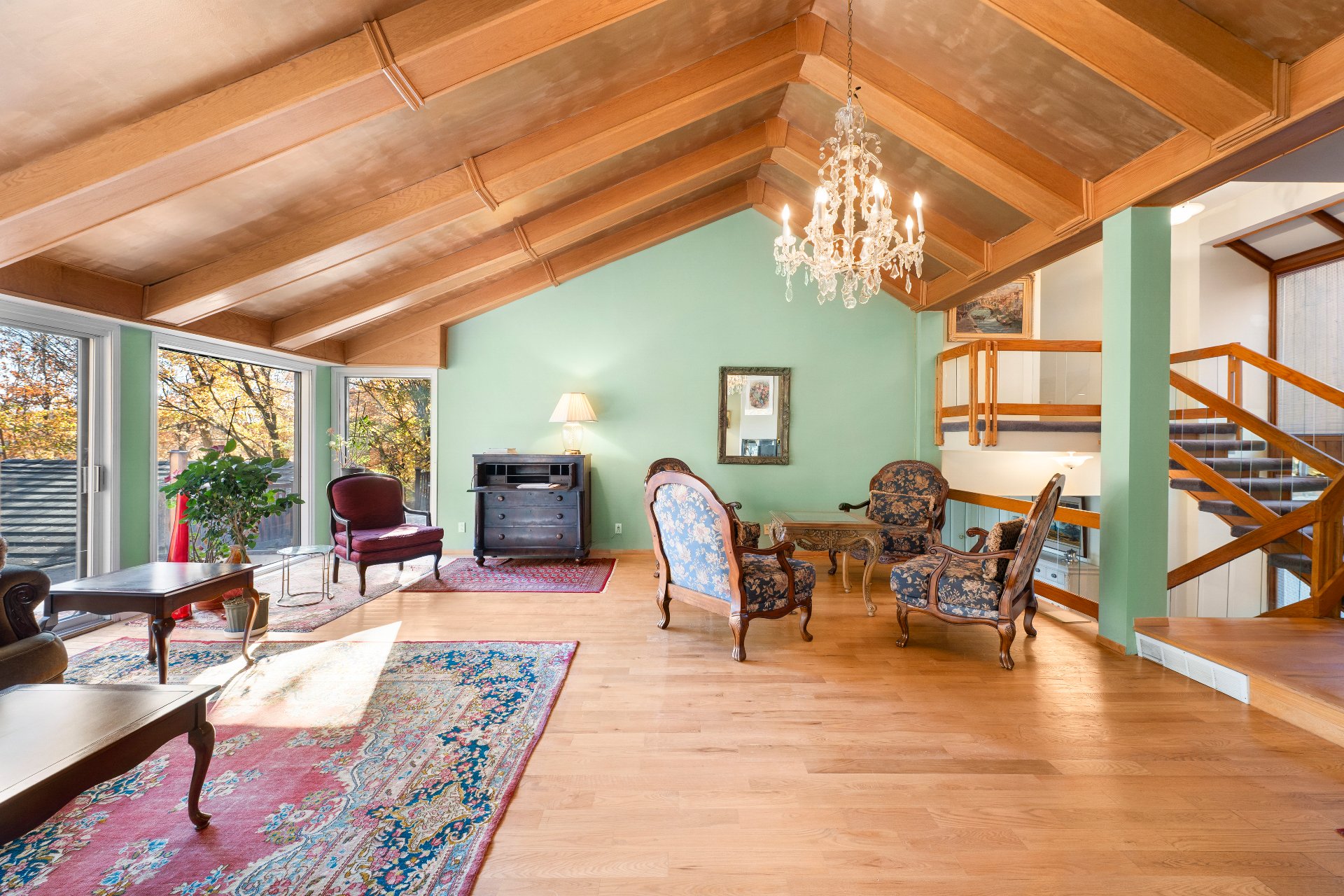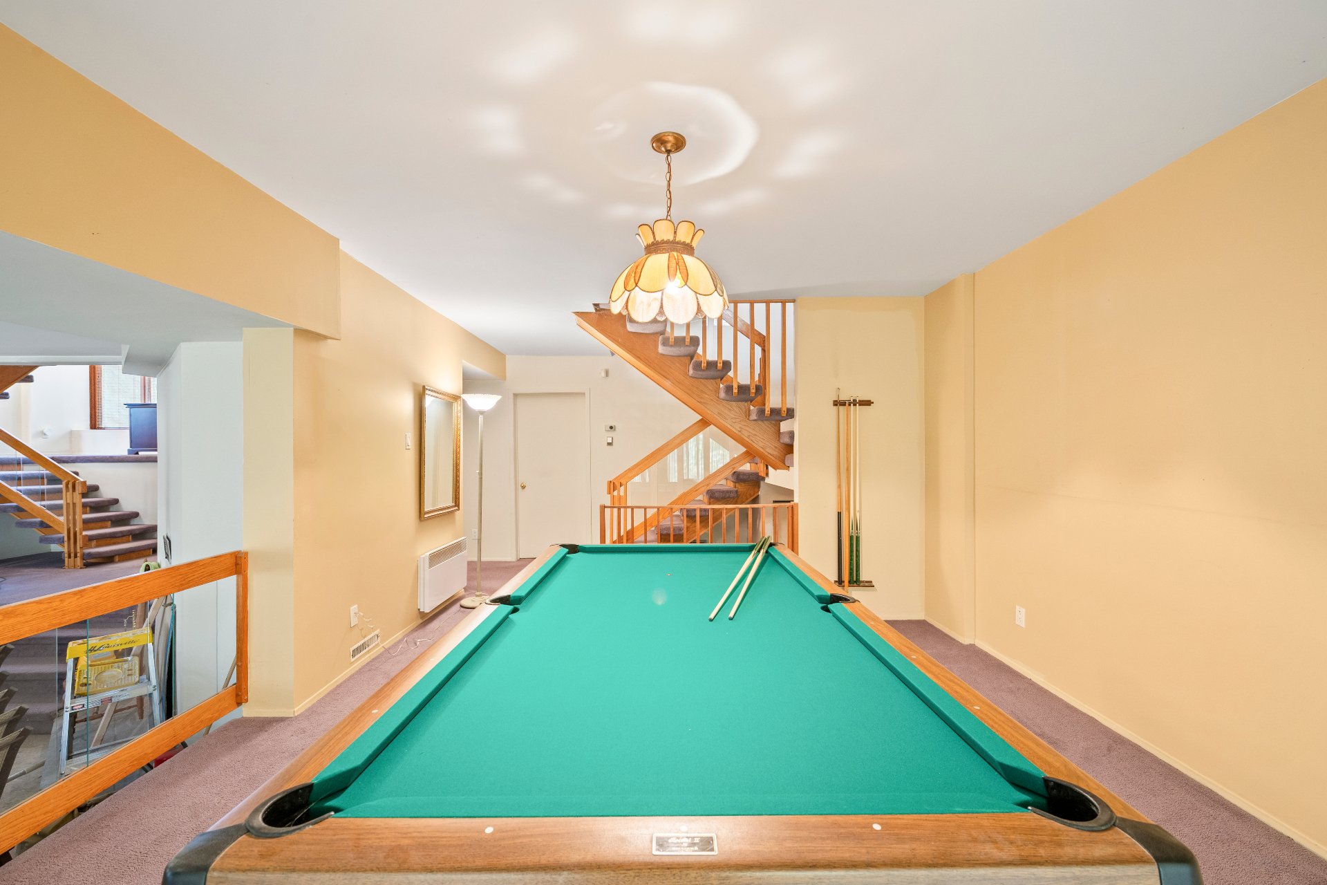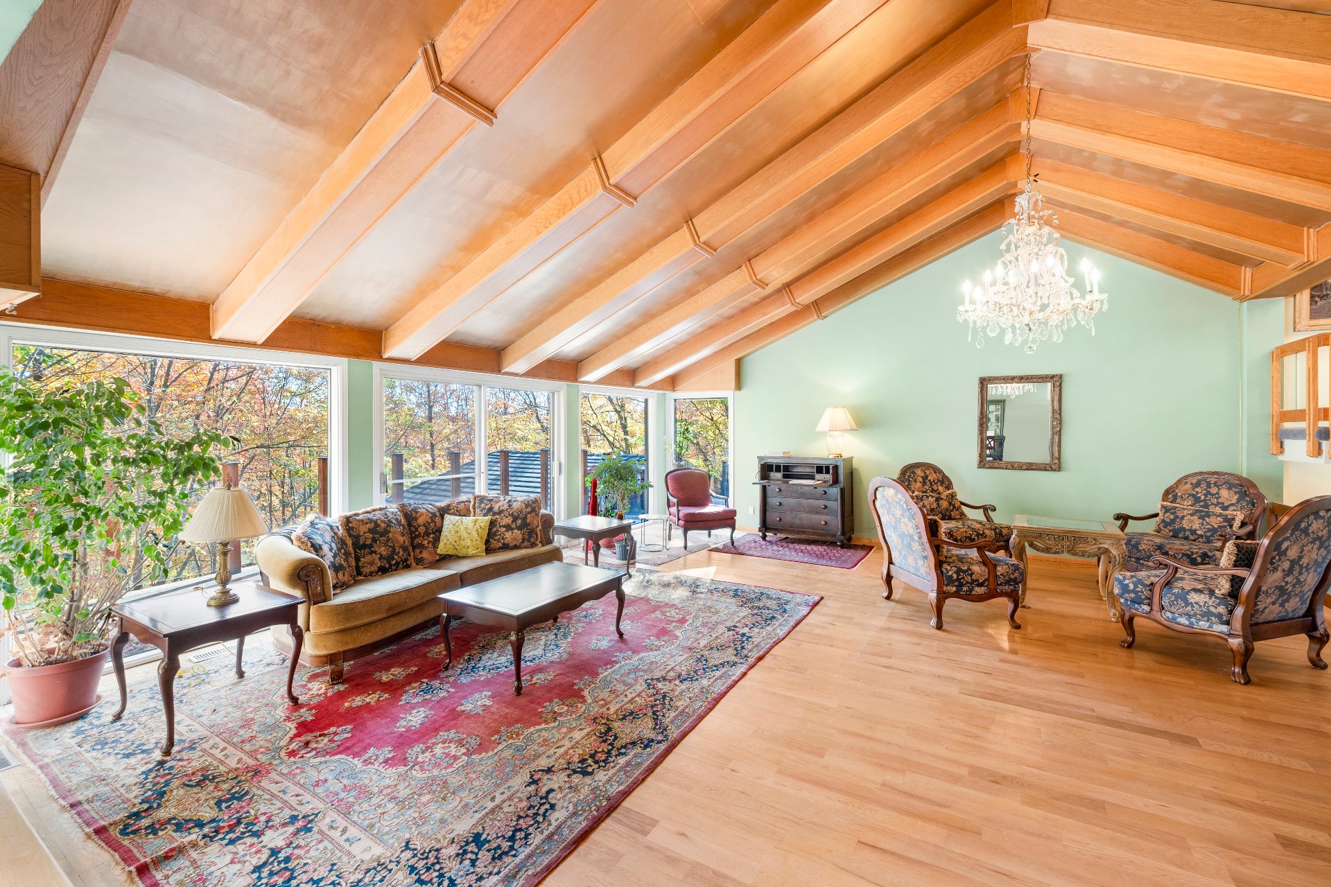 Summit of Mont-Maribou -- one of the most spectacular views in St-Sauveur. Large residence with over 5,000 sq. ft. of living space, featuring an indoor concrete pool, gym, billiard room, TV room, family room, 3 wood-burning fireplaces, 5 bedrooms, 4 bathrooms, and a double garage. A rare opportunity for a renovation project or simply an upgrade that will yield exceptional results and create value far exceeding the investment. Currently peaceful and comfortable with all systems in perfect working order. Direct access to the Portageur hiking trail, connected to the extensive Laurentian network.