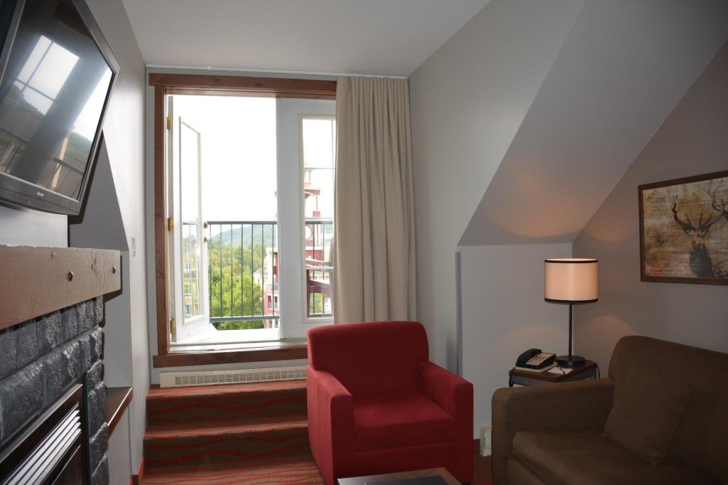 TOUR-DES-VOYAGEURS II - One-bedroom condo-hotel featuring a well-appointed living space with a full kitchen, cozy dining area, and gas fireplace. The private balcony lets you fully enjoy the unique atmosphere of Tremblant. Ideally located at the entrance of the pedestrian village, just steps away from the ski slopes and attractions, it combines comfort with a prime location. Owners enjoy underground parking, a private locker, fitness room, spa, sauna and a spacious terrace with breathtaking views of events. Rental program provides income to the owner.