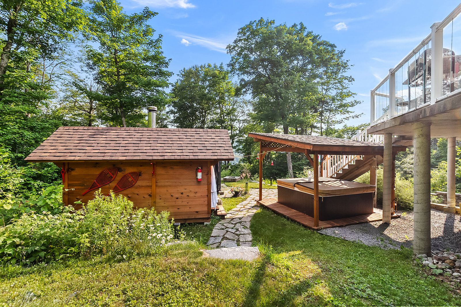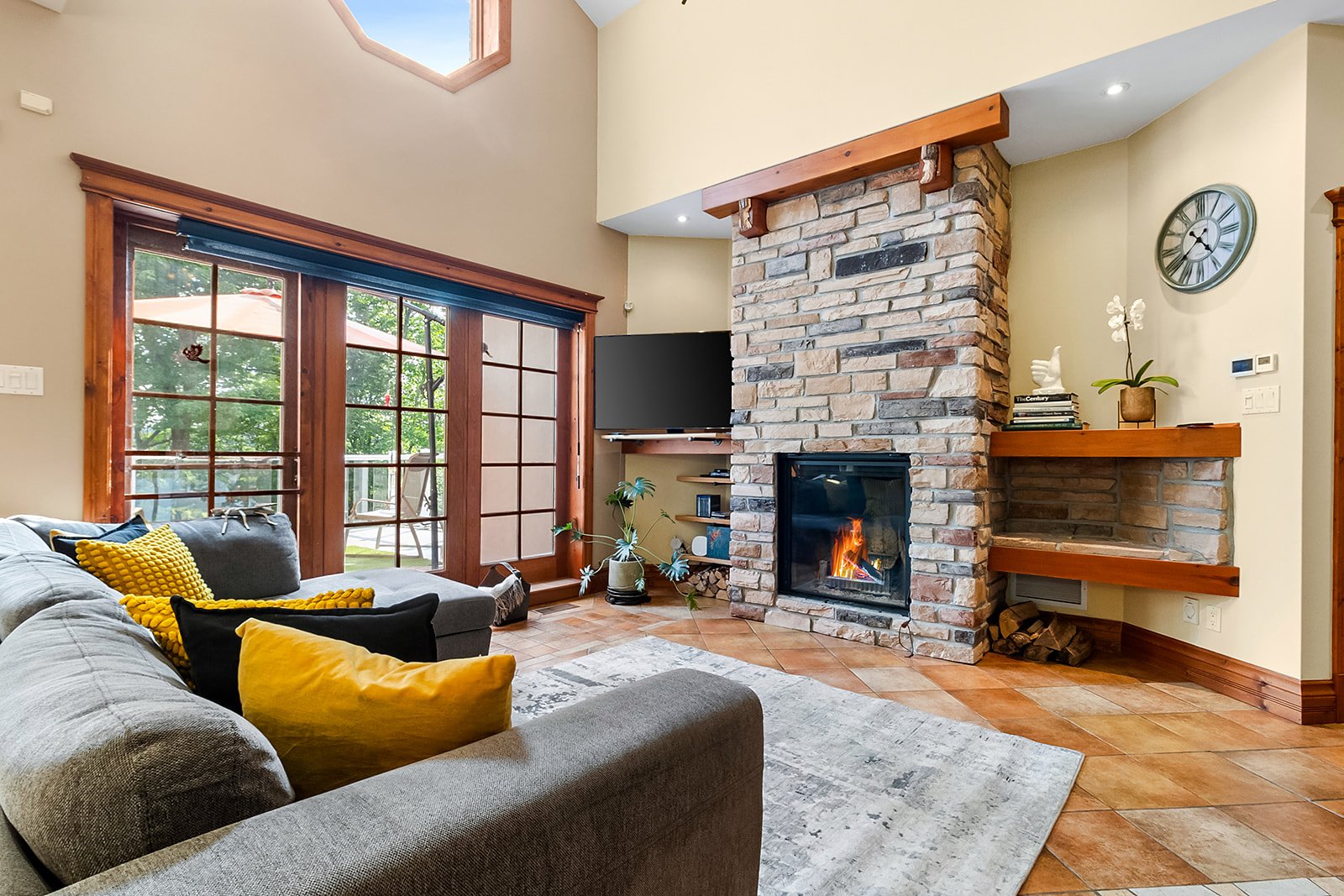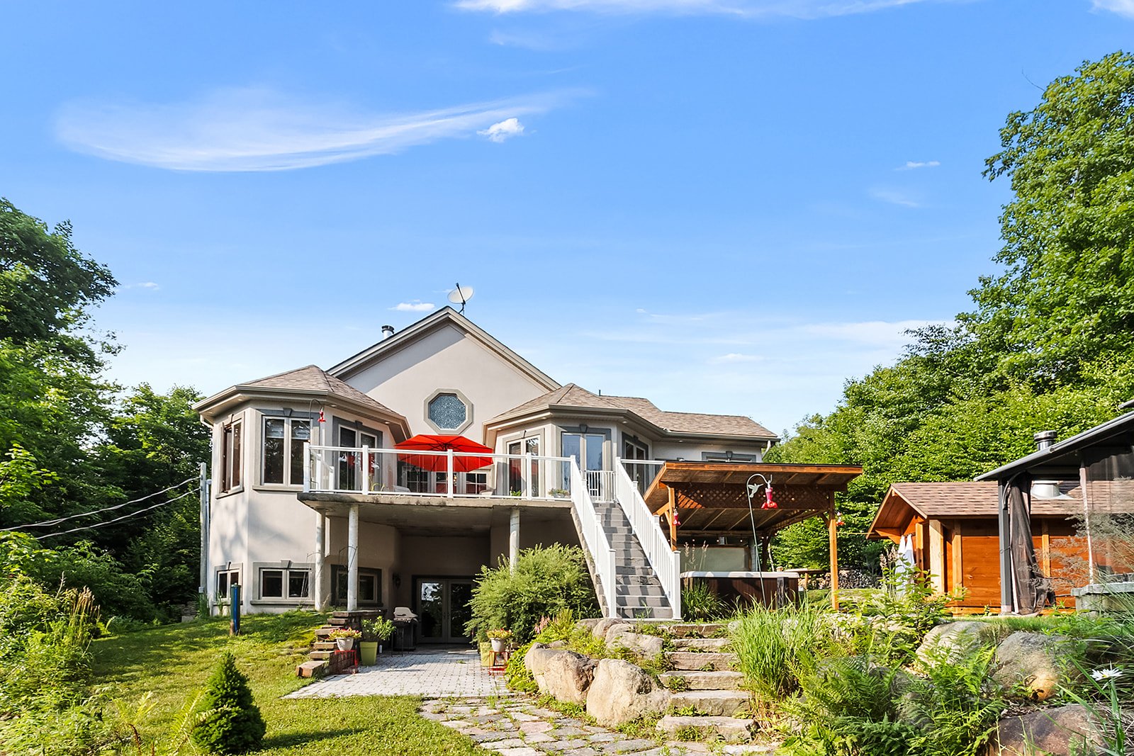 Discover this expansive property with generous living spaces, offering breathtaking lake views and access to Lac Quenouille, a sought-after navigable lake. Set on a large, private lot, it provides a peaceful and highly desirable living environment. Designed for absolute comfort, the home features heated floors throughout, an attached double garage, and a fully finished basement with 9-foot ceilings and a game room. Abundant windows flood the interior with natural light. A private spa and sauna complete this exceptional residence, conveniently located near essential services and just 30 minutes from Mont-Tremblant and Mont-Garceau.