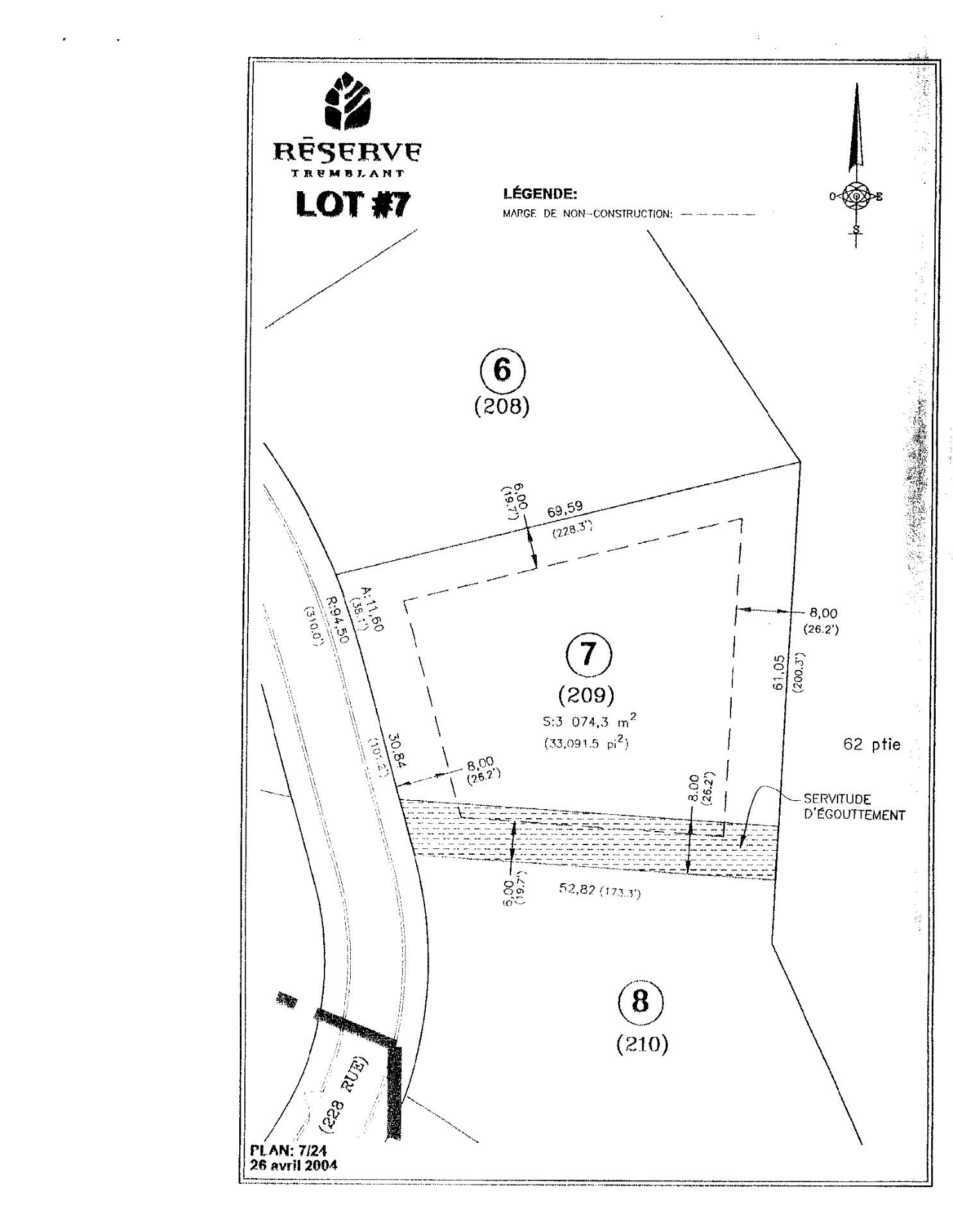 ** La Reserve ** Vacant lot with amazing views in the magnificent setting of Le Géant golf course. The development plan complements and enhances the natural environment's outstanding beauty. A tranquil lifestyle awaits you with beautiful Mont-Tremblant mountain and lake close by. This distinctive lot #7 is set on a cul-de-sac directly on the golf course, one can easily imagine building the home of his dreams. And no need to drive around in your car, you can take the shuttle service to go to the resort!