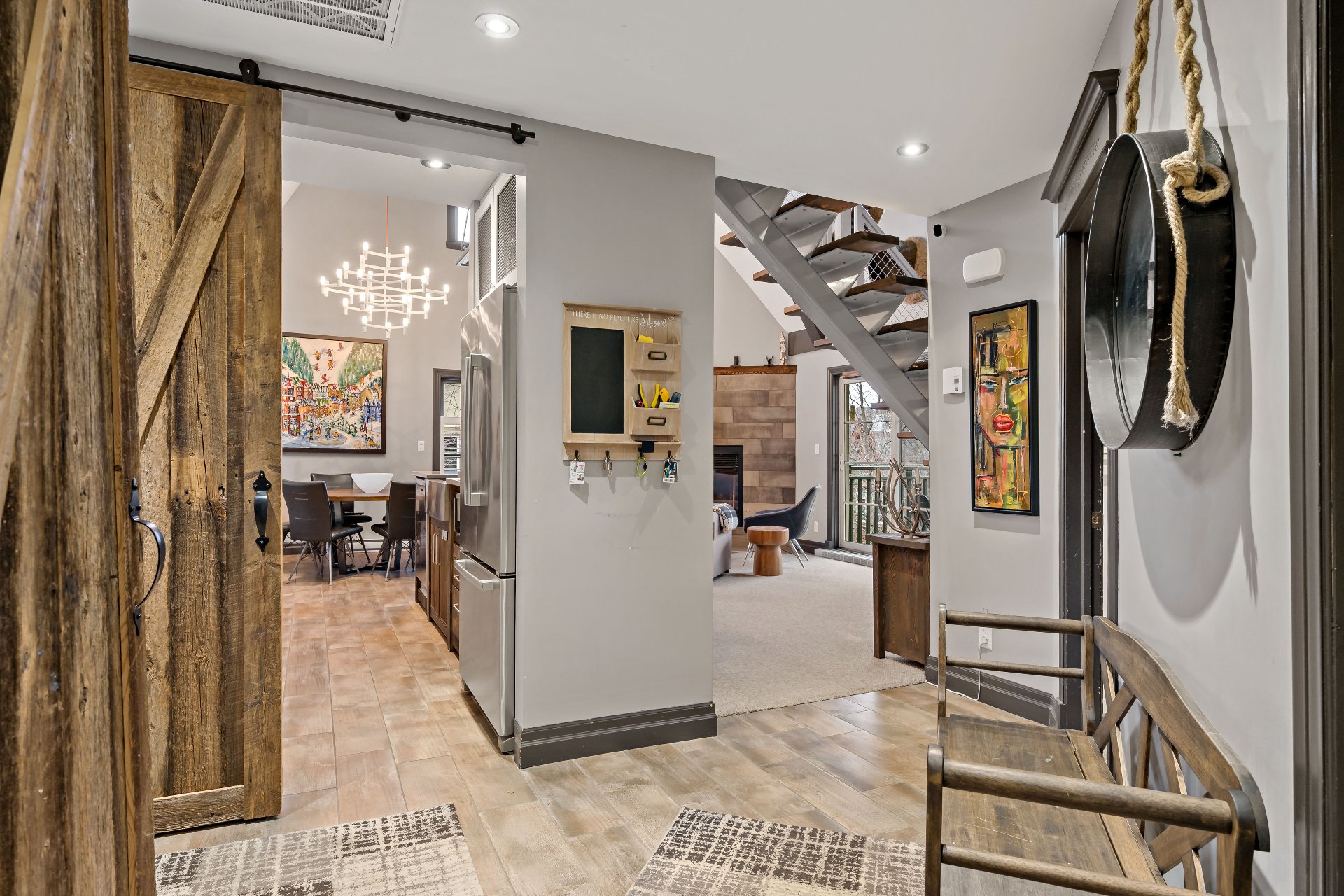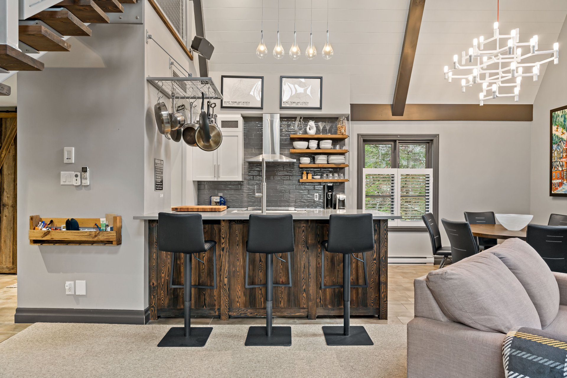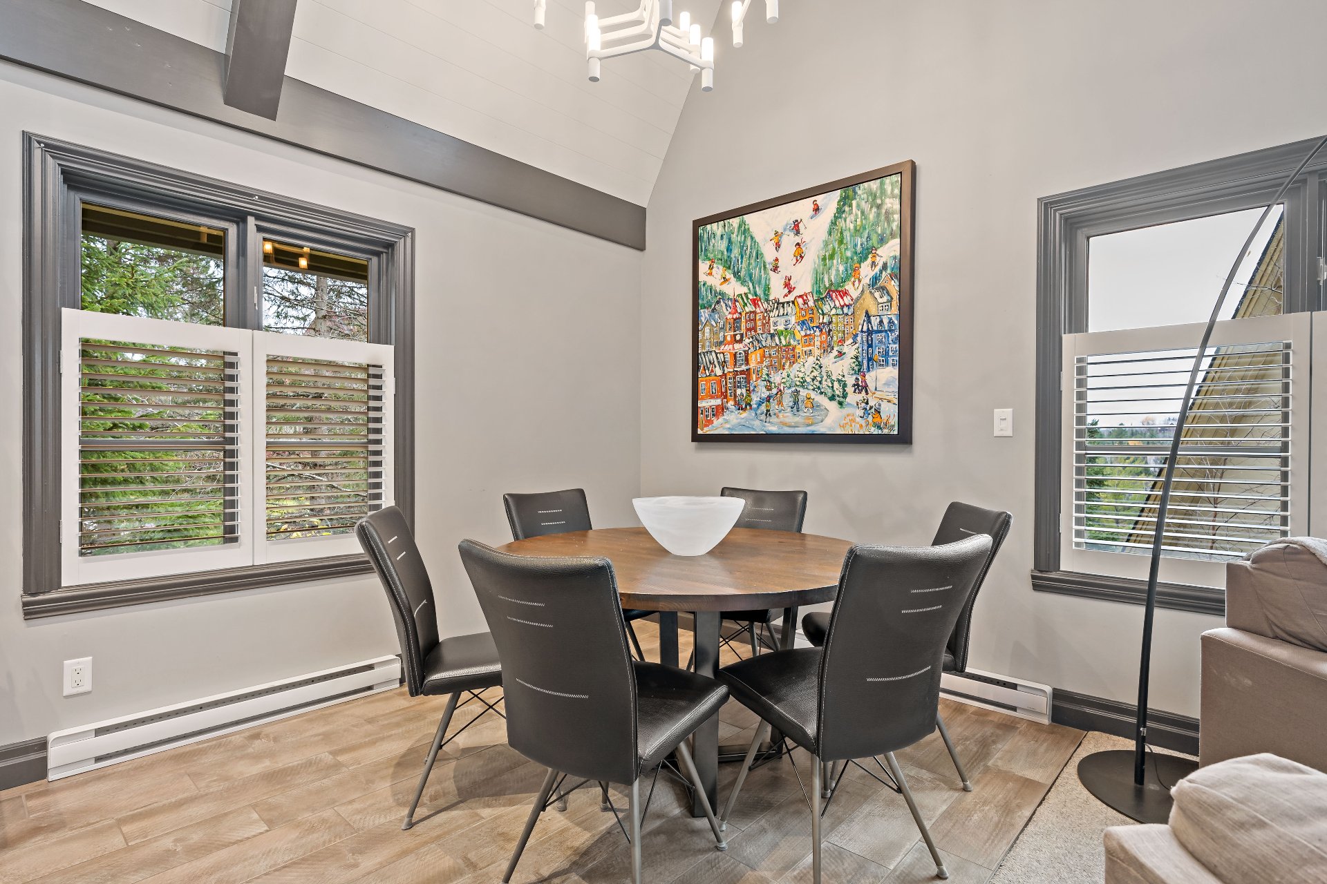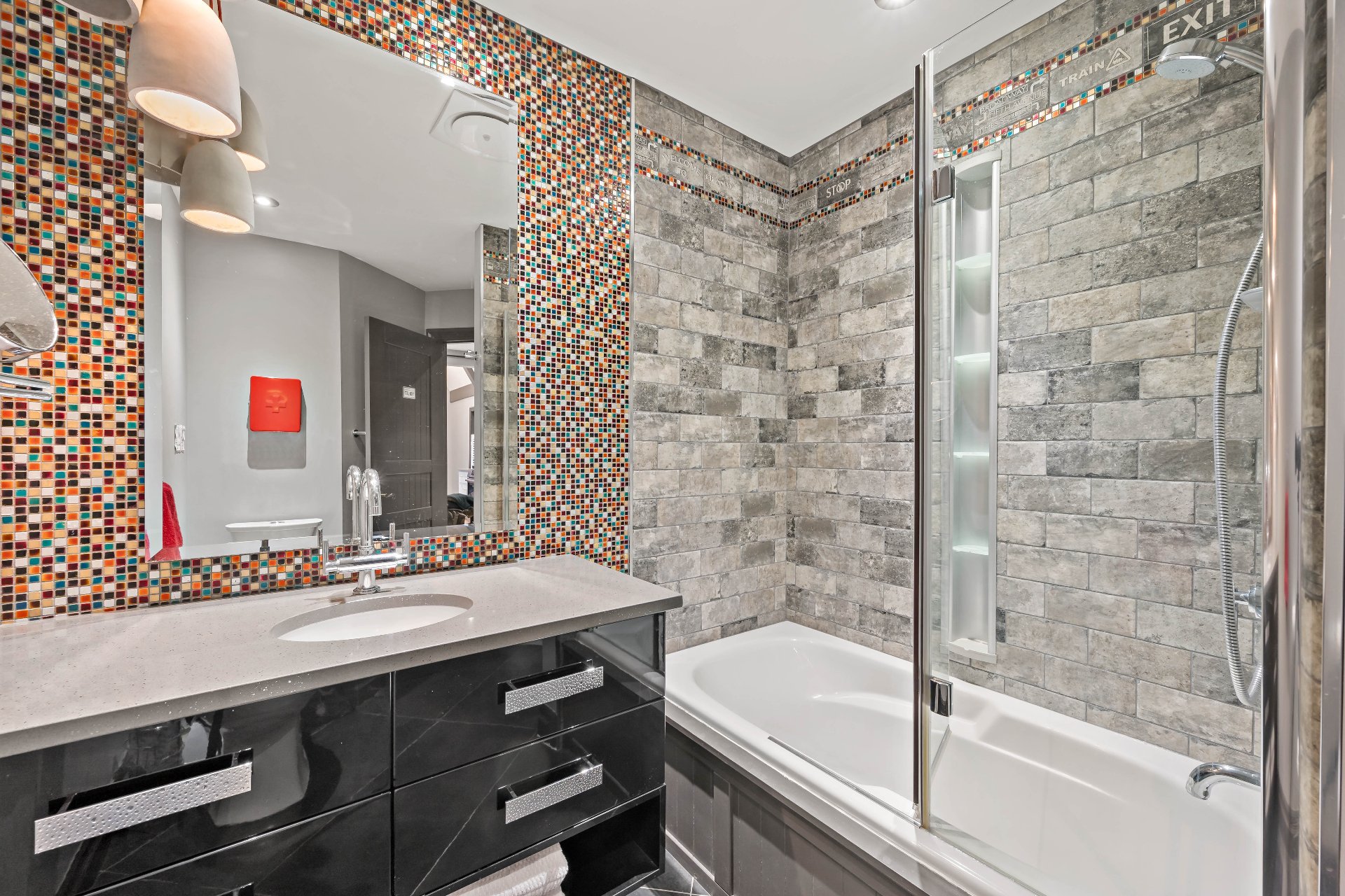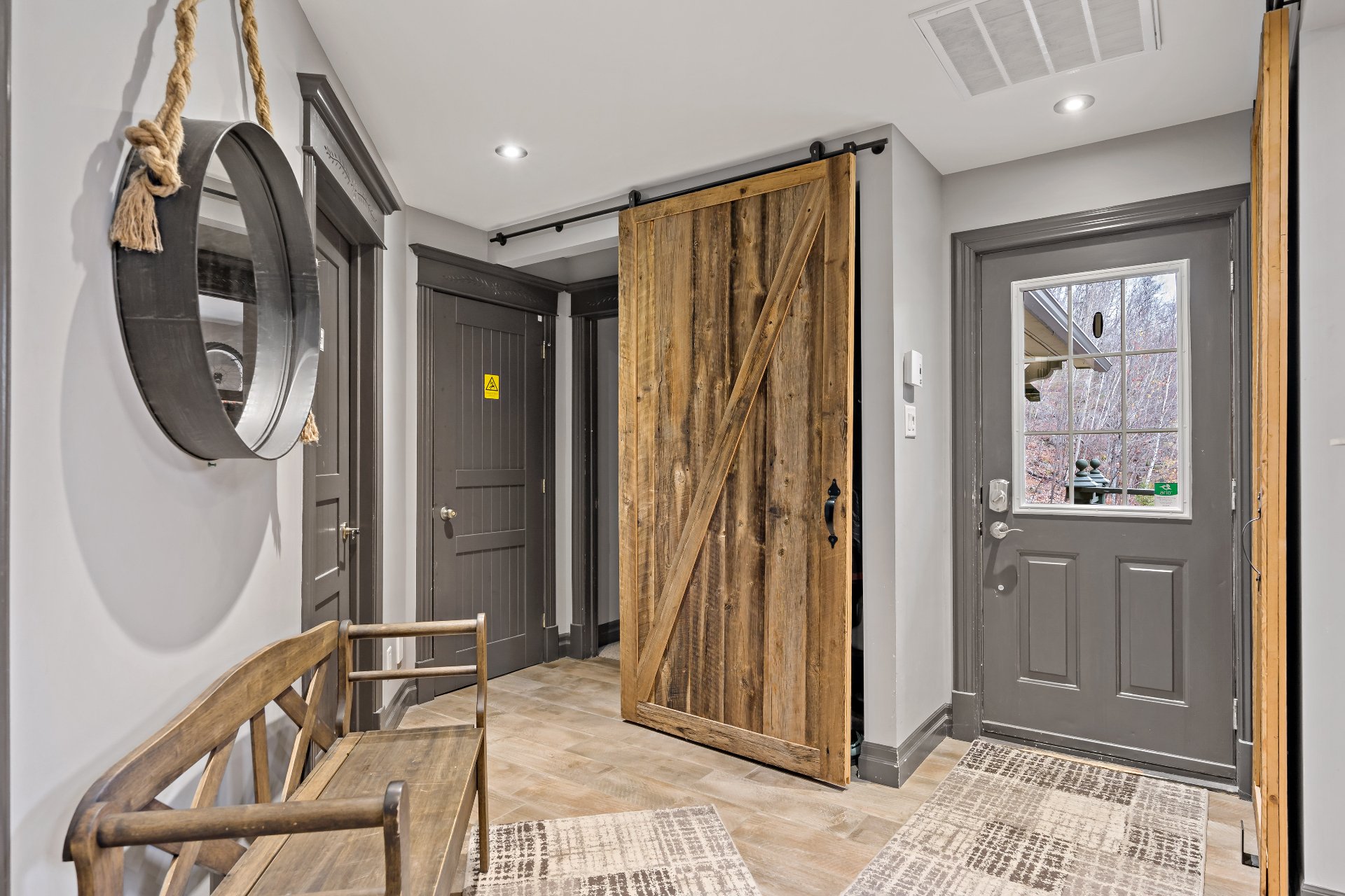 Plateau sur la Montagne | Beautiful corner unit offering incredible ski-in/ski-out access and a large private balcony overlooking the woods, pond, and shared in-ground pool. Stunning modern condo with cathedral ceilings, wood-burning fireplace, heated floors, 3 bedrooms + family room that can easily serve as a fourth bedroom. Peaceful environment, just steps away from the vibrant pedestrian village and its countless shops and restaurants. Unbeatable location, short-term rentals allowed! Take possession now and enjoy the ski season!