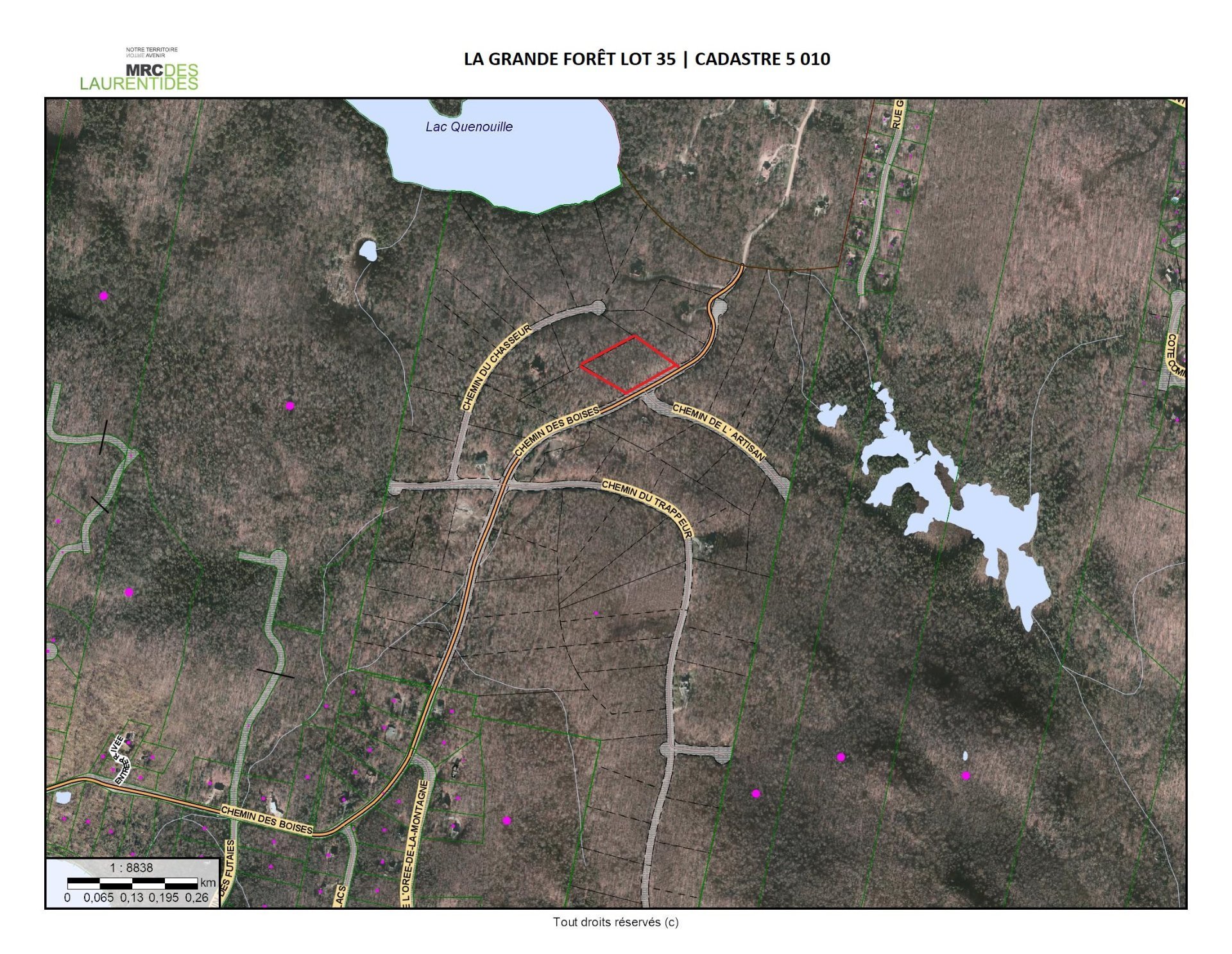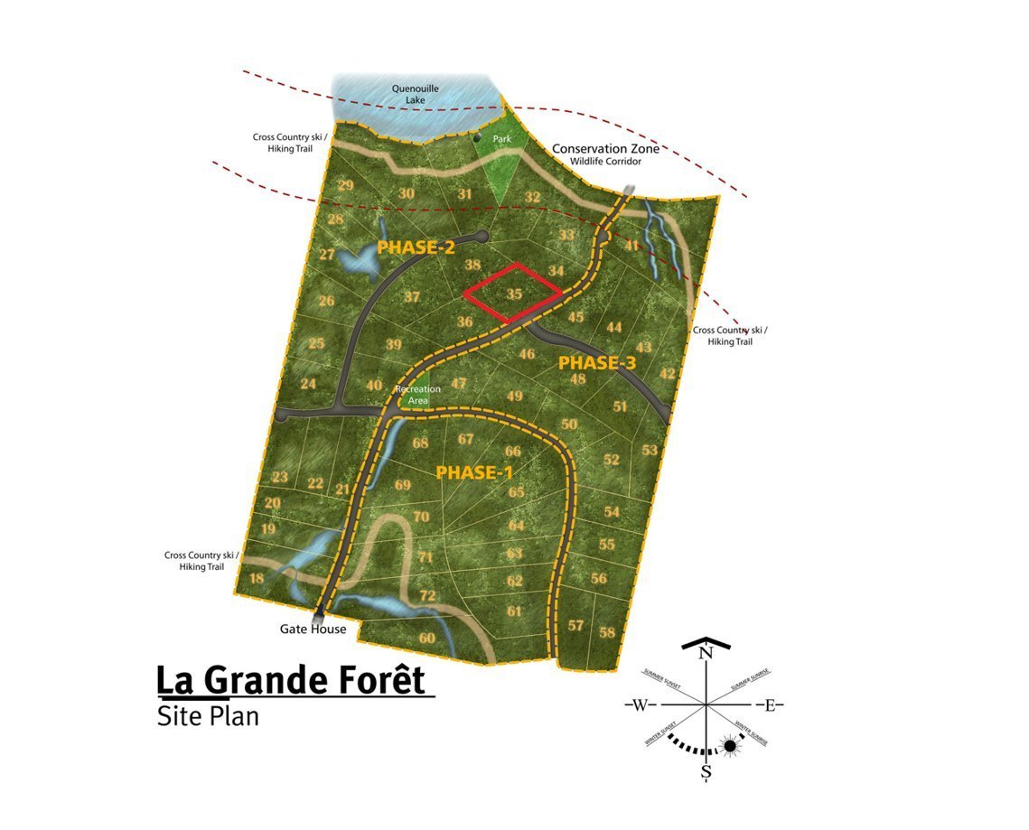 La Grande Forêt Lot 35 ** Build Your Haven in La Grande Forêt ** Embrace the beauty of nearly 2.5 acres of land in a gated community, ideal for crafting your perfect abode. This Lot is located just 7 minutes from Station Mont-Tremblant and its charming pedestrian village and surrounded by 7 top-notch golf courses. La Grande Forêt stands as one of the few residential areas permitting short-term rentals, all within this natural haven. A short walk away lies Tremblant Village, many lakes, restaurants, shops, hotels, and a multitude of outdoor activities such as hiking, biking, rafting, swimming, horseback riding, canoeing, and more.