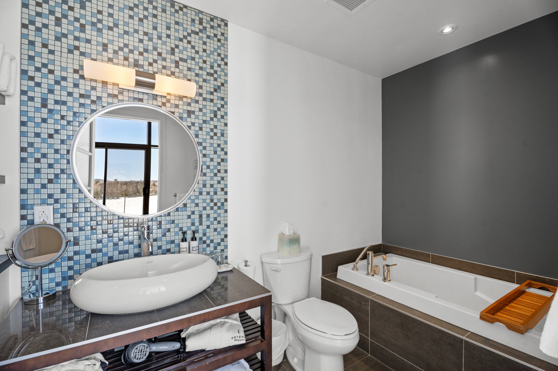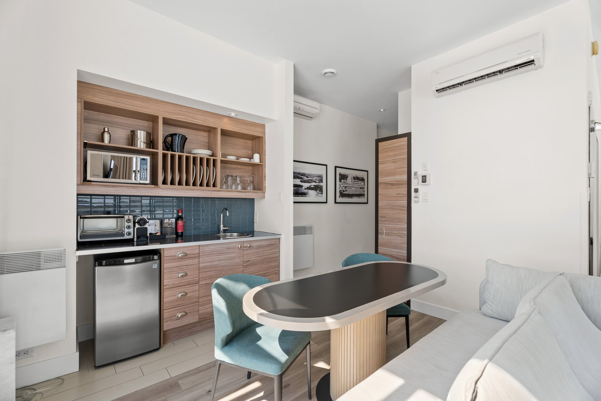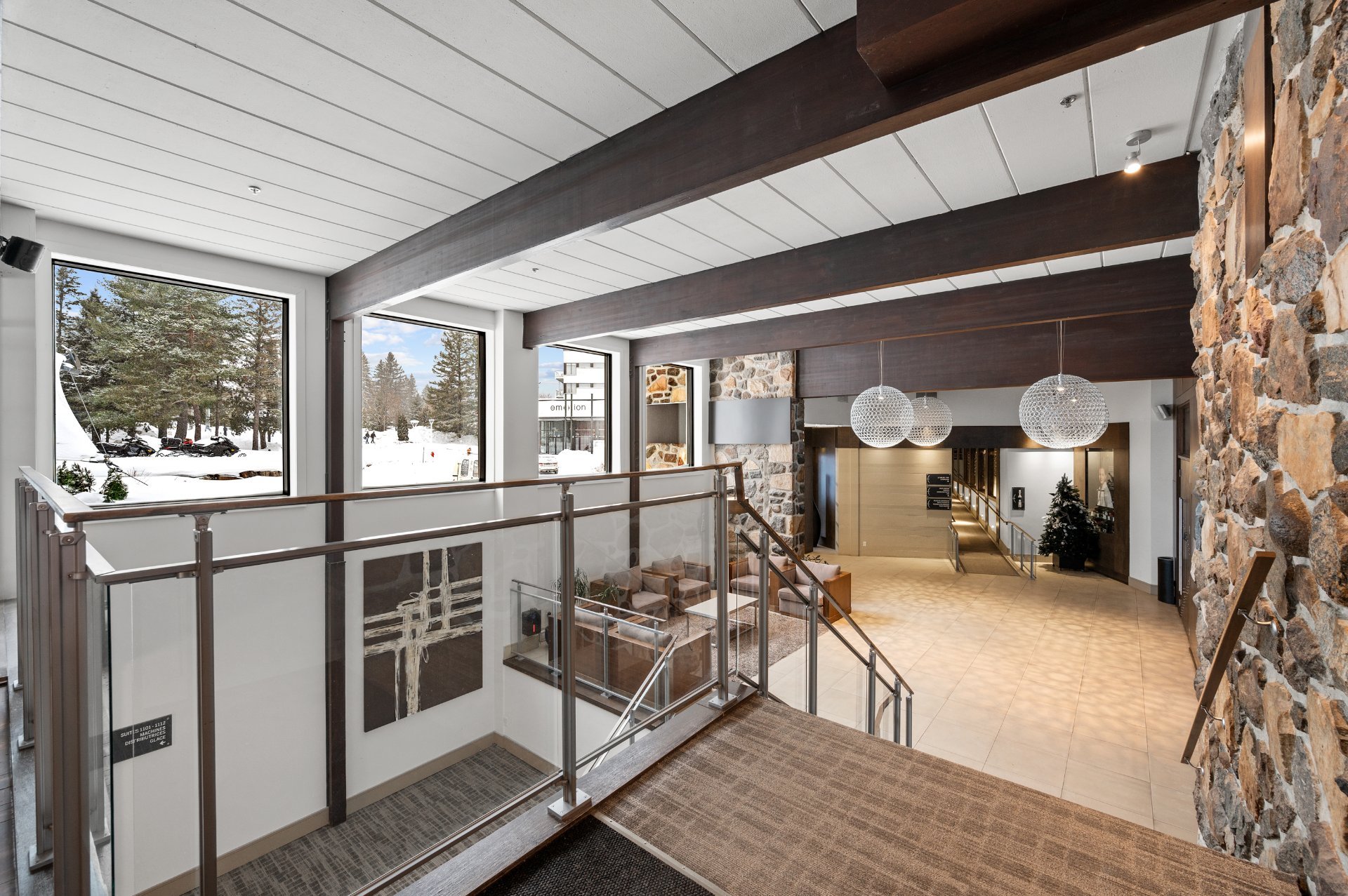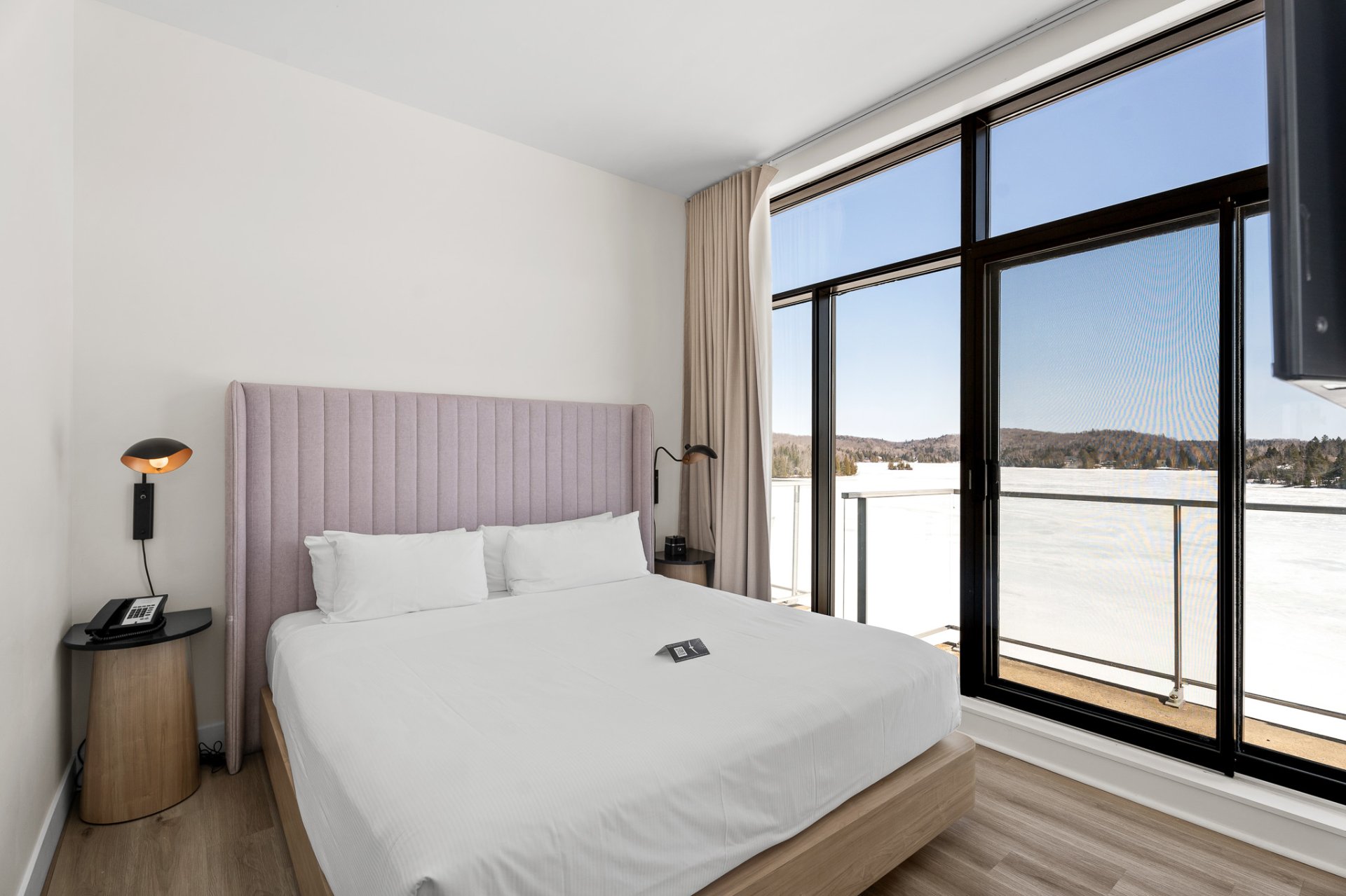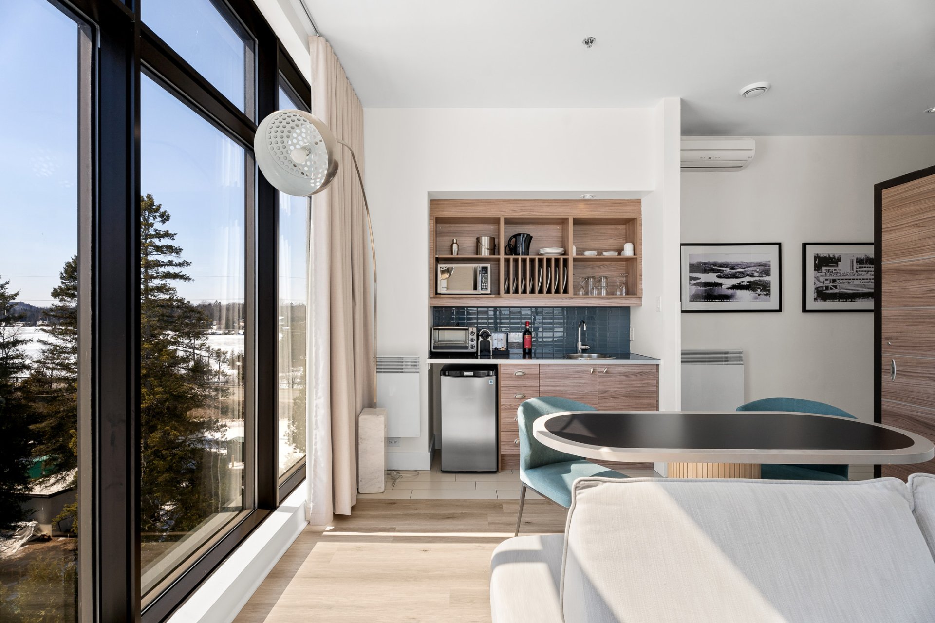 Estérel Resort - Entre nature et confort, cette magnifique suite à aire ouverte vous invite à décrocher du quotidien. Bordée par deux lacs navigables, elle offre une chambre, un foyer au gaz double face créant une ambiance enveloppante, une grande salle de bains et une cuisinette pratique. Le balcon vitré dévoile une vue paisible sur l'eau, été comme hiver. Pouvant accueillir jusqu'à 4 personnes, vous profitez d'un accès complet aux installations : piscines, spas, gym et restaurants. Une propriété idéale pour relaxer ou investir dans un environnement d'exception. Revenus sur location via gestion hôtelière.