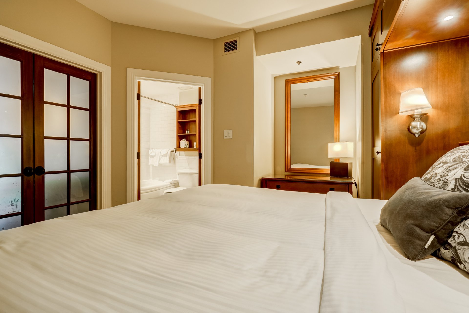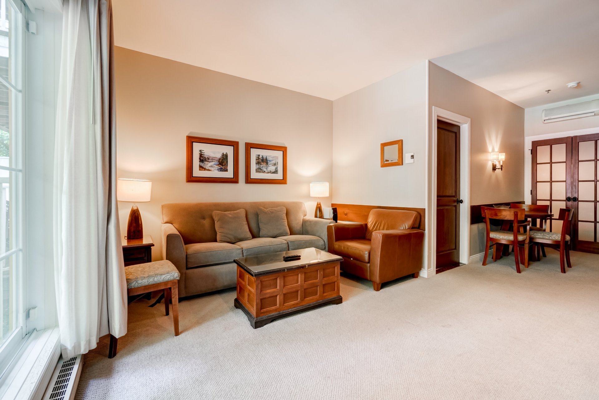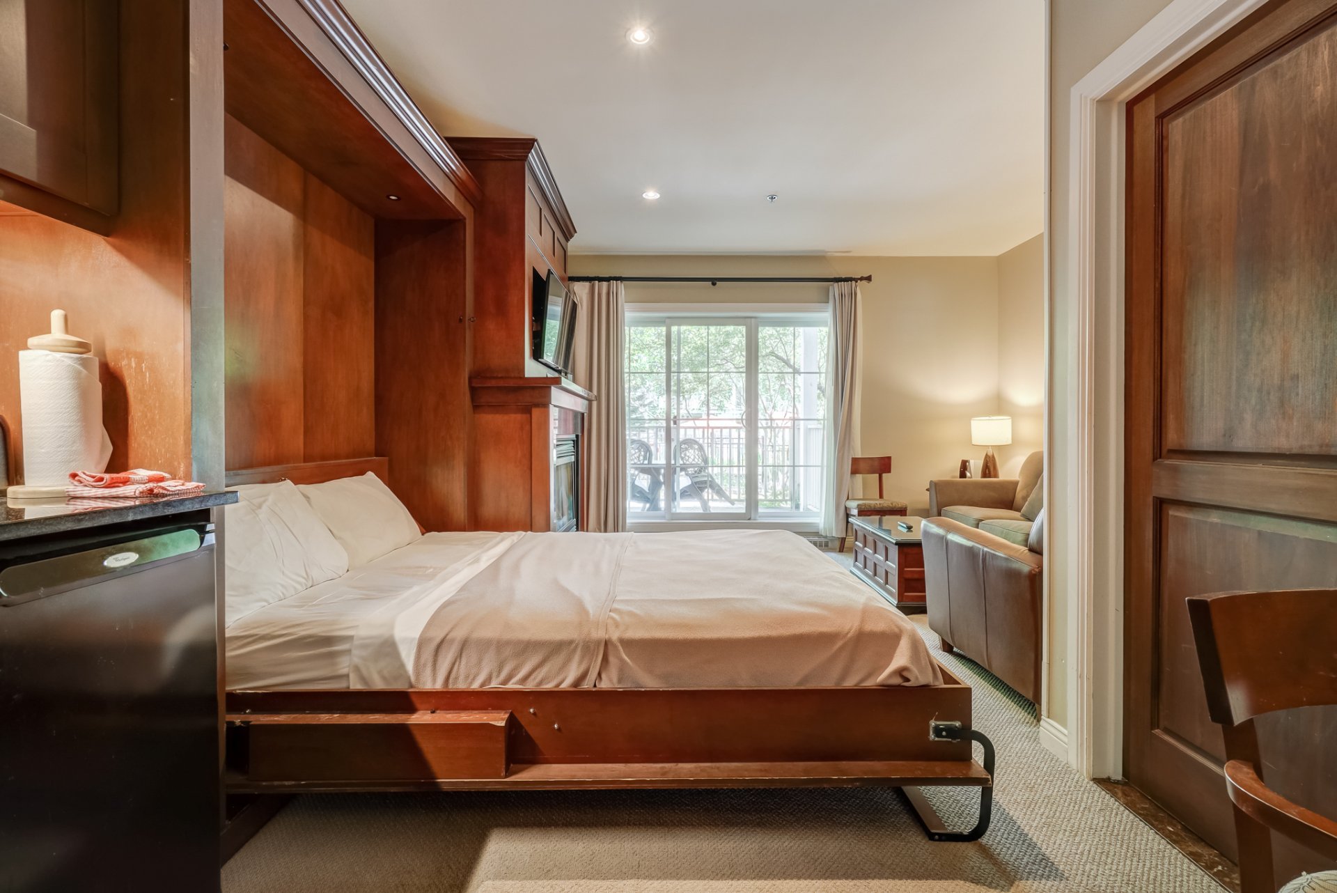 Château Beauvallon - LOCATION COURT TERME NON PERMISE. Seulement l'HOTEL peut louer le condo. Vous recevrez 50% des revenus. 36 jours d'utilisations par an. Suite luxueuse qui peut accommoder 6 personnes. Terrasse privée avec vues sur la piscine, le lac et les jardins, accès à piscines int/extér, salle d'entraînement, bar et spa 4 saisons. Navette à la Station Mont-Tremblant.