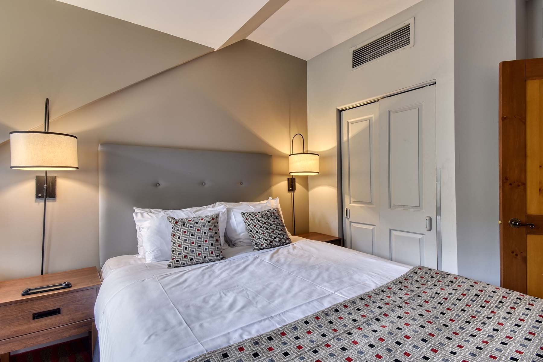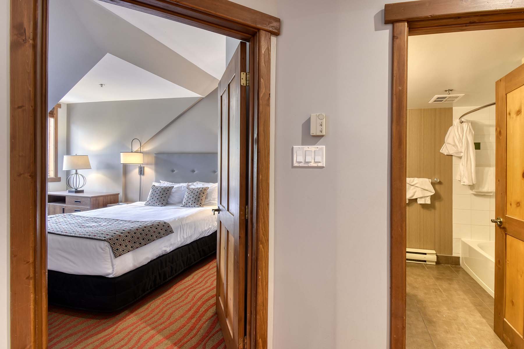 TOUR-DES-VOYAGEUR II - Élégant condo hôtel d'une chambre fermée offrant une cuisine complète, une salle à manger conviviale, un foyer au gaz et un balcon privé. Idéalement situé à l'entrée du village piétonnier de Tremblant, à quelques pas des pistes et des attractions. Les propriétaires bénéficient d'un stationnement souterrain, d'un casier privé, d'une salle d'exercise, d'un spa commun et d'une vaste terrasse offrant une vue privilégiée sur les événements du village piétonnier. Ce condo génère d'excellents revenus grâce à un programme de location performant.