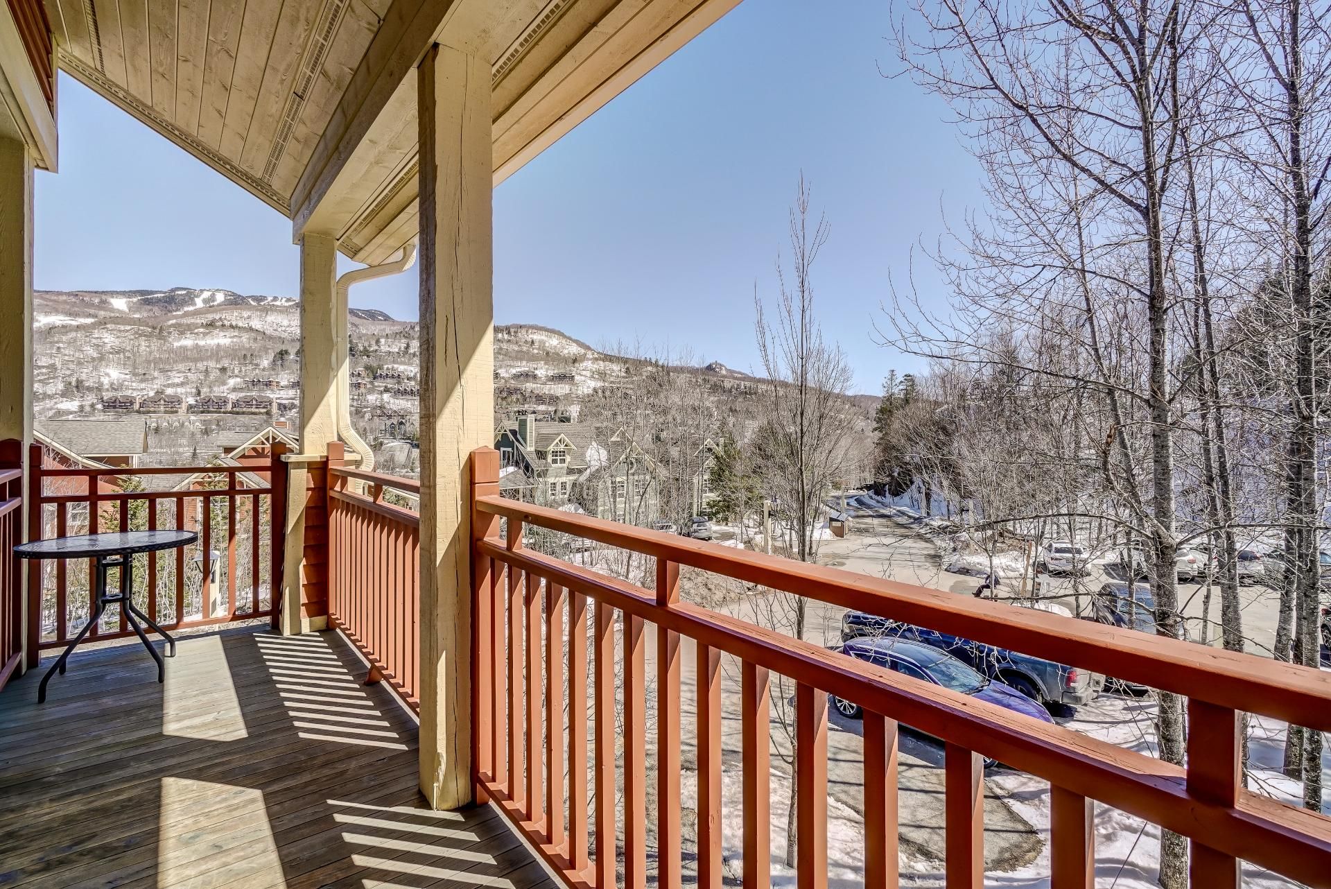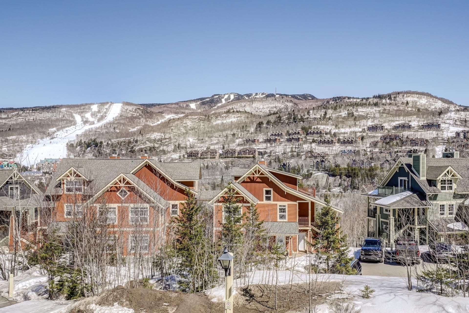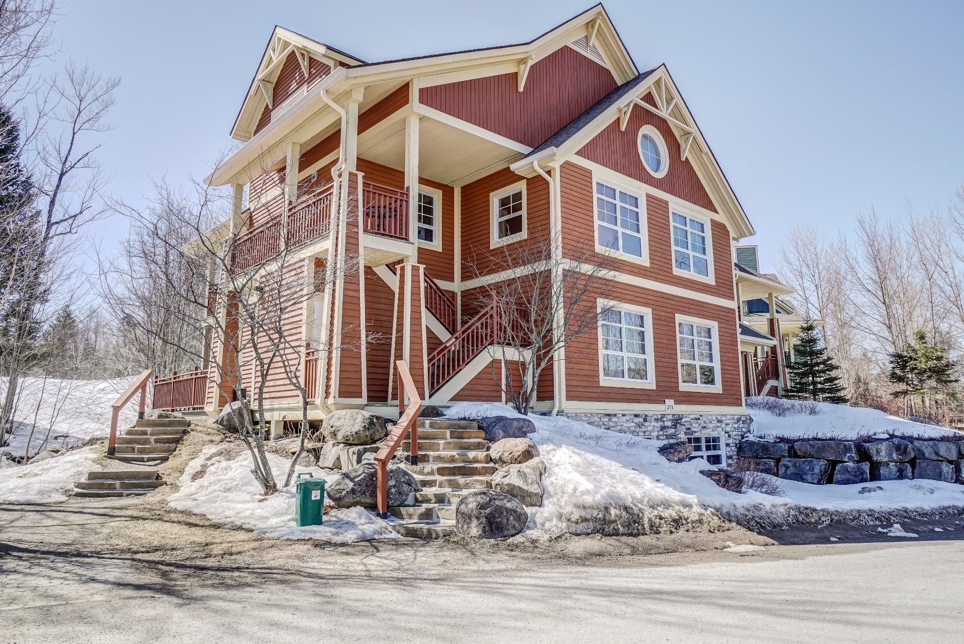 ** Tremblant-les-Eaux ** Condo au look contemporain sur 2 étages, vous offrant 2 chambres, foyer de pierre et boiseries, plafond cathédrale, cuisine équipée d'un comptoir lunch parfait pour les repas rapides, et salle à manger adjacente. Le balcon de bonne dimension est l'endroit parfait pour profiter du soleil et de l'air frais. Nichée à l'écart au 2e étage se trouve la chambre des maîtres et sa salle de bain attenante. Un espace de rangement, un stationnement et une vignette pour vos invités sont également inclus. Vous pouvez vous détendre dans l'un des deux spas, ou dans l'un des saunas, sec ou vapeur, situés au Clubhouse.