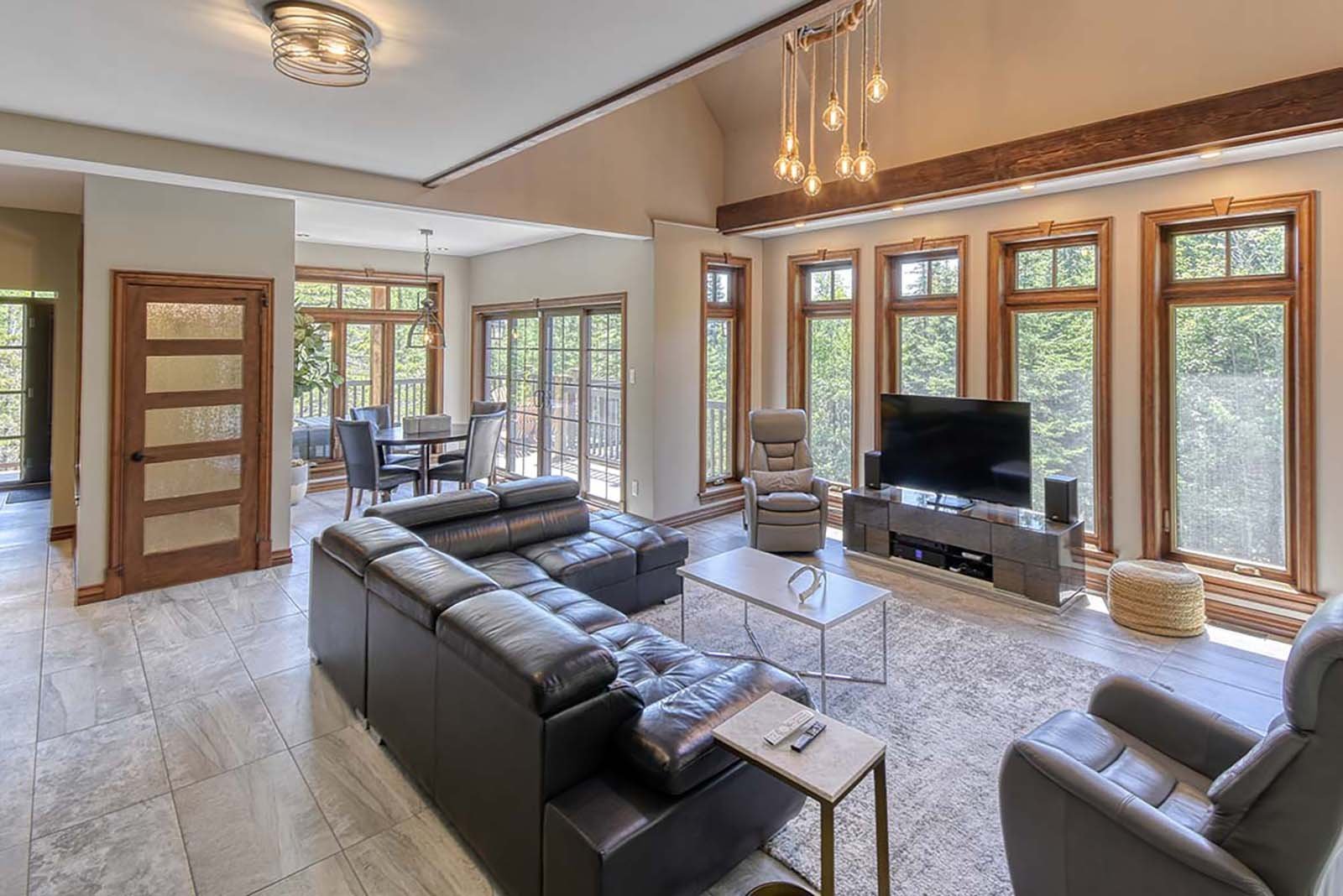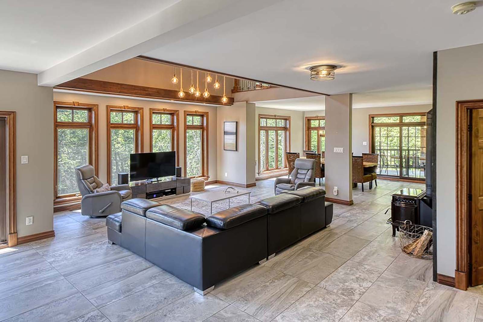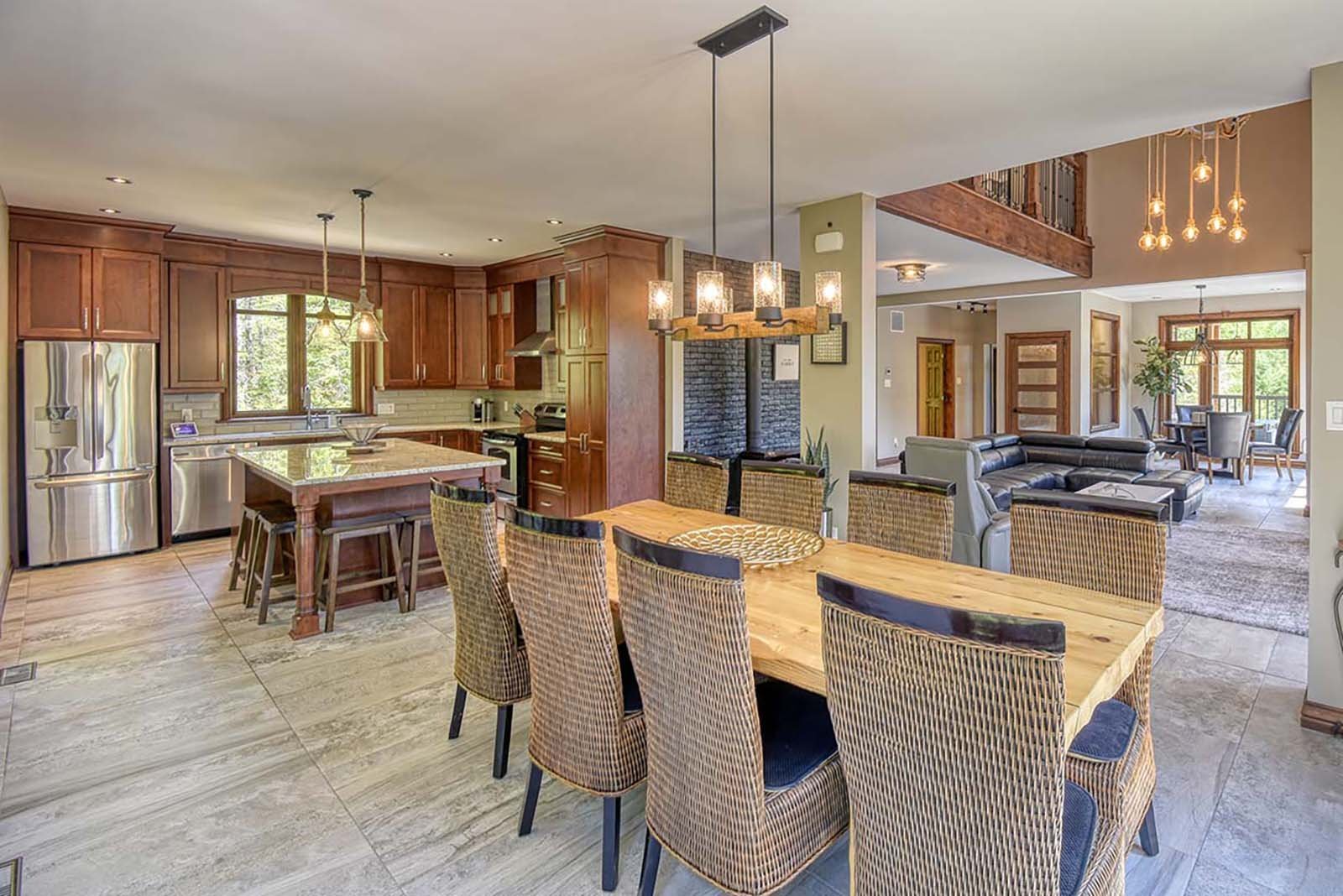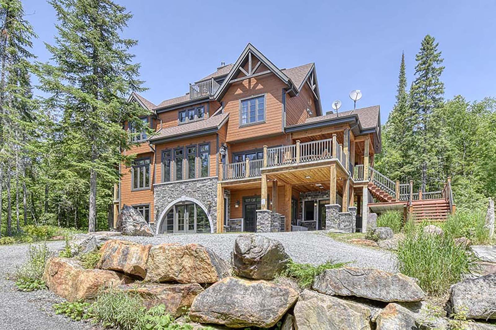 Accès au Lac Ouimet! Cette résidence méticuleusement conçue comprend 5 chambres et 6 salles de bains,des sols insonorisés et un chauffage radiant.Elle inclut un appartement entièrement séparé avec sa propre buanderie et cuisine.La maison se distingue par ses poutres massives et solides, construite avec des matériaux de qualité et des techniques robustes pour assurer sa durabilité.Elle présente de magnifiques moulures, portes et armoires de cuisine en bois,toutes protégées par un contrôleur d'humidité.Elle se trouve à côté du golf Le Diable, des pistes cyclables et offre un accès au Lac Ouimet.