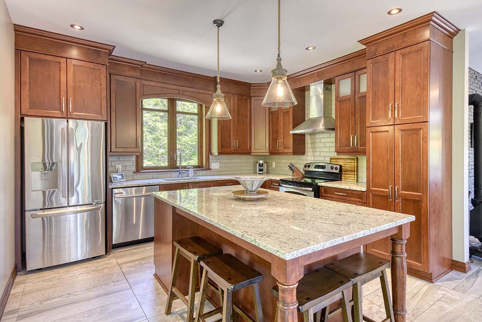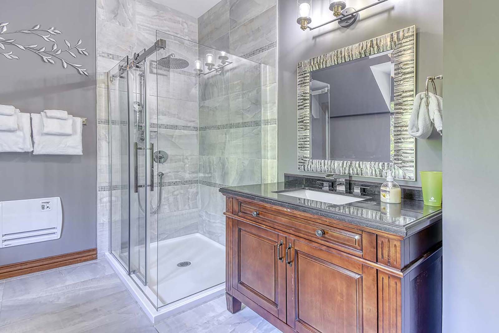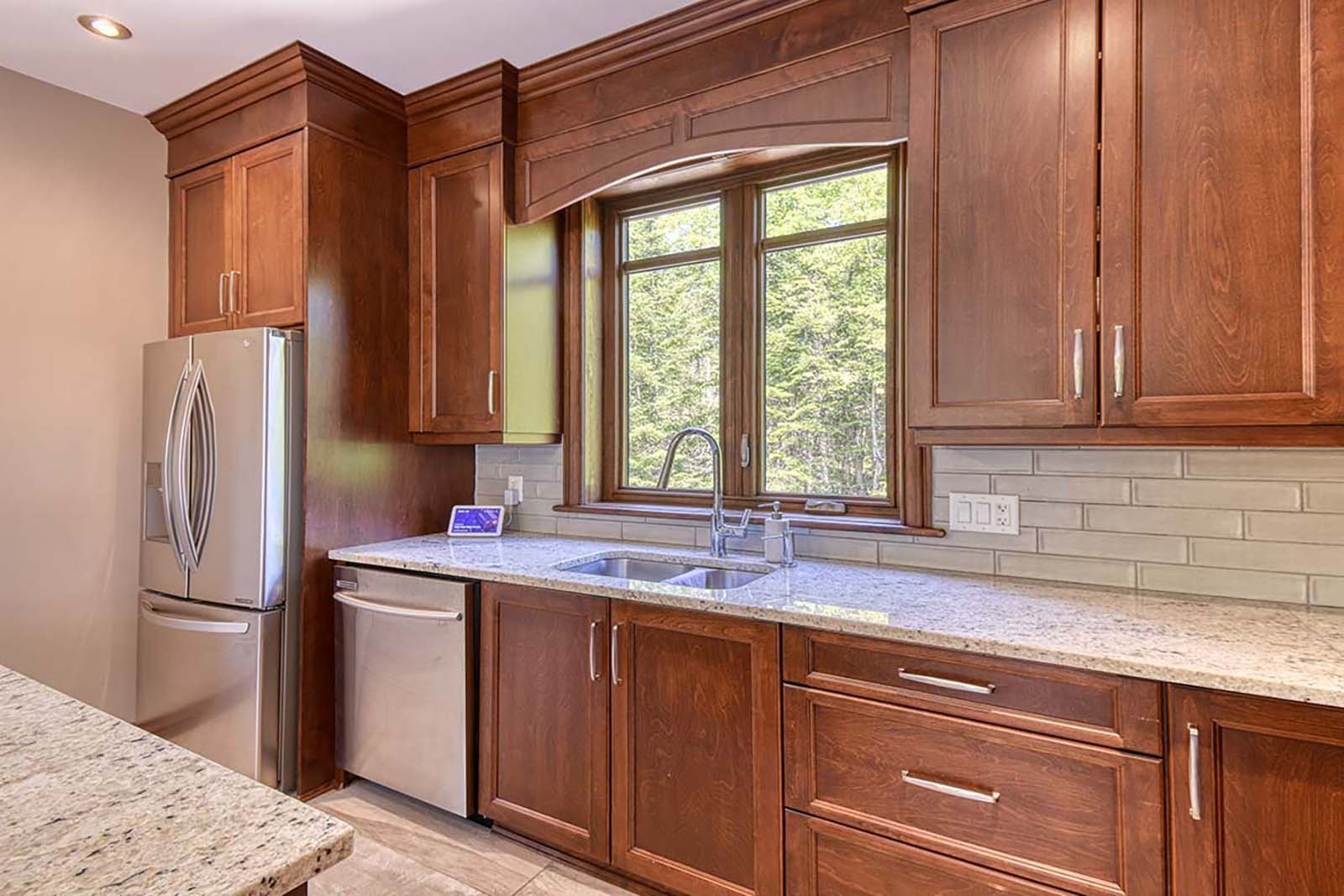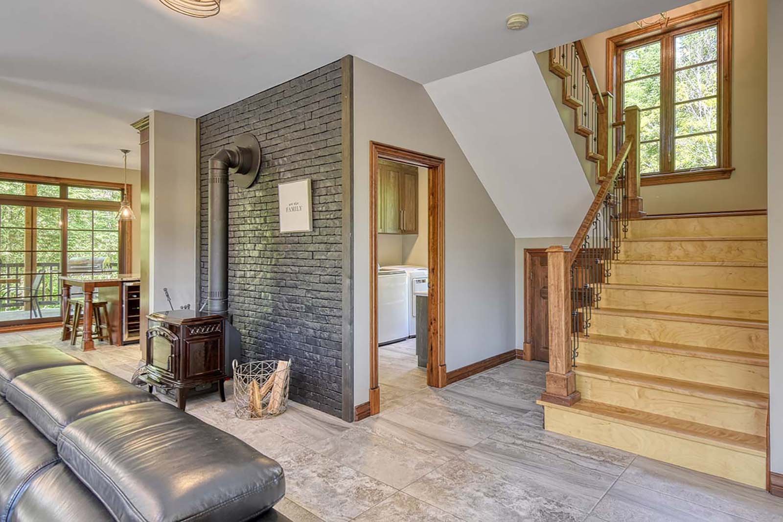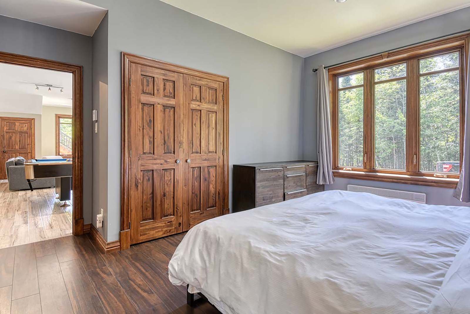 Accès au Lac Ouimet! Cette résidence méticuleusement conçue comprend 5 chambres et 6 salles de bains,des sols insonorisés et un chauffage radiant.Elle inclut un appartement entièrement séparé avec sa propre buanderie et cuisine.La maison se distingue par ses poutres massives et solides, construite avec des matériaux de qualité et des techniques robustes pour assurer sa durabilité.Elle présente de magnifiques moulures, portes et armoires de cuisine en bois,toutes protégées par un contrôleur d'humidité.Elle se trouve à côté du golf Le Diable, des pistes cyclables et offre un accès au Lac Ouimet.